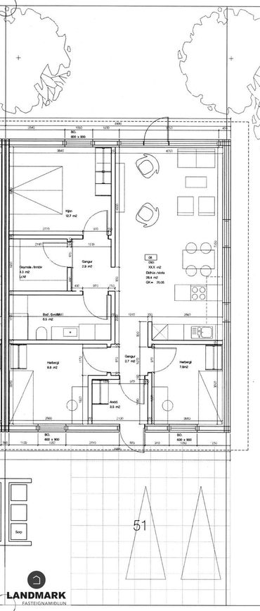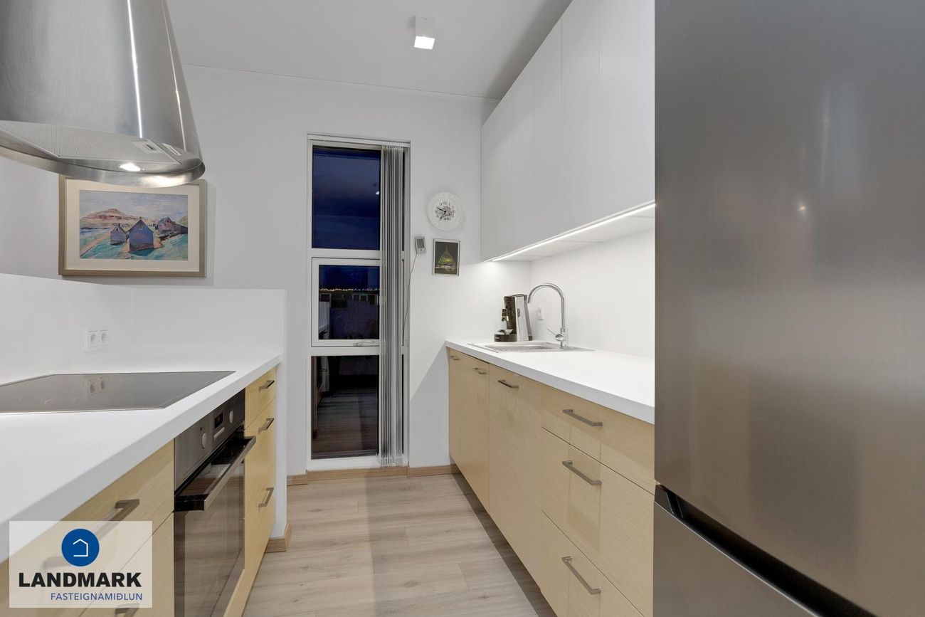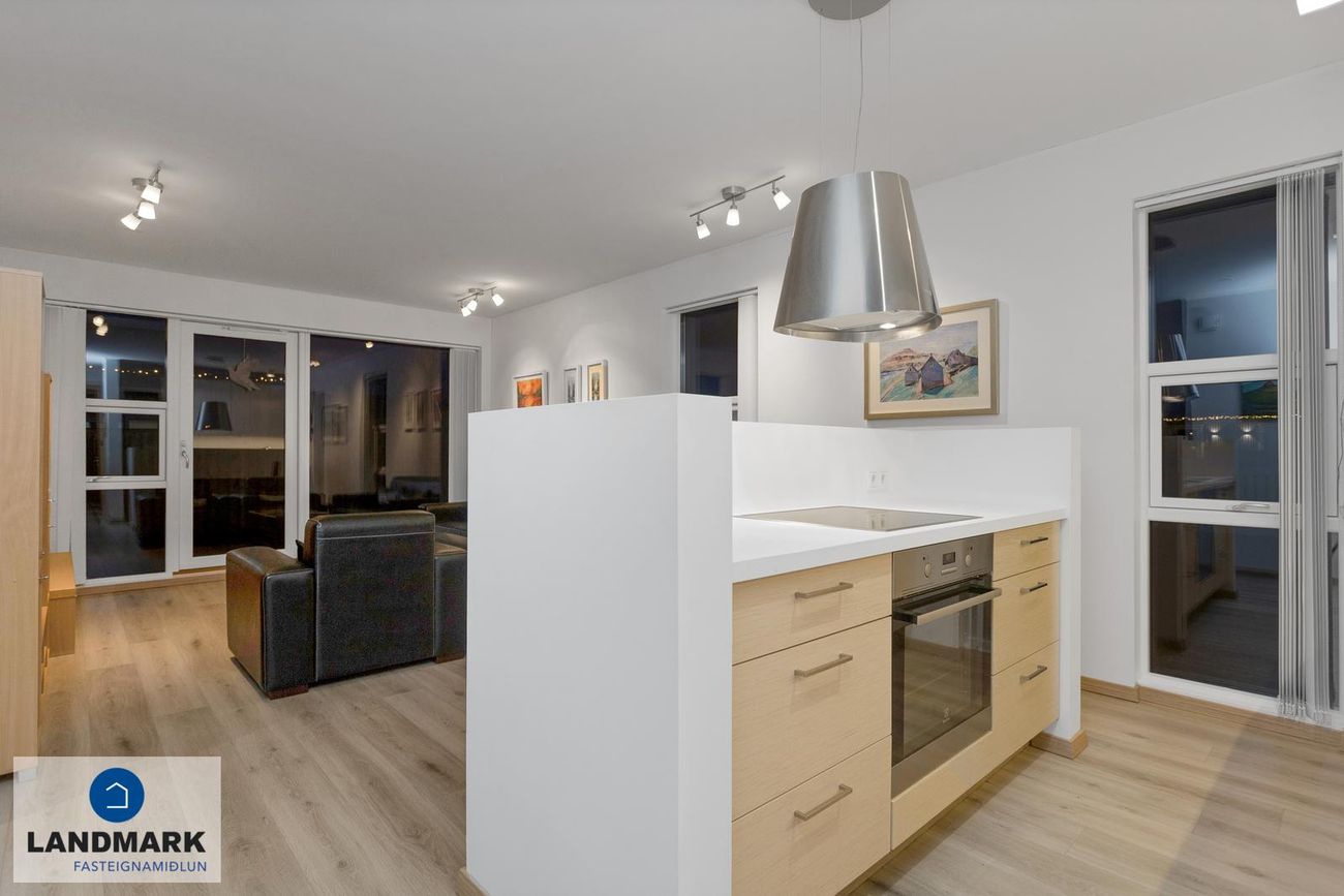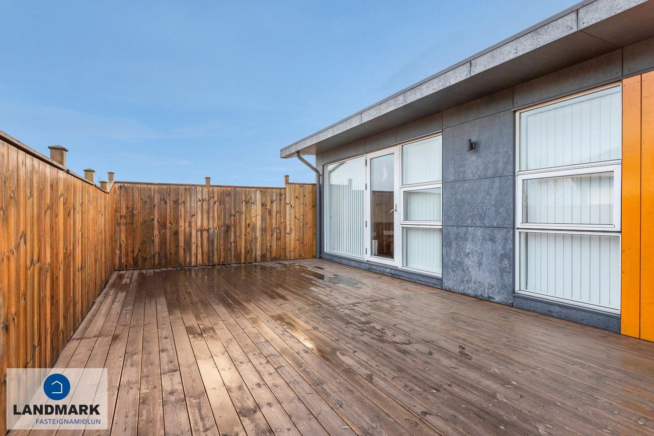 sveinn@landmark.isFÁÐU SENT SÖLUYFIRLIT YFIR EIGN STRAX HÉR.Eignin skiptist í:Forstofu, gang, stofu/borðstofu, eldhús, þrjú svefnherbergi, baðherbergi, geymslu og afgirt ca. 40 fm verönd.Nánari lýsing á eign:Komið er inn í rúmgóða