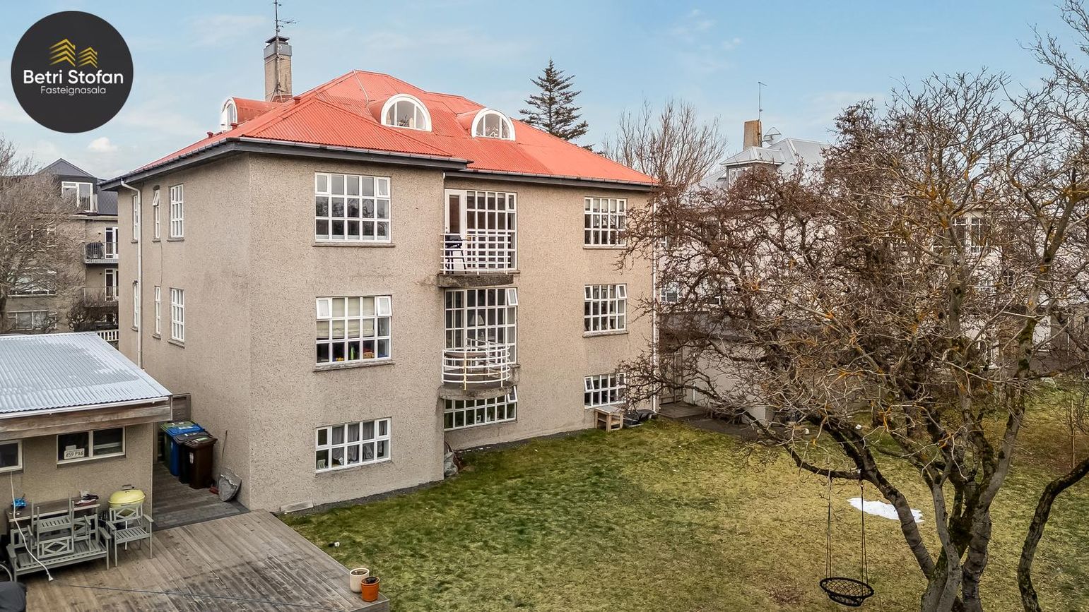 Sameiginlegur garður með stórum grasfleti og 30fm palli. Einkar skjólgóður og fallegur garður. Settir hafa verið upp matjurtargarðar.Flott eign í rólegu umhverfi í hjarta Vesturbæjar, nærri skólum, verslunum og annarri þjónustu.