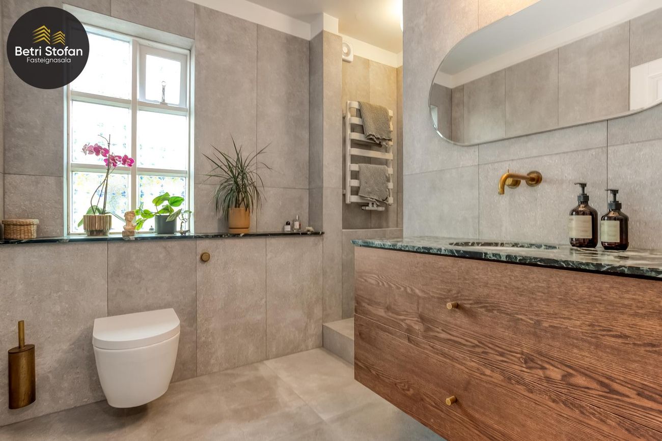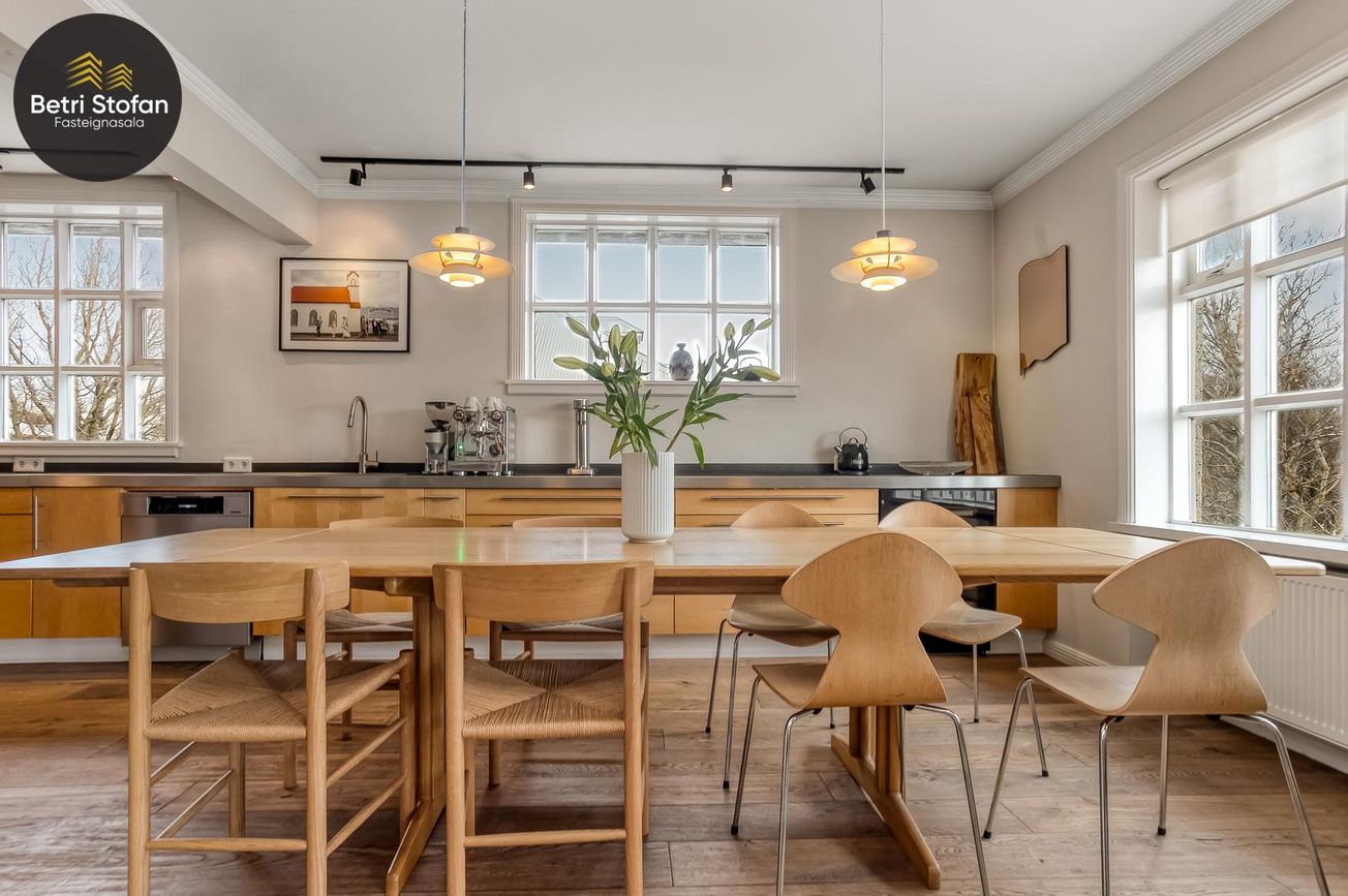 2022: Baðherbergi á aðalhæð endurnýjað að fullu og rými stækkað inn í annað herbergi. Vola blöndunartæki, Porcalanosa flísar og grænn marmari. Allar lagnir endurnýjaðar innan rýmis. Gluggar málaðir að utan, útitröppur endurnýjaðar.