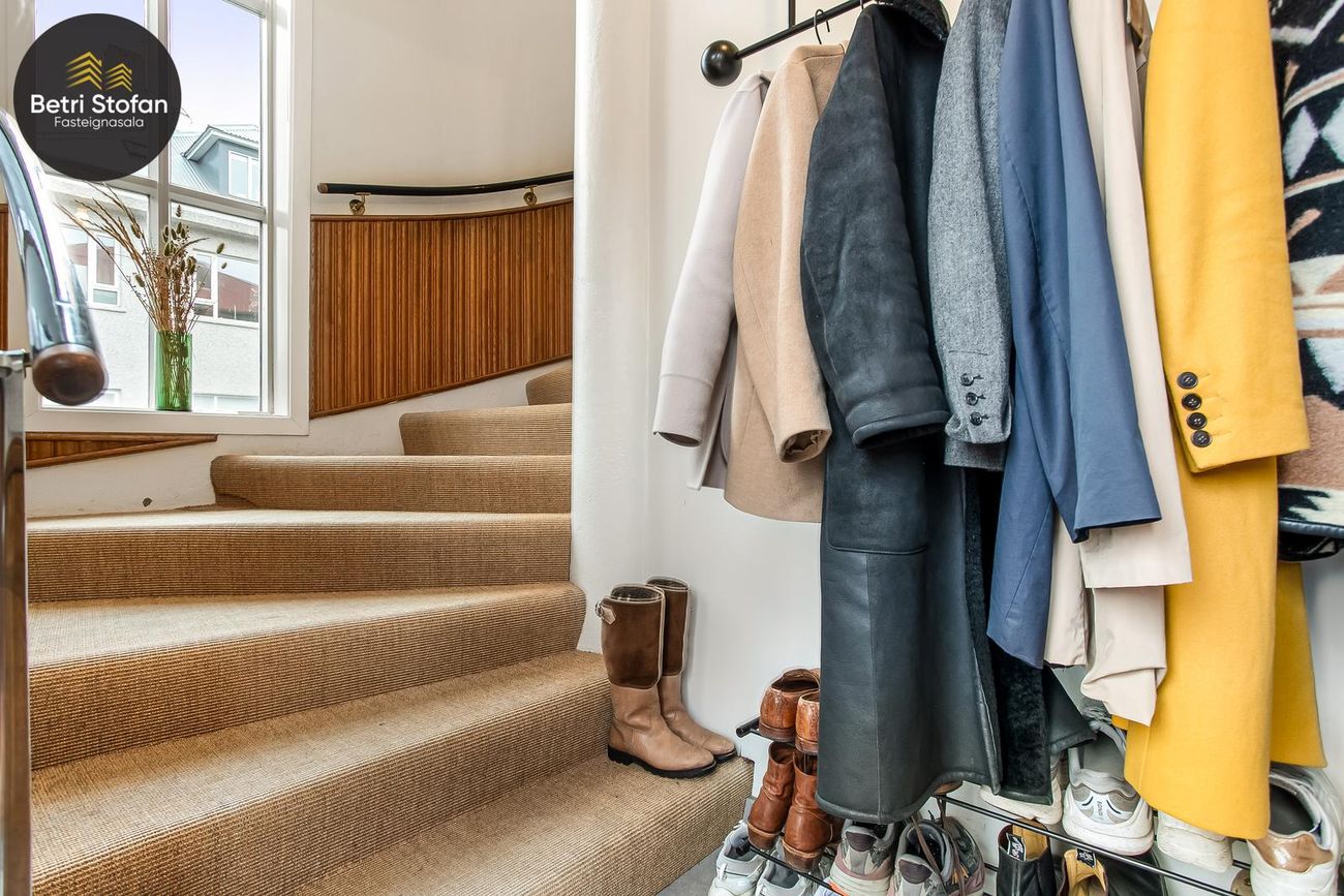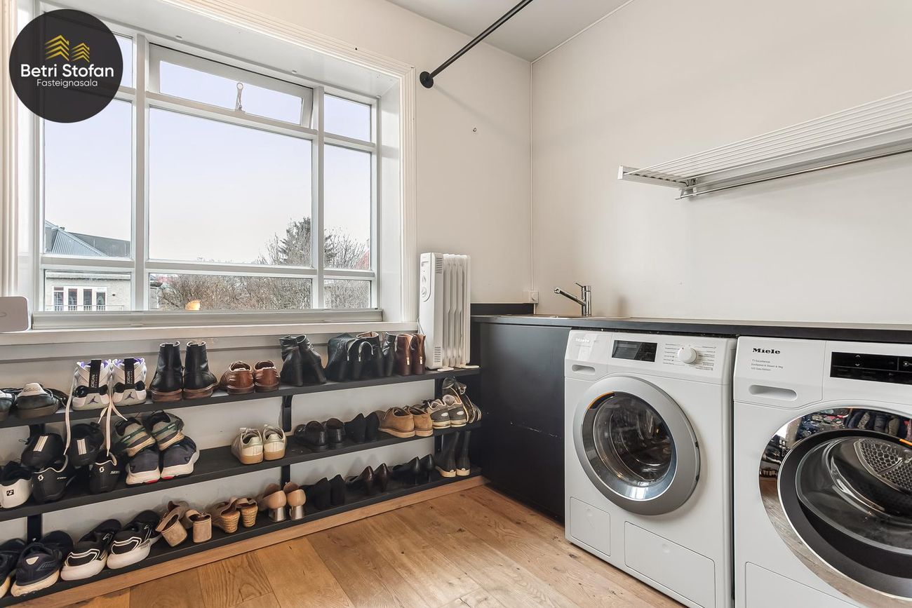 Forstofuhol - þaðan gengið inn í þvottahús með góðum hirslum fyrir útiflíkur ofl. Rennihurð til að loka af þvottahúsið. Frá forstofu er einnig stigi upp á rishæð.