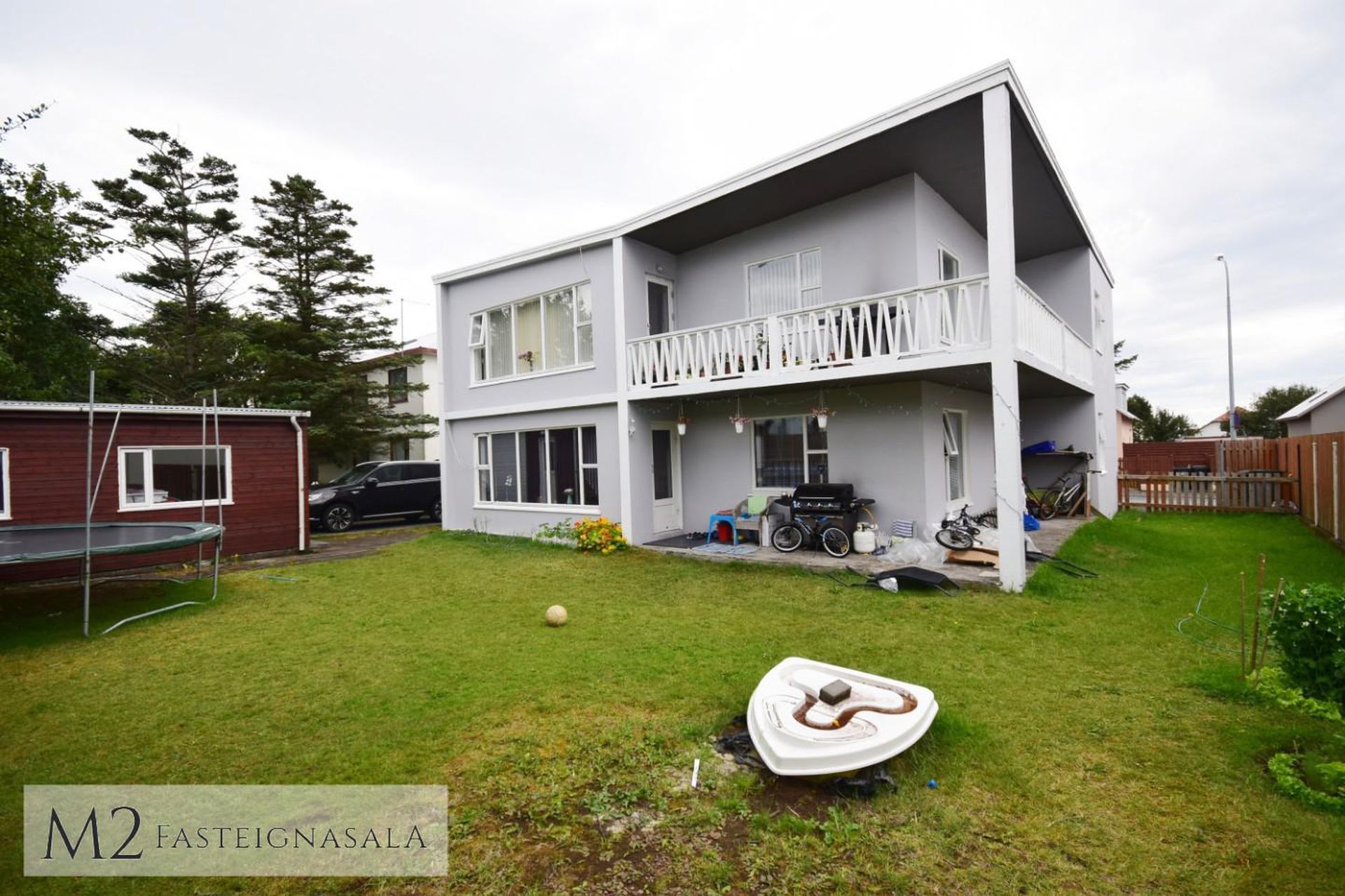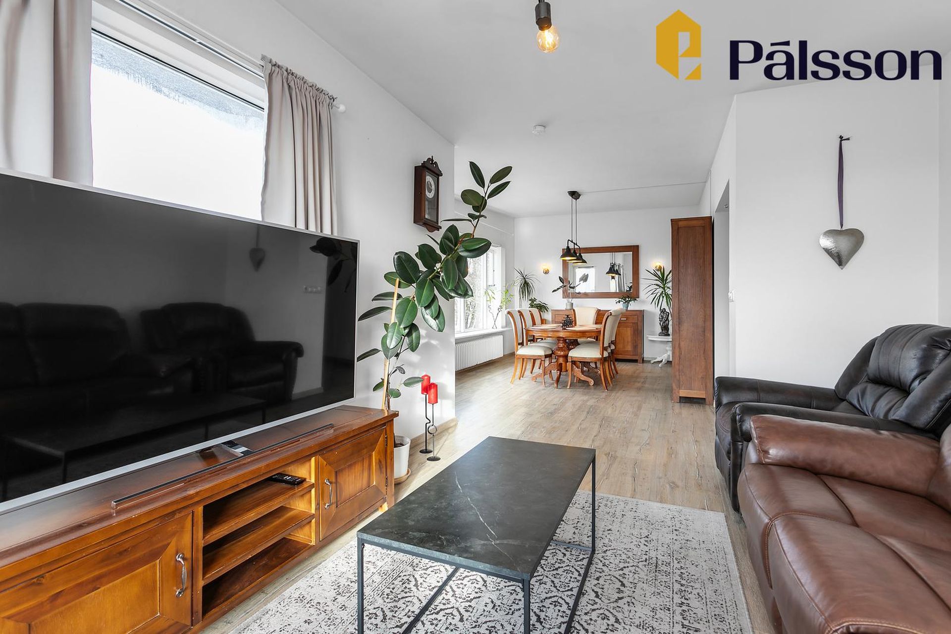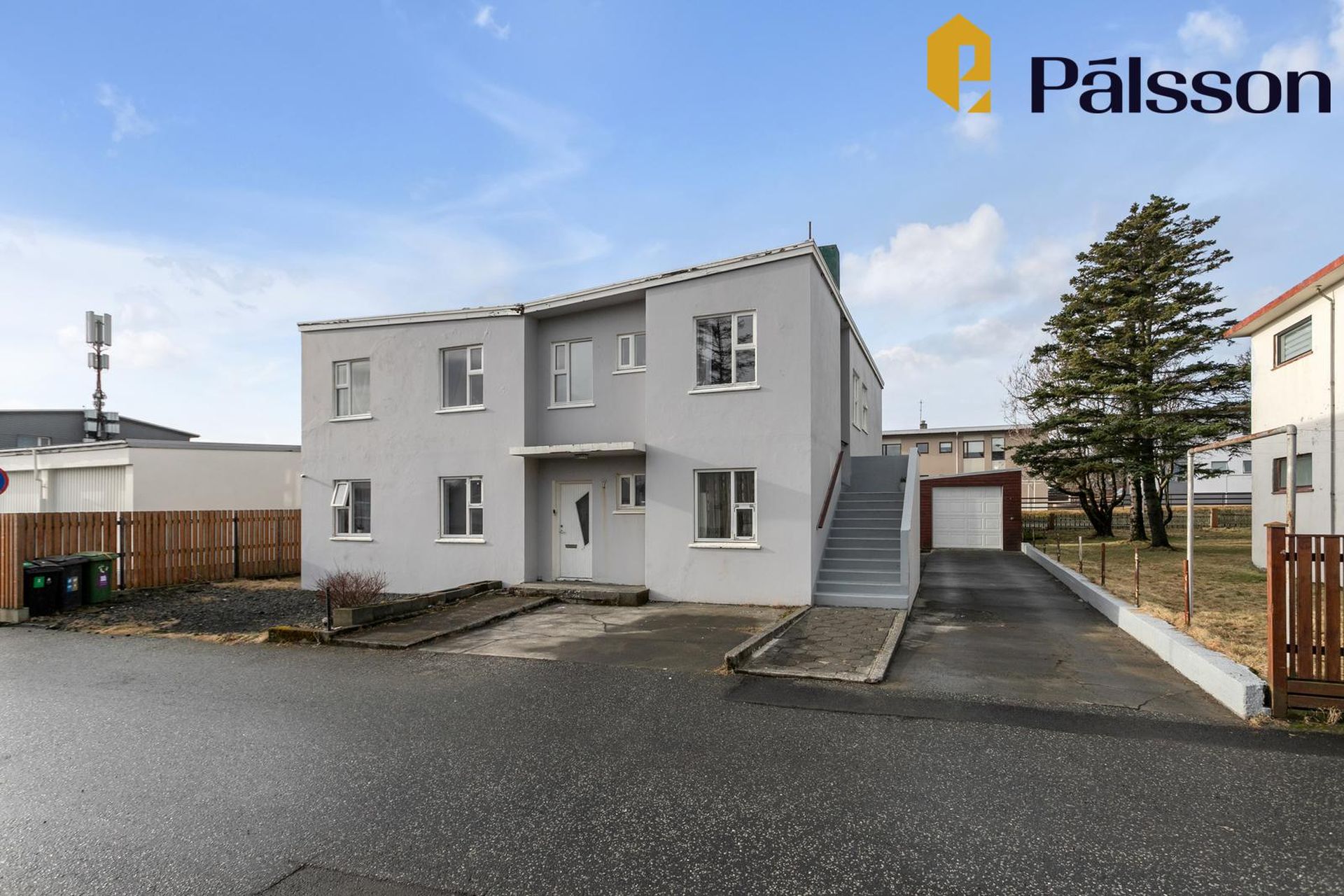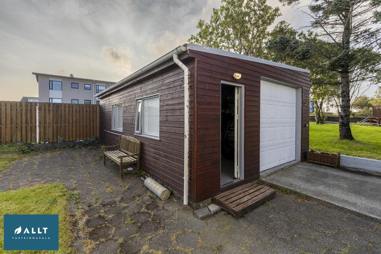 Nánari lýsing:Eignin er skráð 175,8 fm samkvæmt HMS og skiptist í íbúð (135,8 fm) með sérinngangi, frístandandi bílskúr (40,0 fm) með góðri innkeyrslu og sameiginlegum garði til afnota.