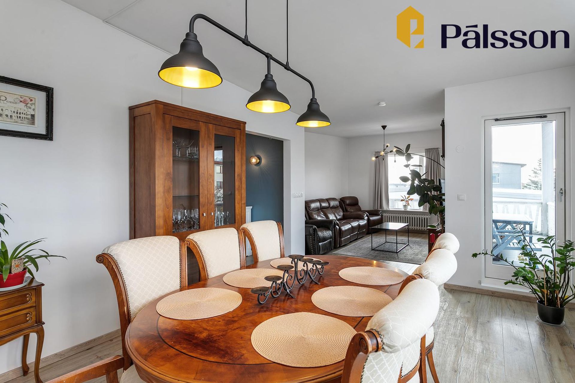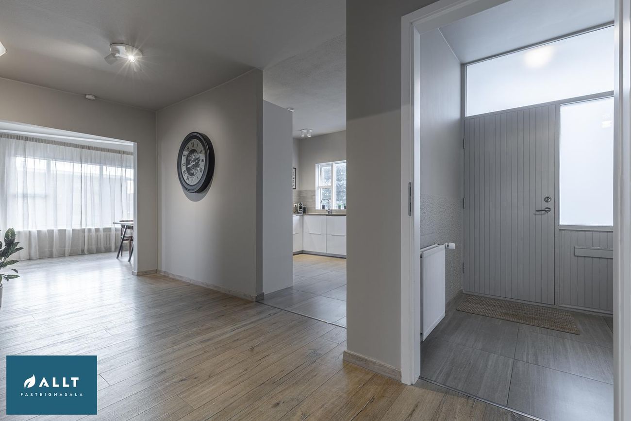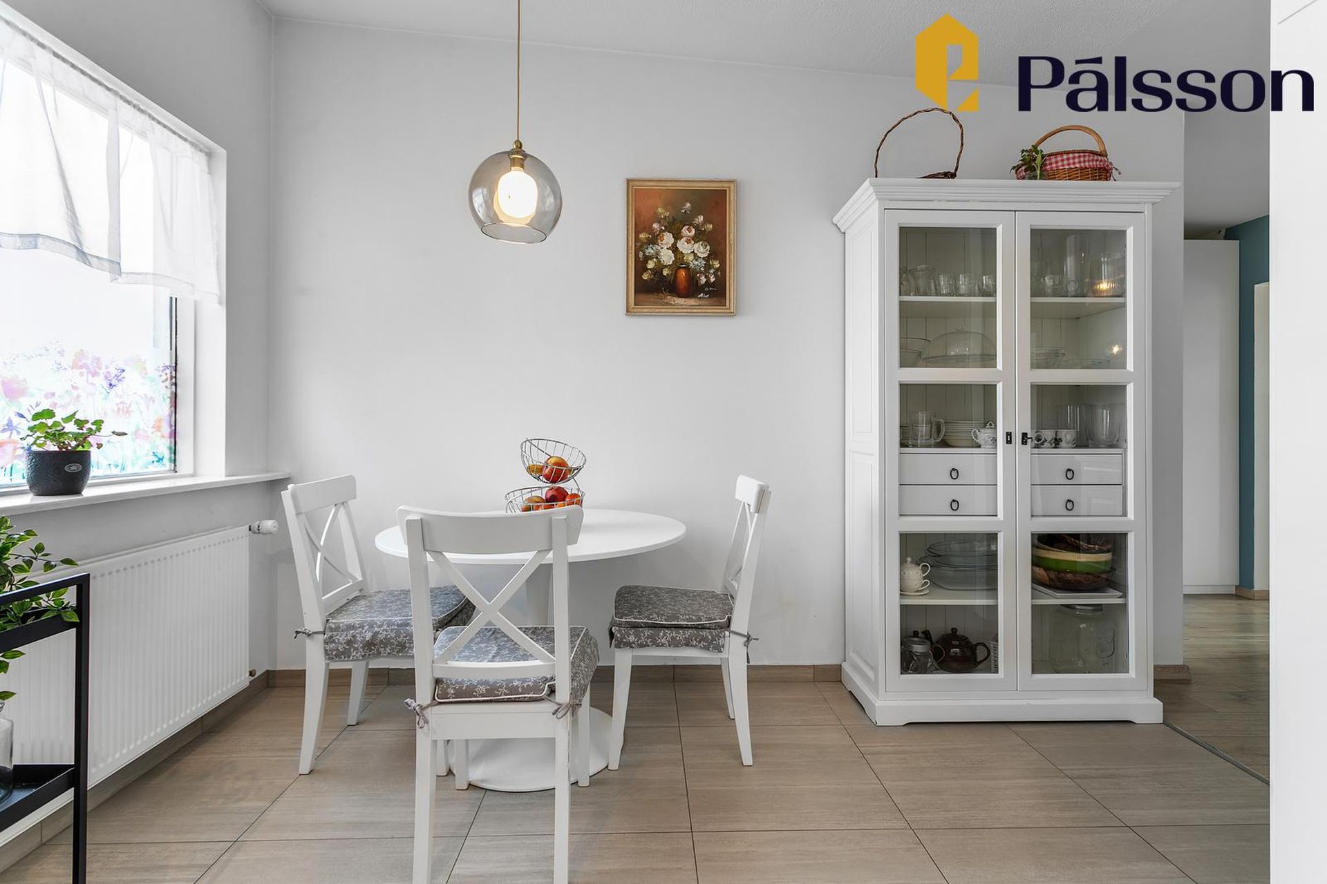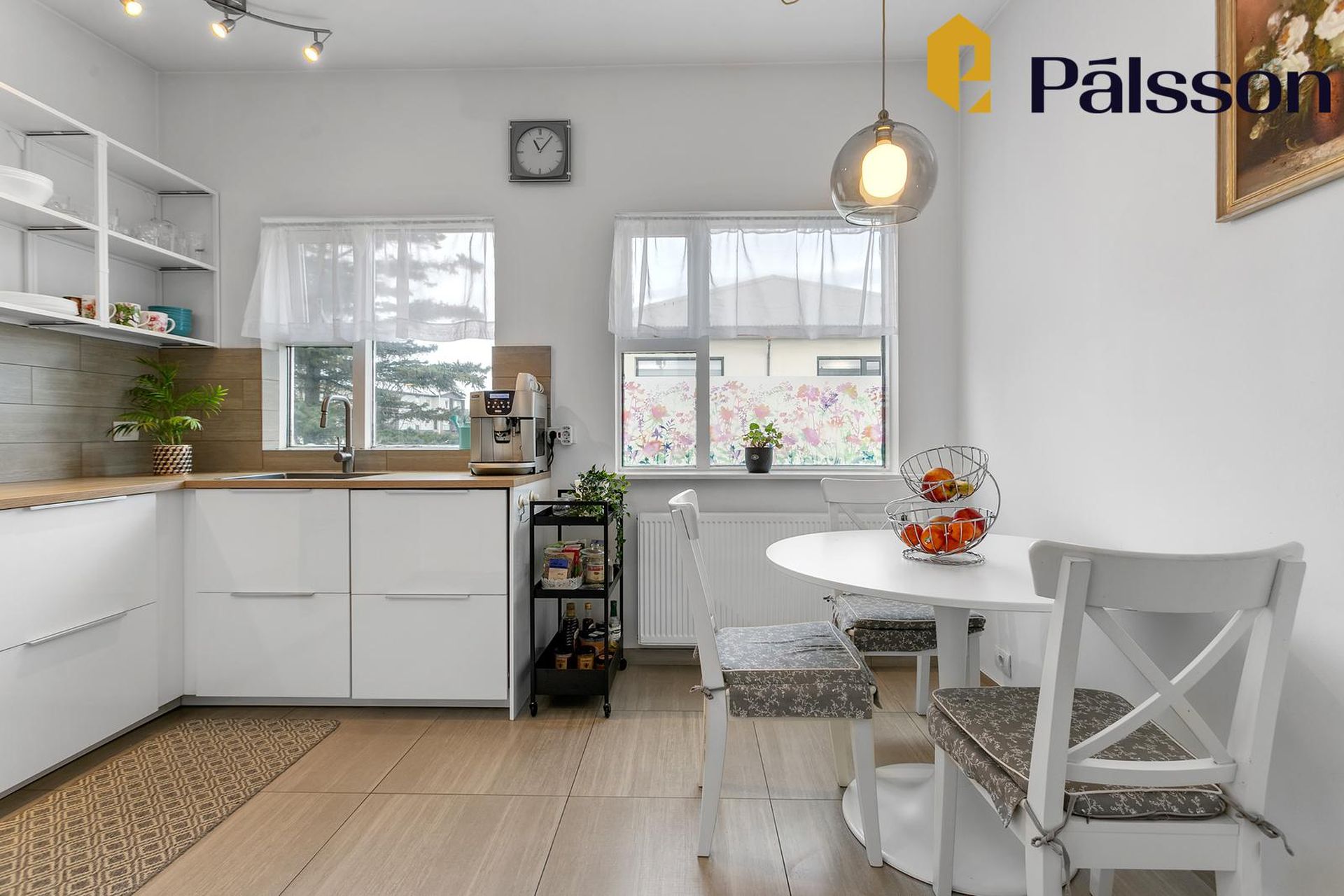 Nánari lýsing:Eignin er skráð 175,8 fm samkvæmt HMS og skiptist í íbúð (135,8 fm) með sérinngangi, frístandandi bílskúr (40,0 fm) með góðri innkeyrslu og sameiginlegum garði til afnota.