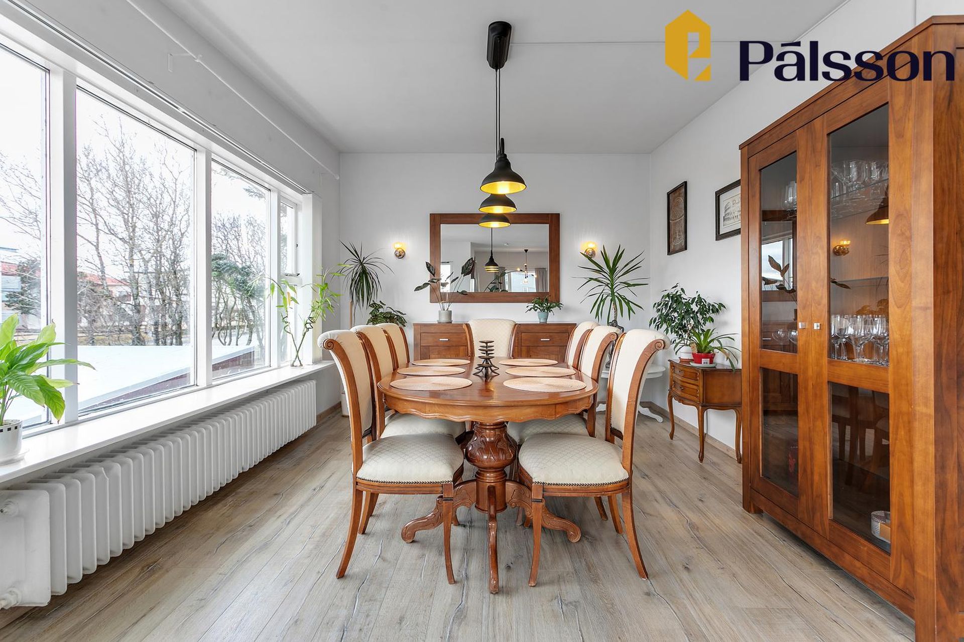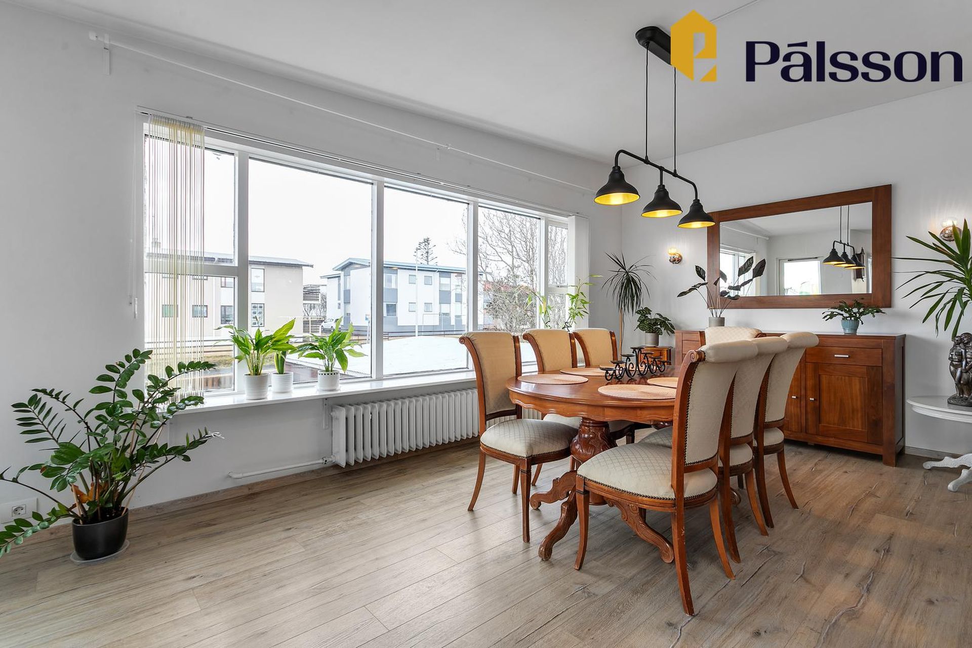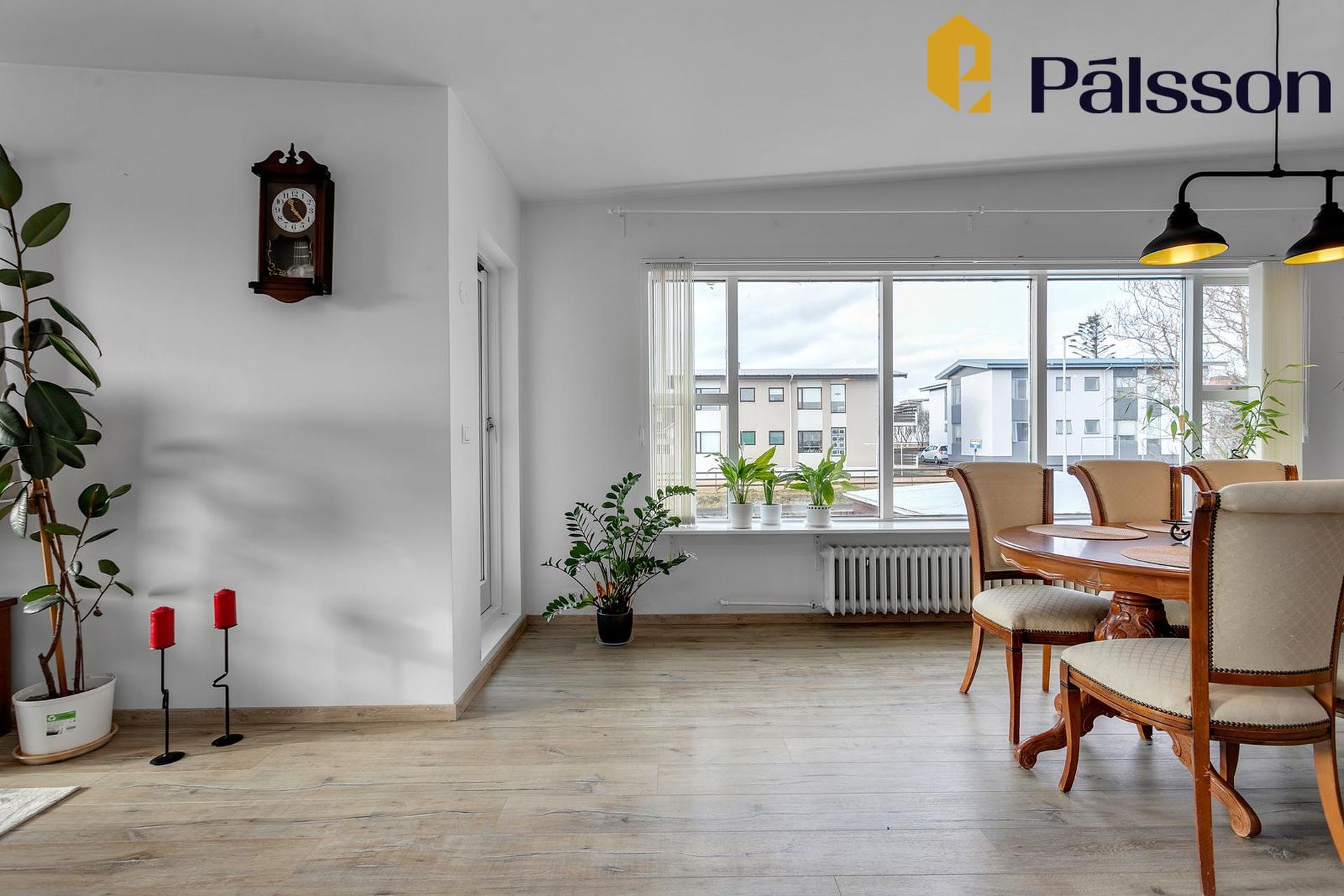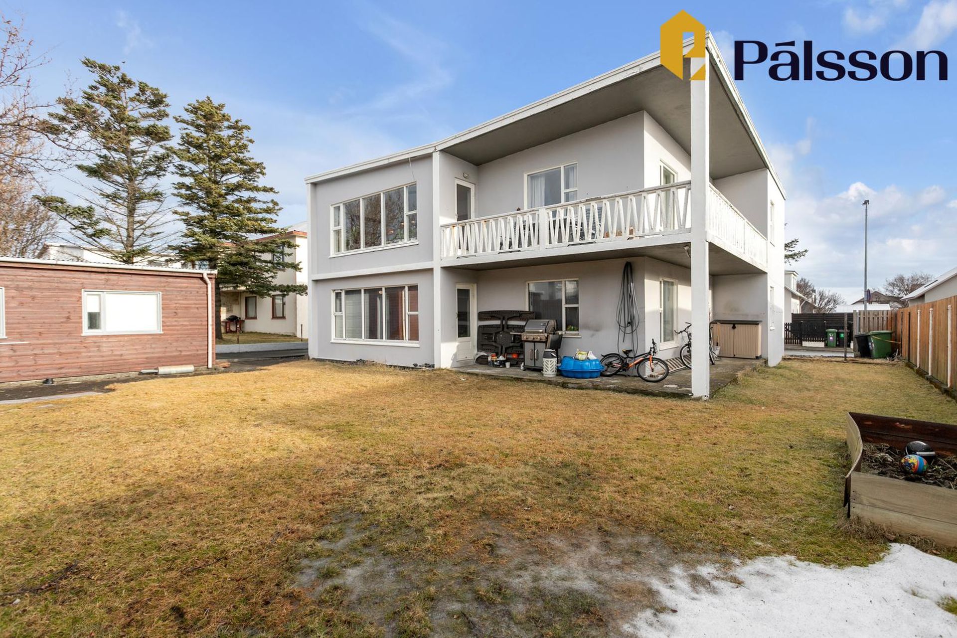 Nánari lýsing:Eignin er skráð 175,8 fm samkvæmt HMS og skiptist í íbúð (135,8 fm) með sérinngangi, frístandandi bílskúr (40,0 fm) með góðri innkeyrslu og sameiginlegum garði til afnota.