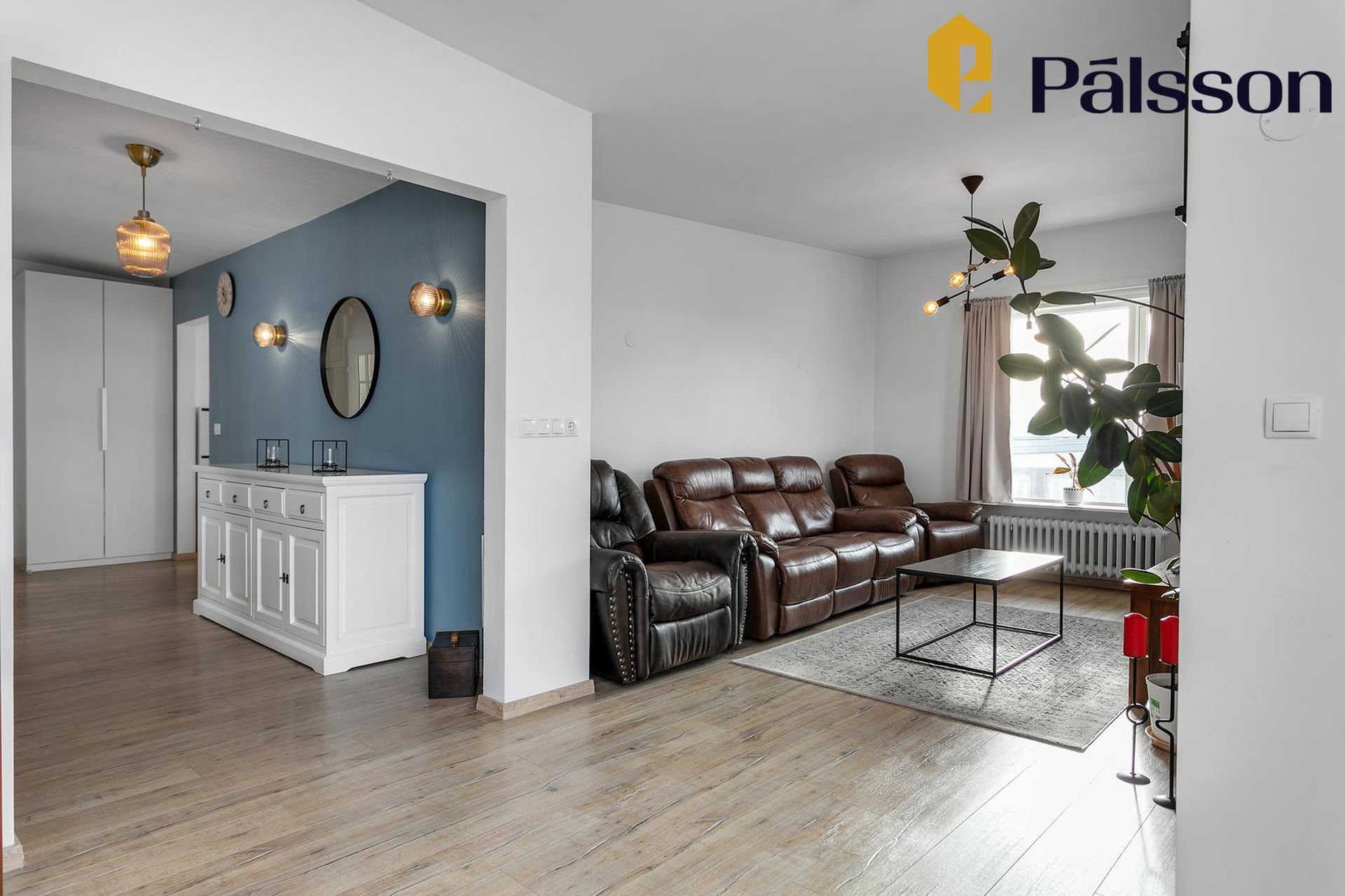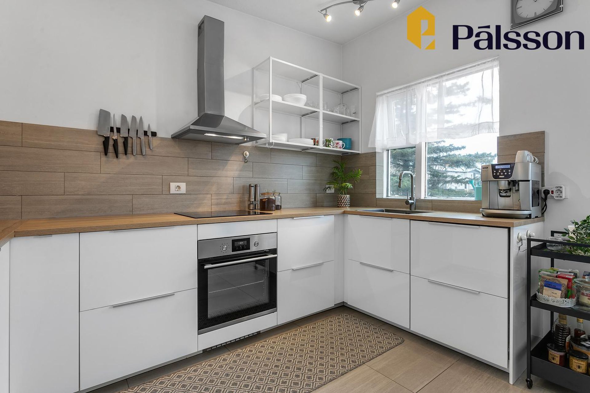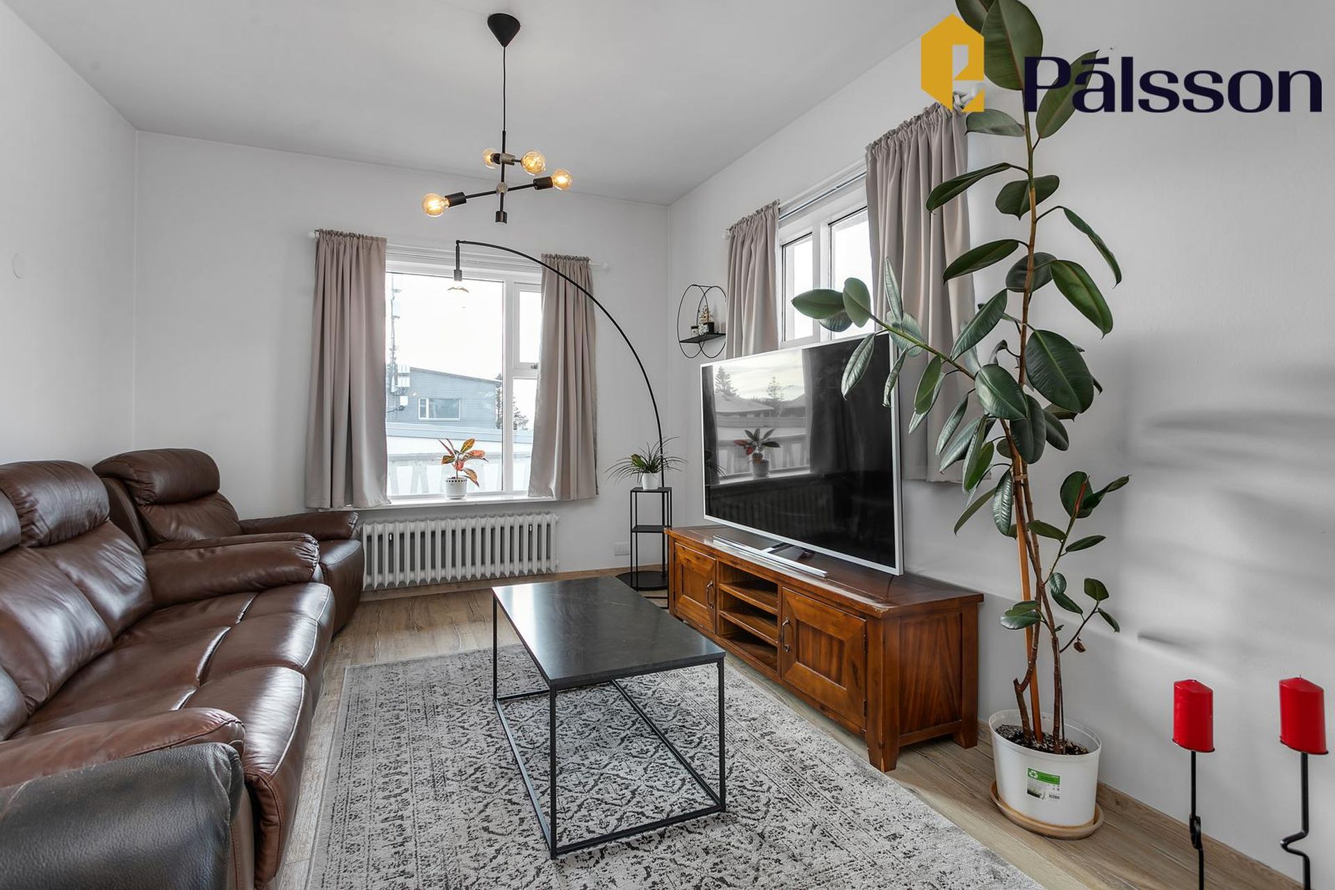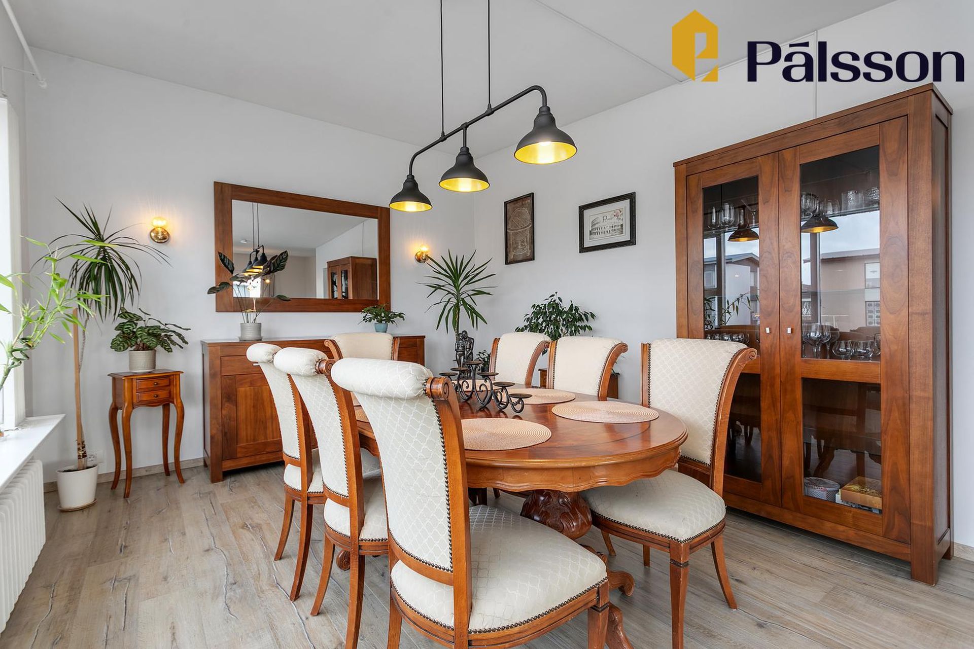 Nánari lýsing:Eignin er skráð 175,8 fm samkvæmt HMS og skiptist í íbúð (135,8 fm) með sérinngangi, frístandandi bílskúr (40,0 fm) með góðri innkeyrslu og sameiginlegum garði til afnota.