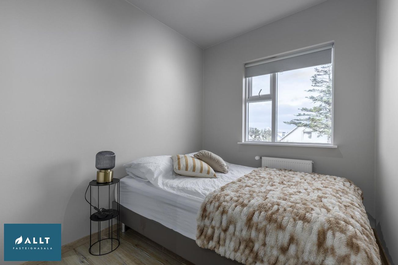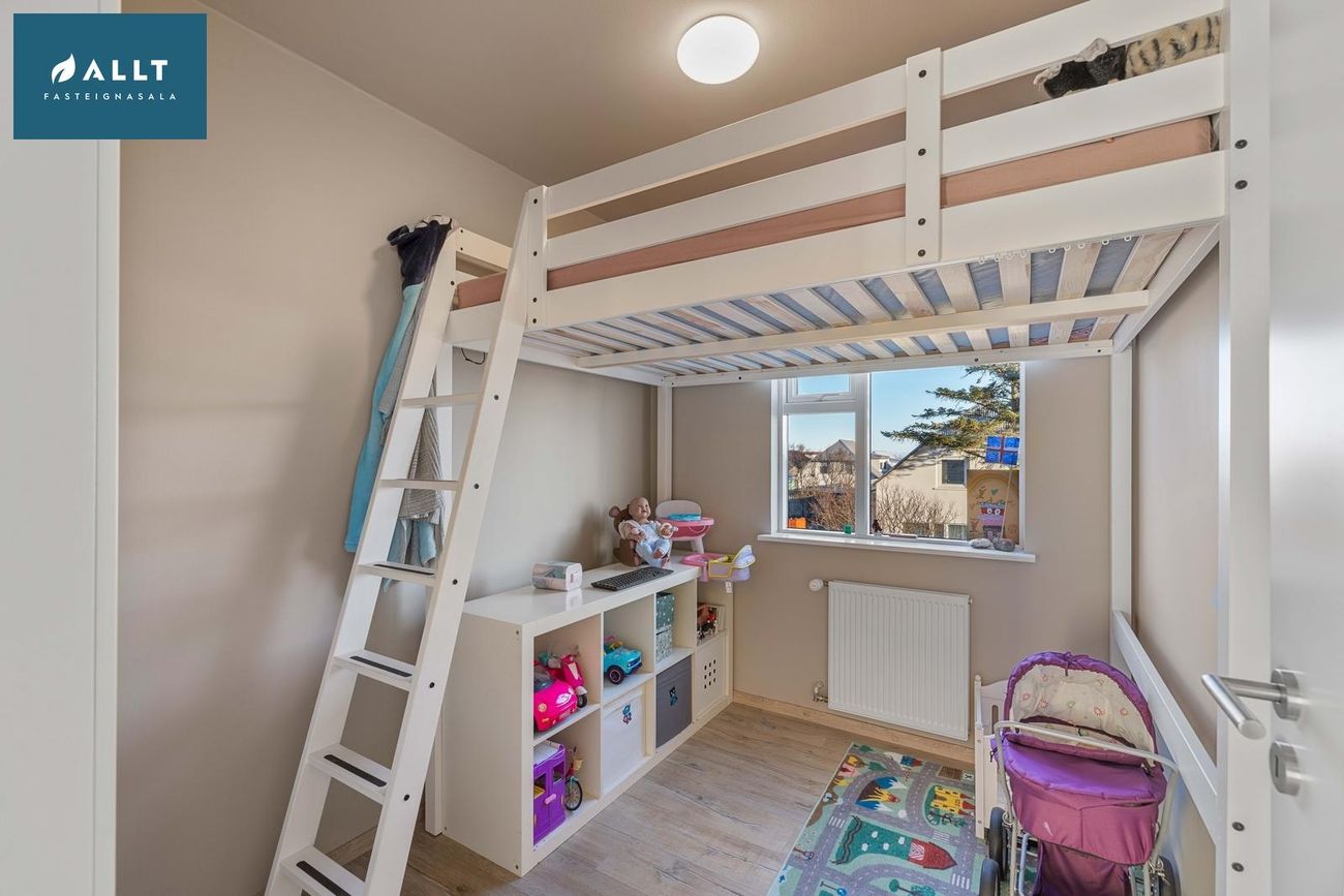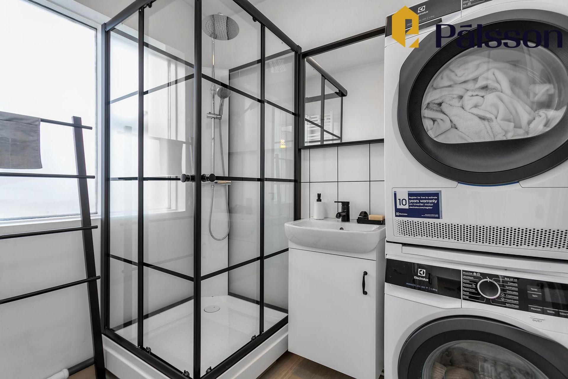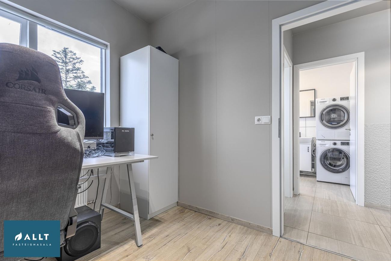 Herbergi 4: Bjart og gott og er innangengt frá forstofu (Skráð sem þvottahús á teikningu). Hefur verið leigt út með aðgengi að gestasnyrtingu og sturtu í þvottahúsi.