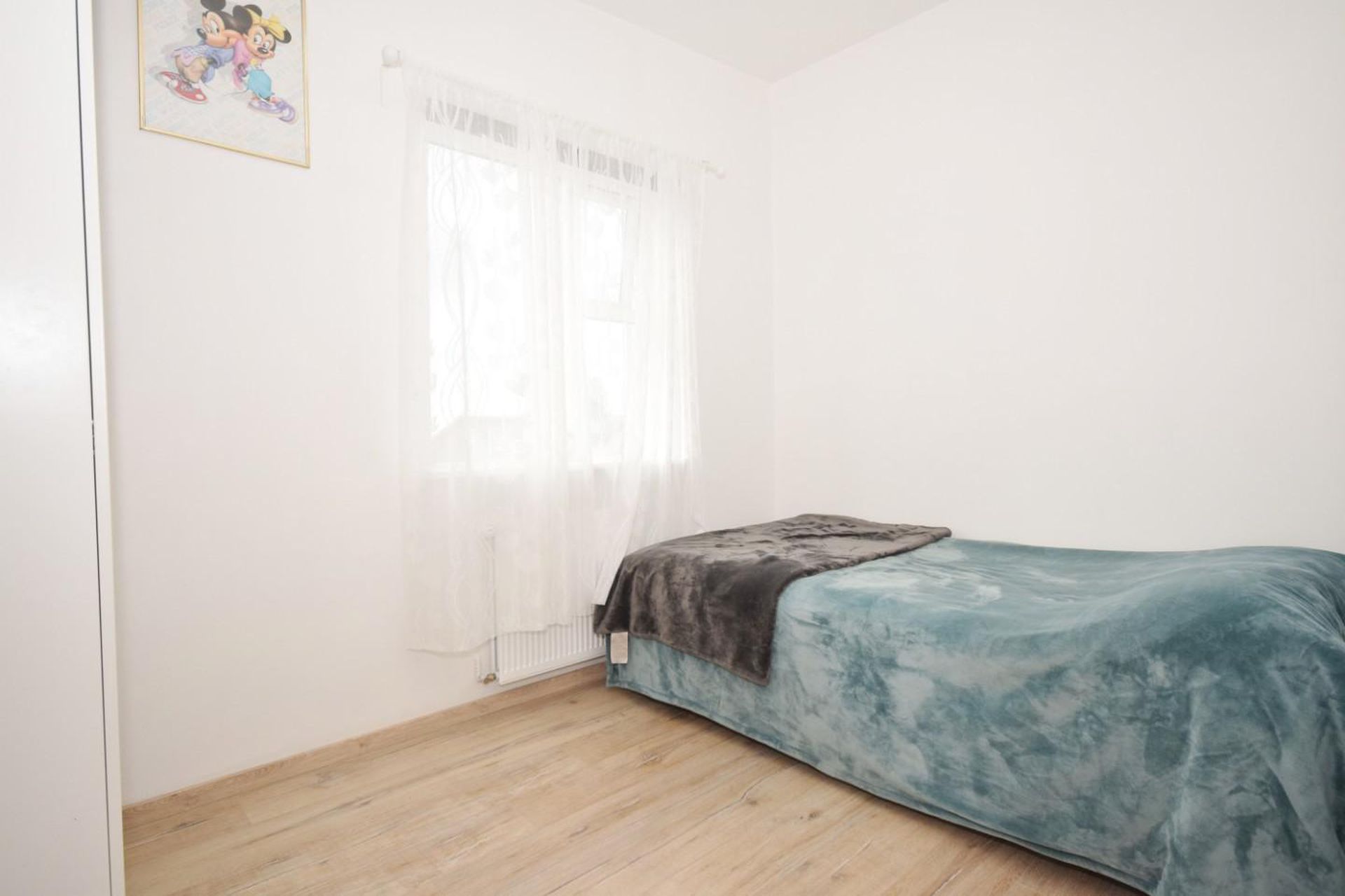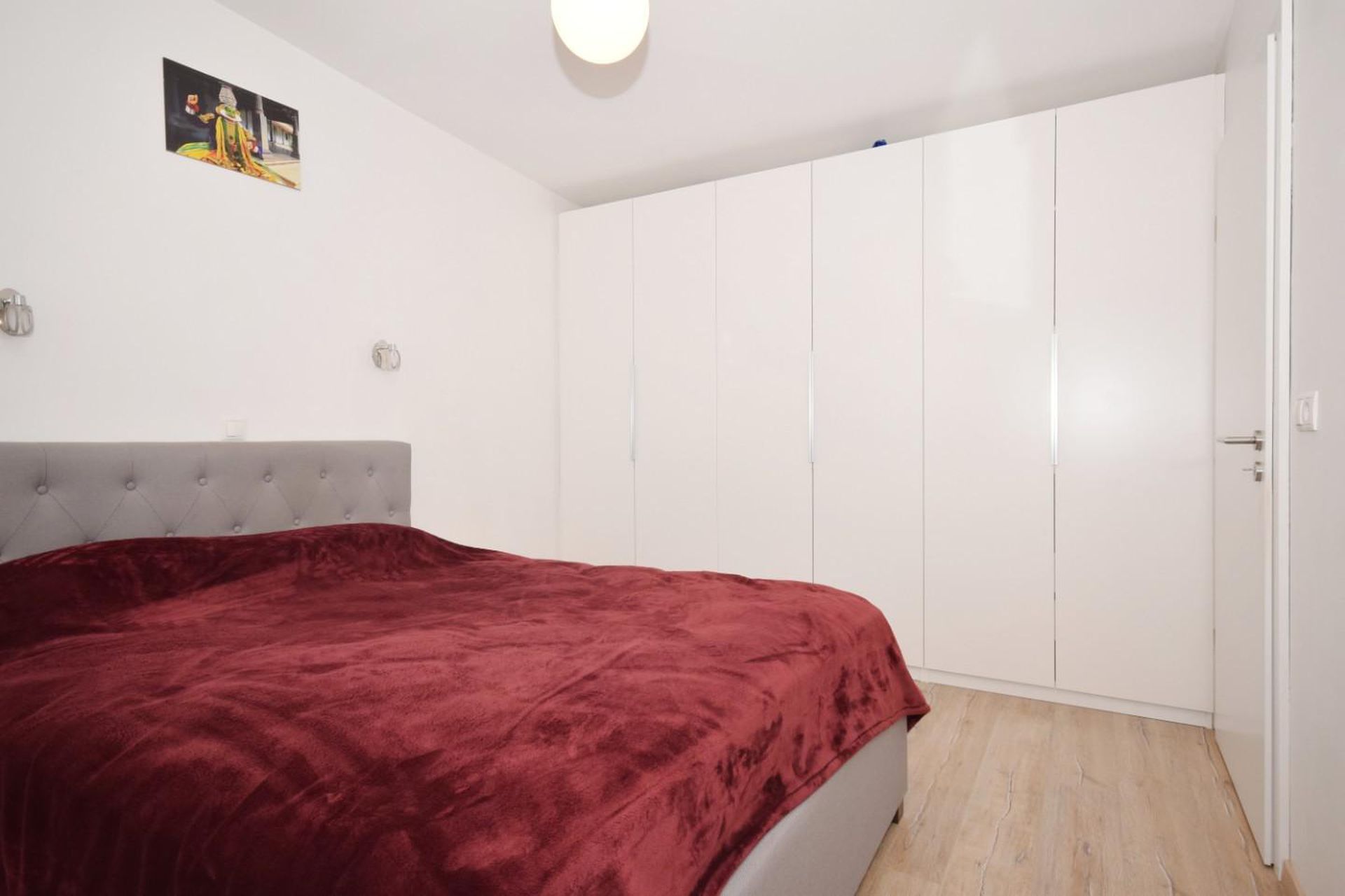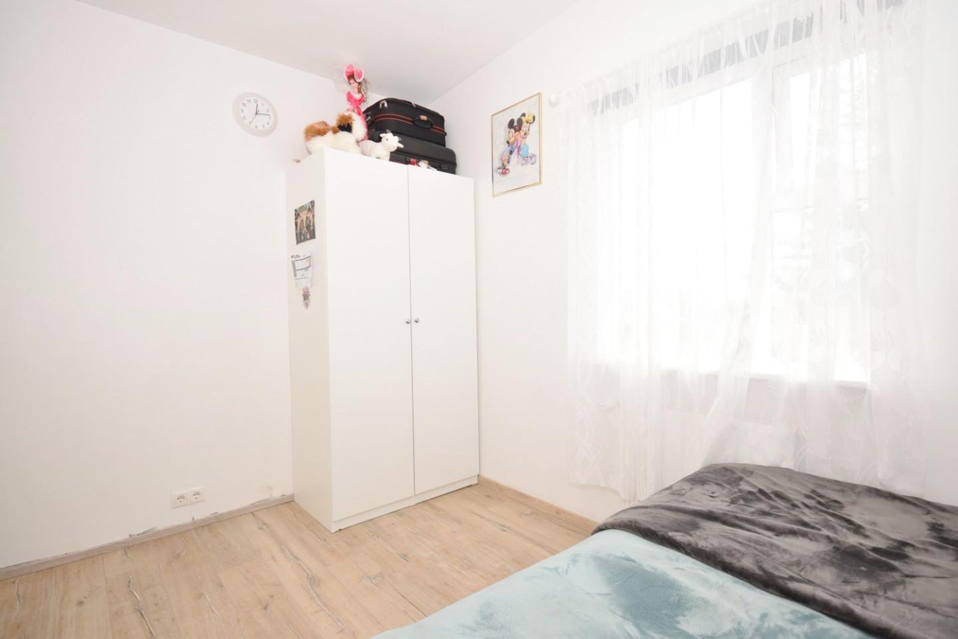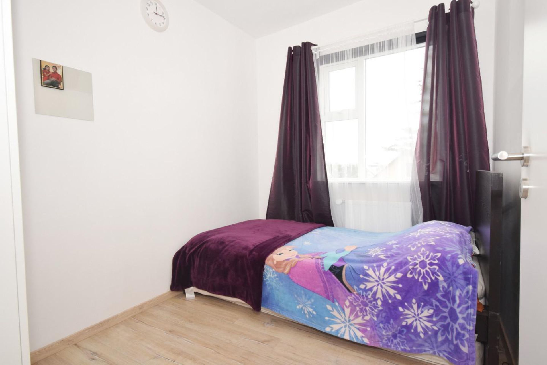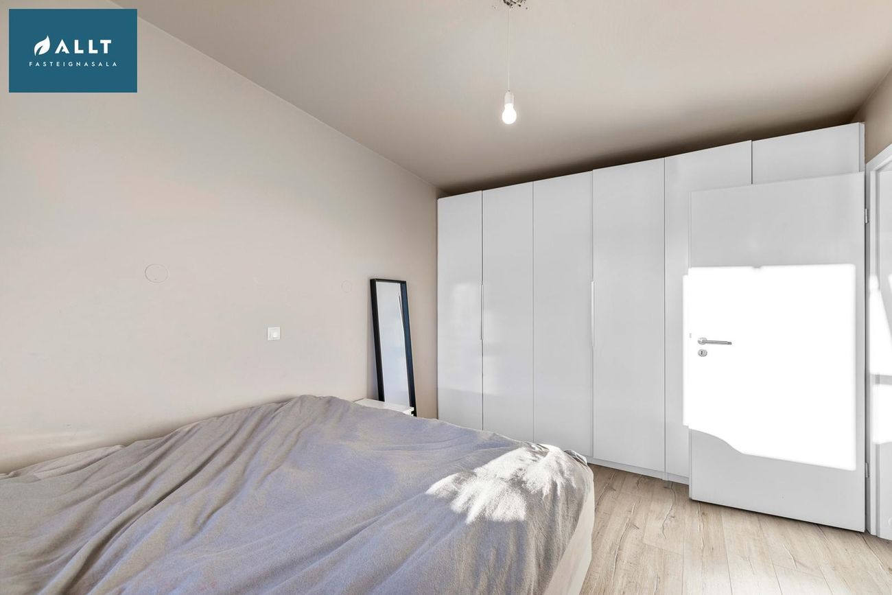 Herbergi 2: Rúmgott með nýlegum, hvítum fataskáp.