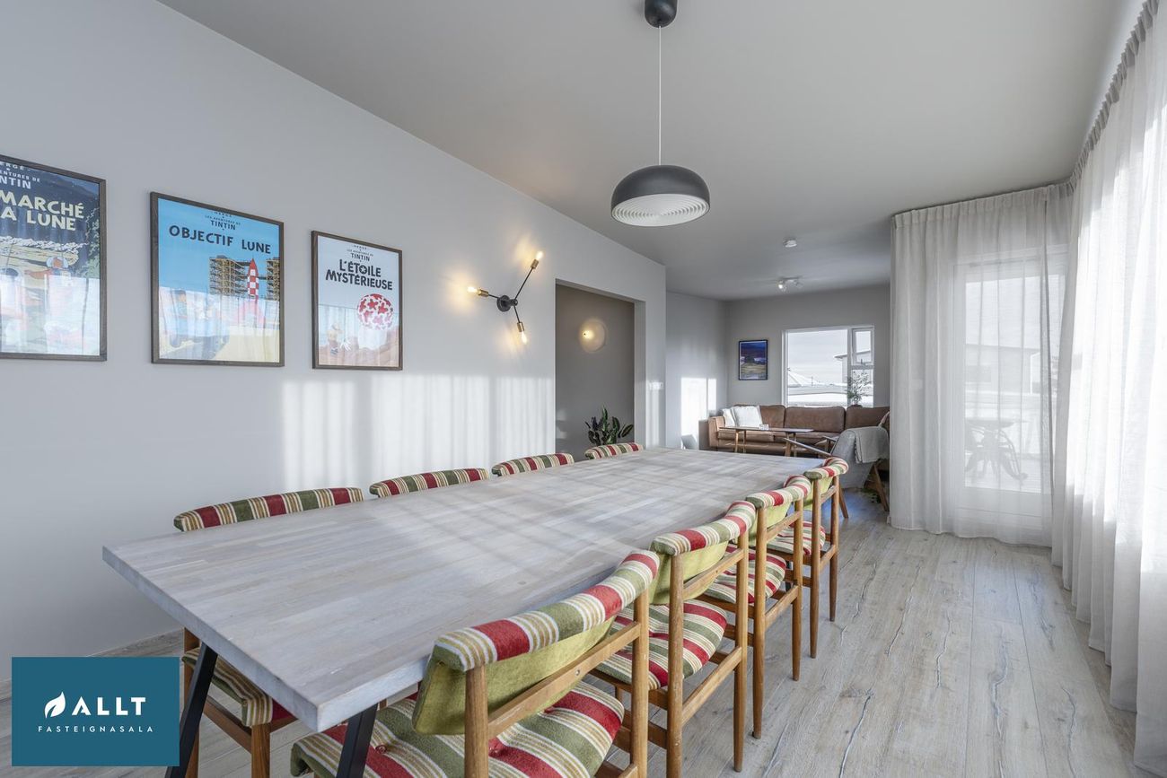 Allt fasteignasala kynnir í einkasölu:Virkilega falleg, spennandi og björt 6 herbergja efri sérhæð ásamt frístandandi bílskúr við Greniteig 7 í Keflavík. Eignin hefur fengið gott viðhald og hefur verið töluvert endurnýjuð. Eignin býður upp á útleigumöguleika og hefur verið Airbnb leiga í eigninni þar sem það er sér herbergi og sturta.