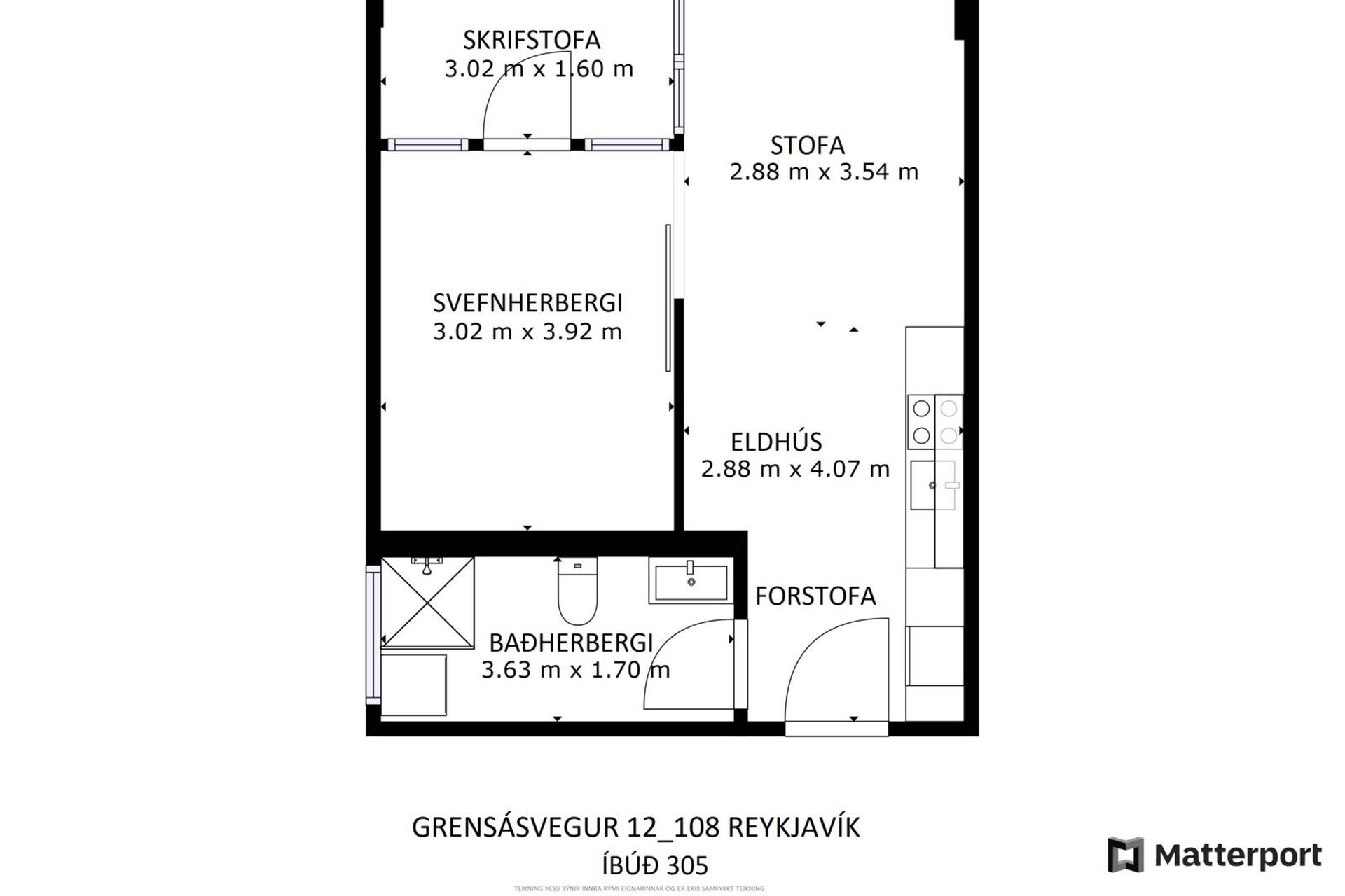 | 1 | 59,70 m² | 49.900.000 kr. 11. desember 2025 | 48.500.000 kr. 15. janúar 2026 |