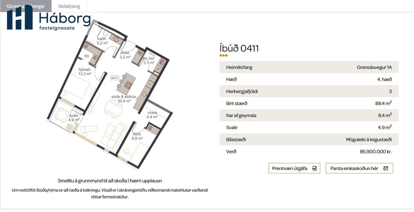 | 06.03.2026 Nánar | 88,4 m² | 926.471 kr. | 81.900.000 kr. |