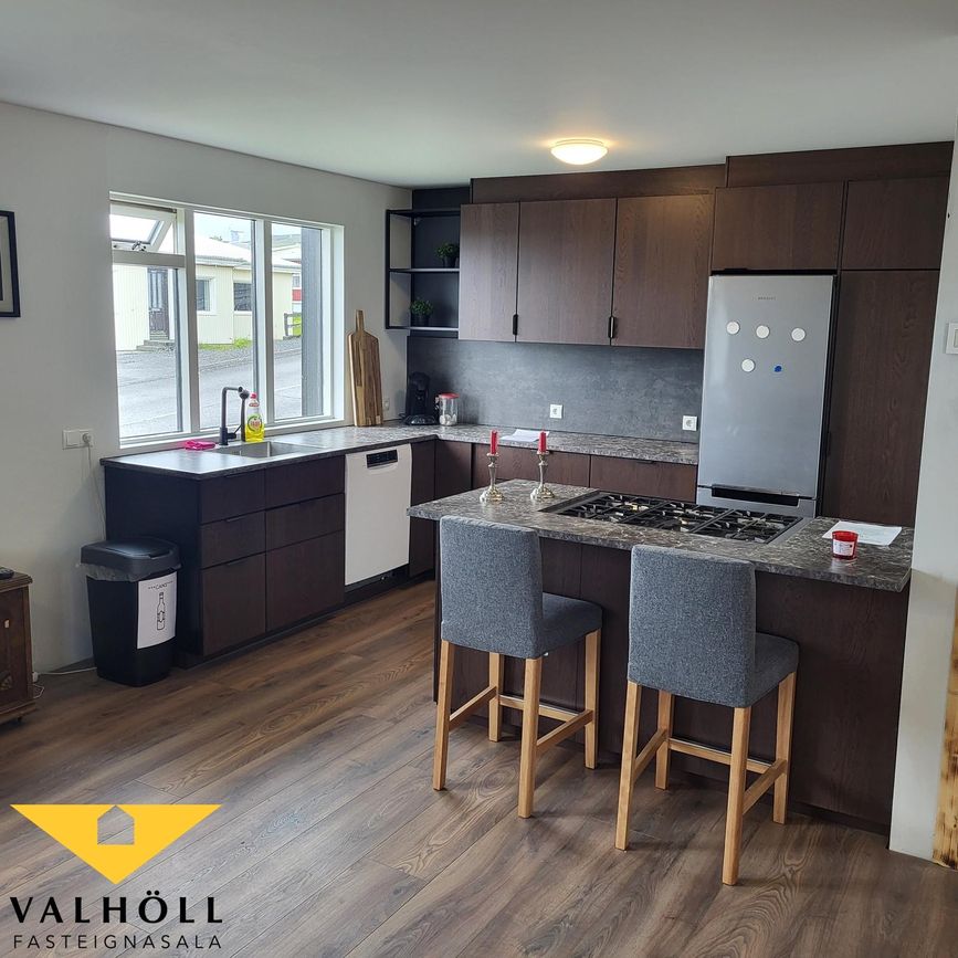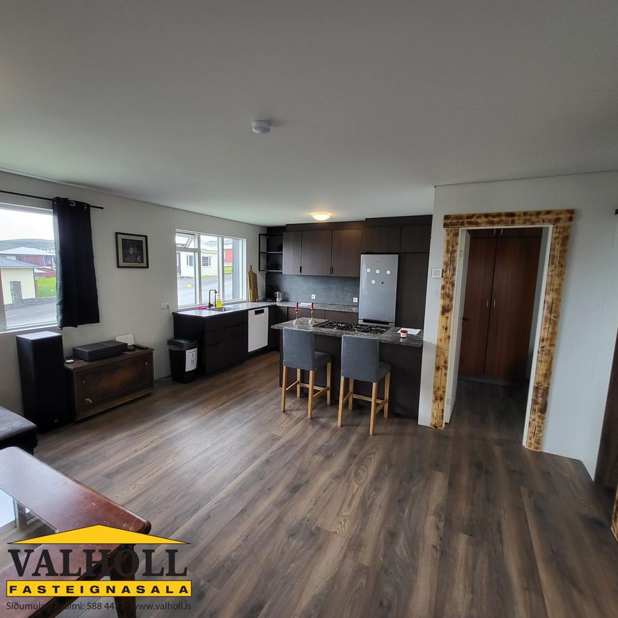 Valhöll fasteignasala kynnir: Fallegt parhús 77,4 fm á einni hæð að Grundarbraut nr.14 - 355 Ólafsvík .Húsið er tvíbýli og norðurendinn er til sölu. Íbúðin skiptist í eldhús og samliggjnadi stofu og tvö herbergi og annað með skápum. Baðherbergið er með sturtu og þar er tengi fyrir þvottavél og þurrkara. Eigninn er mikið endurnýjuð á síðastliðnum tveimur árum. Sem dæmi um endurnýjun, samkvæmt upplýsingum frá seljanda, þá er nýr gólfhiti, túpa, og gegnumstreymishitari. Þá eru neysluvatnslagnir, rafmagn, rafmagnstafla nýtt og ný hurð út í garð. Það er nýtt þak, ný loftaeinangrun úr steinull, gólfefni, eldhúsinnrétting og baðherbergið er flísalagt í hólf og gólf.