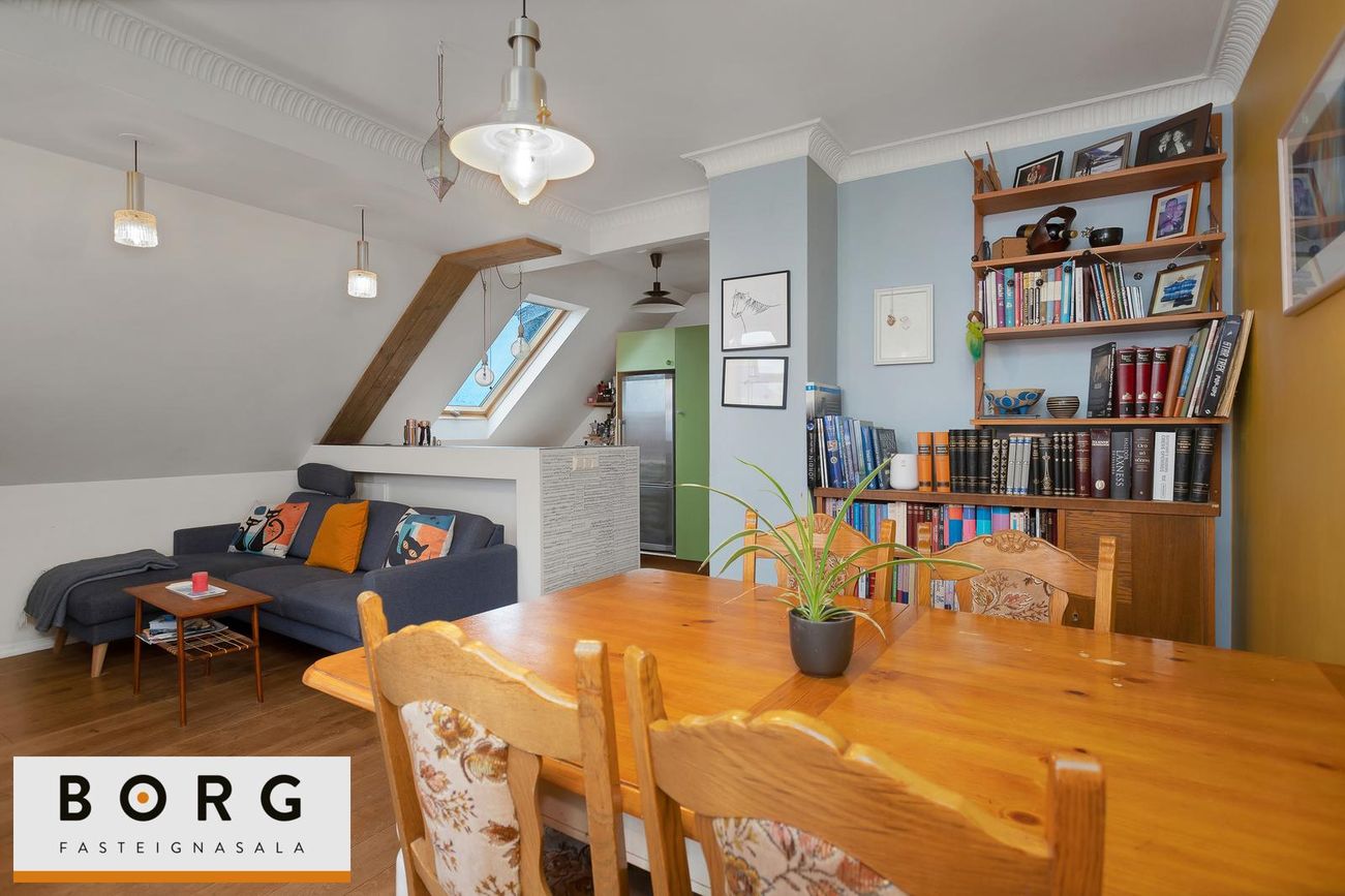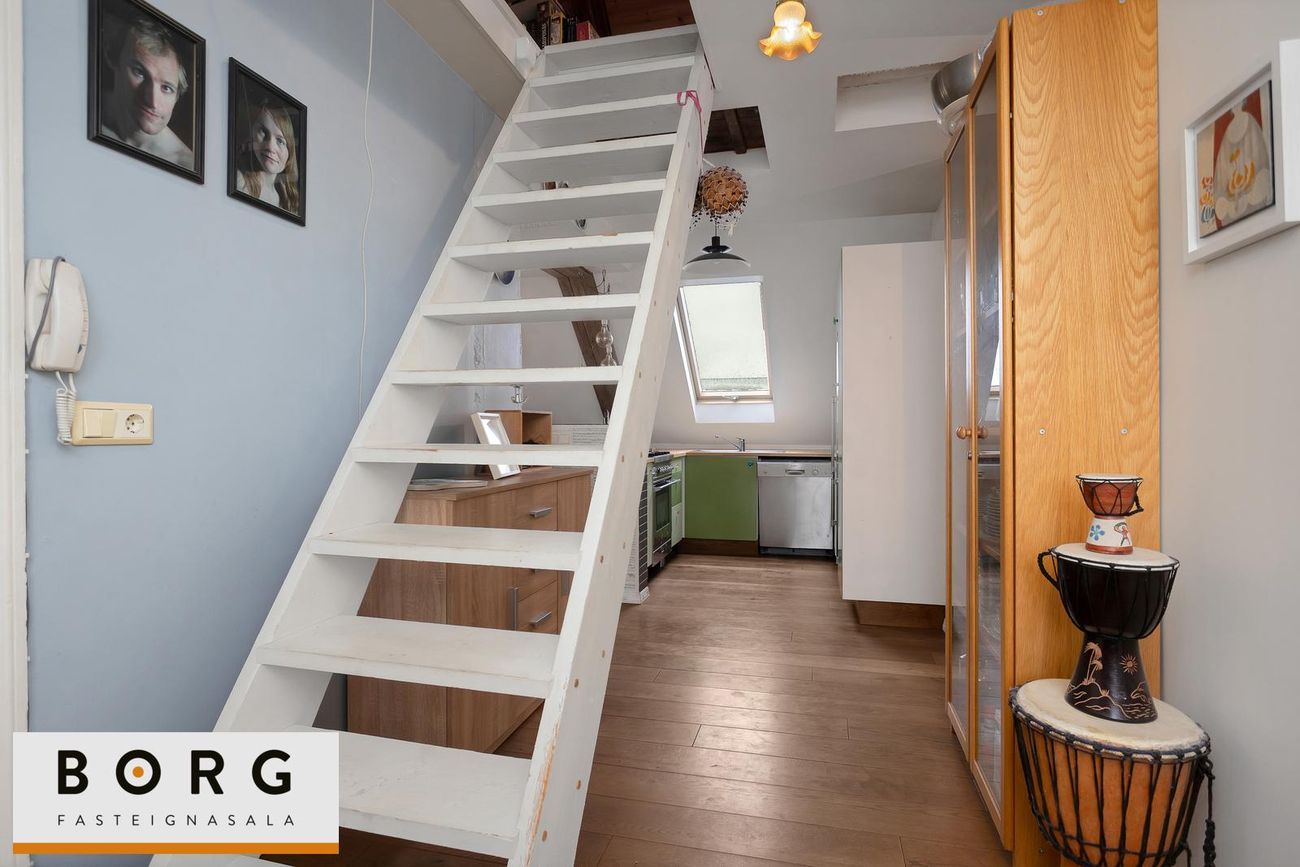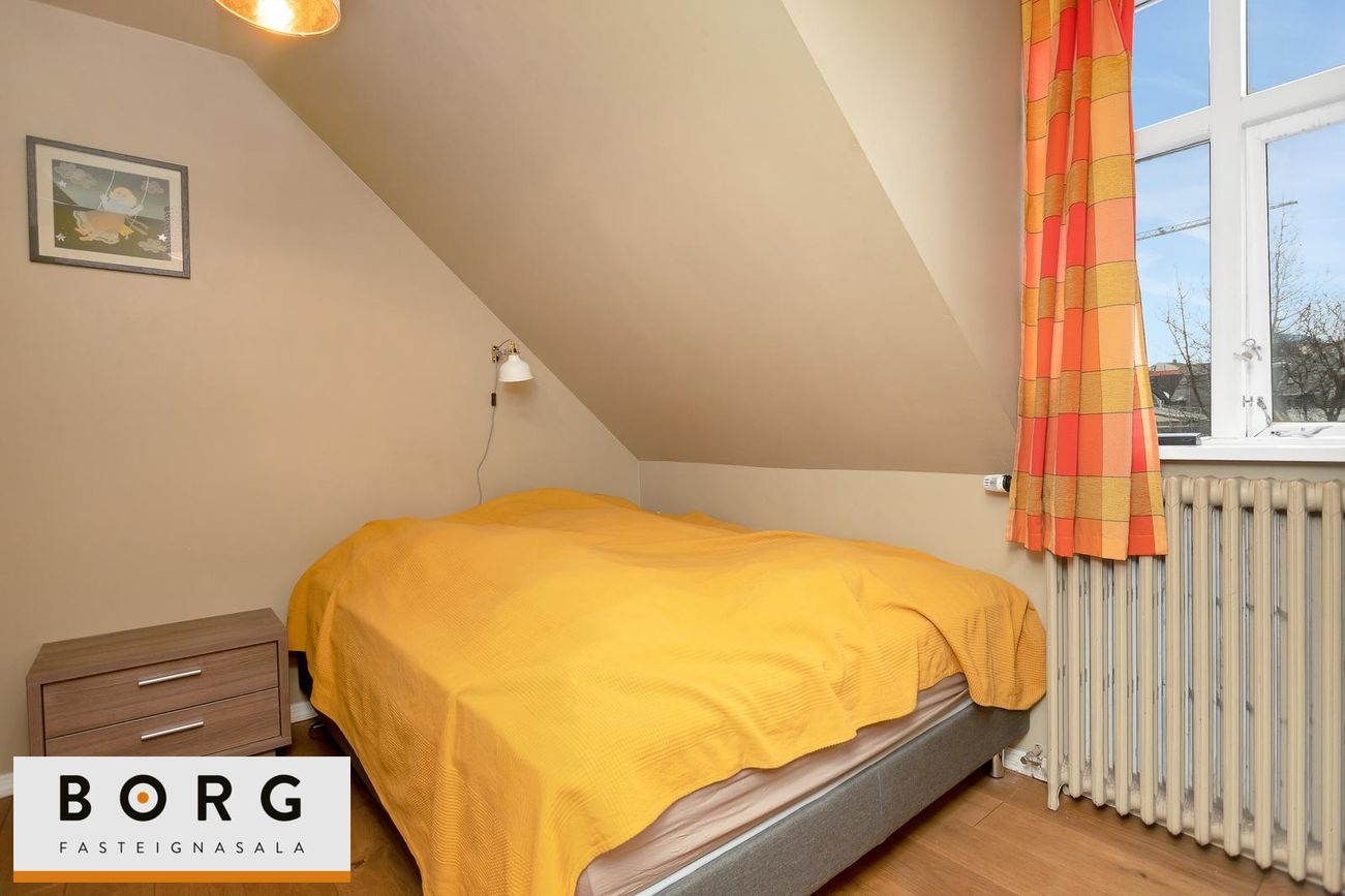 Borg fasteignasala kynnir til sölu fallega 3ja herbergja risíbúð við Grundarstíg í Þingholtunum. Íbúðin skiptist í forstofu hol, stofu, eldhús, hjónaherbergi, barnaherbergi og baðherbergi. Að auk er risloft yfir íbúðinni með mikla möguleika.