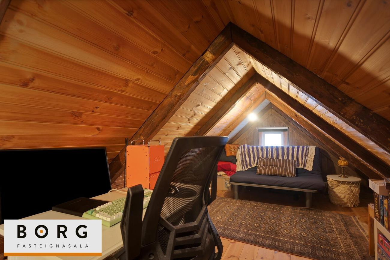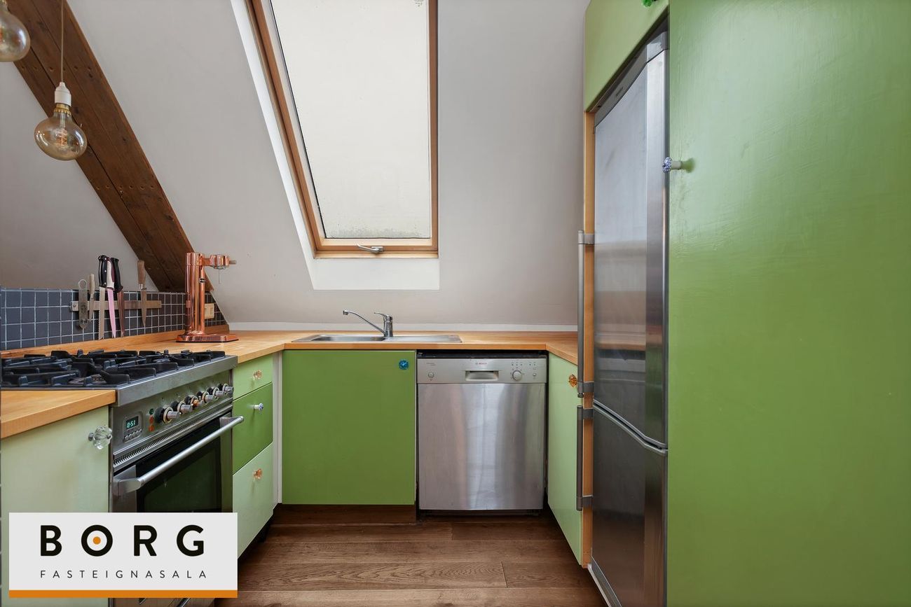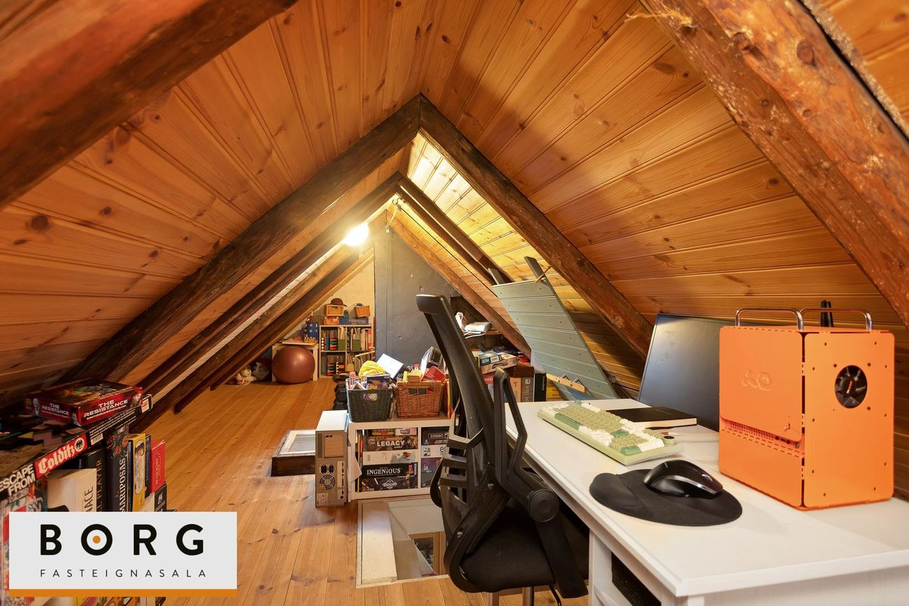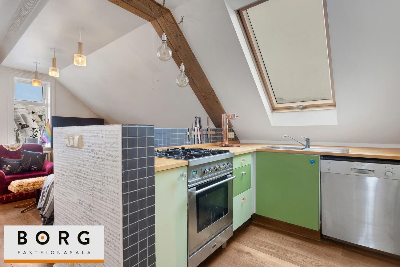 Borg fasteignasala kynnir til sölu fallega 3ja herbergja risíbúð við Grundarstíg í Þingholtunum. Íbúðin skiptist í forstofu hol, stofu, eldhús, hjónaherbergi, barnaherbergi og baðherbergi. Að auk er risloft yfir íbúðinni með mikla möguleika.