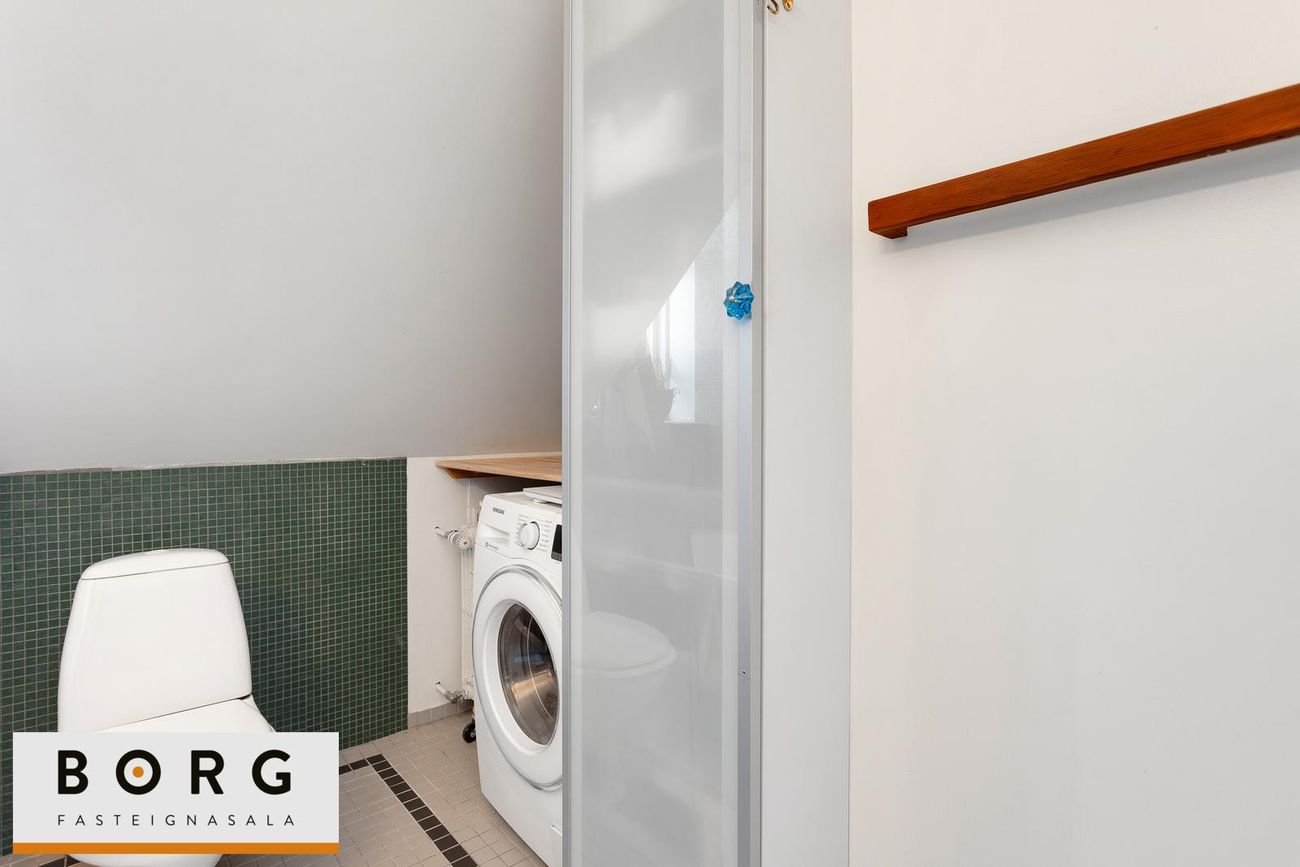Nánari lýsing: Komið er á forstofu. Eldhús er parketlagt með viðarinnréttingu og gaseldavél. Stofa er rúmgóð með parketi og útgangi út á svalir með fallegu útsýni. Hjónaherbergi er parketlagt með fataslá og hillum. Barnaherbergi er parketlagt. Baðherbergi er flísalagt með baðkari og tengi fyrir þvottavél. Risloft er yfir íbúðinni með miklum möguleikum. Í kjallara er sérgeymsla. Húsið verður málað að utan sumar 2026. Íbúðin er skráð samkvæmt HMS íbúð 59,5 fm og geymsla merkt 003 13,5 fermetrar, samtals 73,0 fm.
