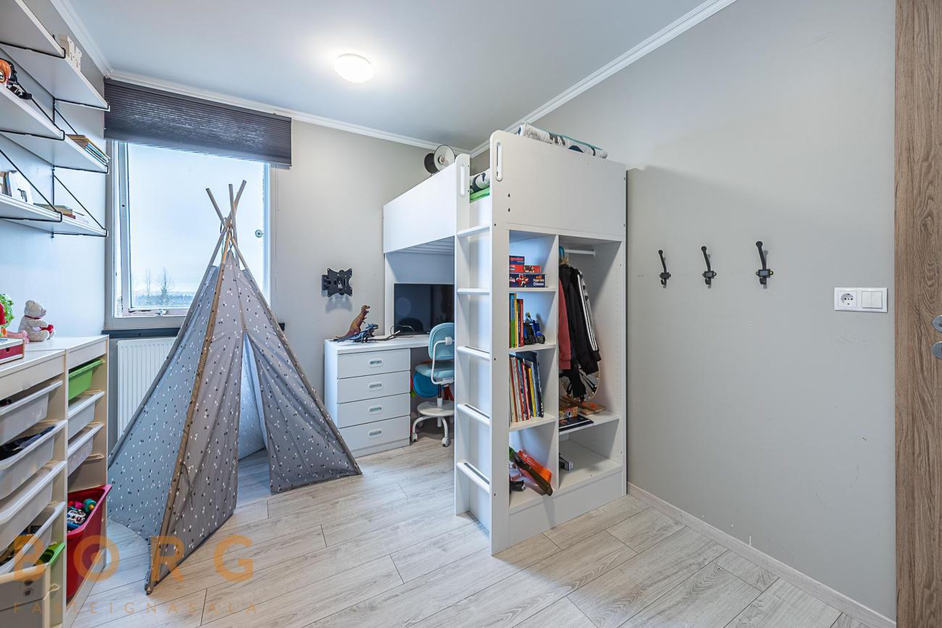 Þrjú svefnherbergi með skápum