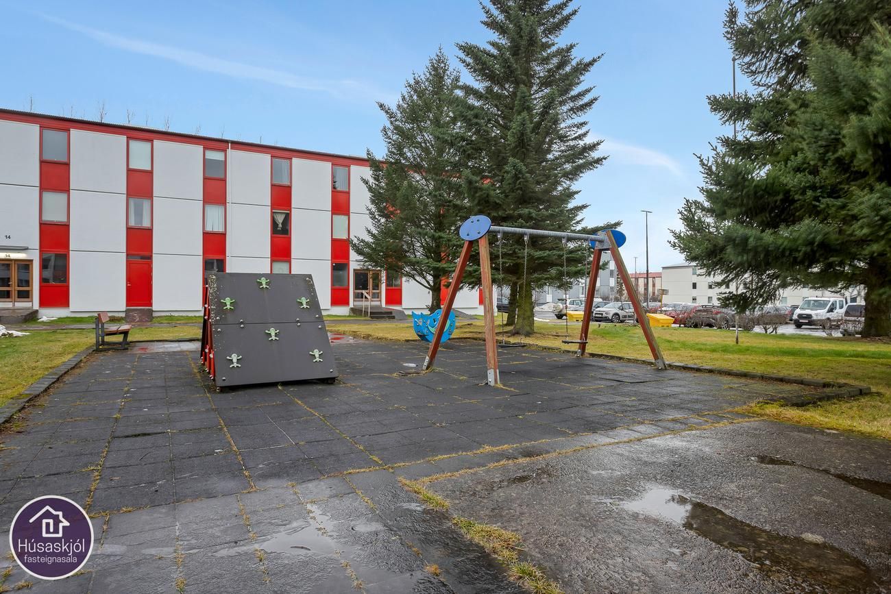 Na sprzedaż mieszkanie 4-pokojowe na trzecim piętrze w trzypiętrowym budynku wielorodzinnym. Powierzchnia mieszkania to 91,1 m² + komórka lokatorska 18,8 m², co daje łączną powierzchnię 109,9 m². Nieruchomość znajduje się w zadbanym budynku przy Grýtubakki 2 w 109 Reykjavík.