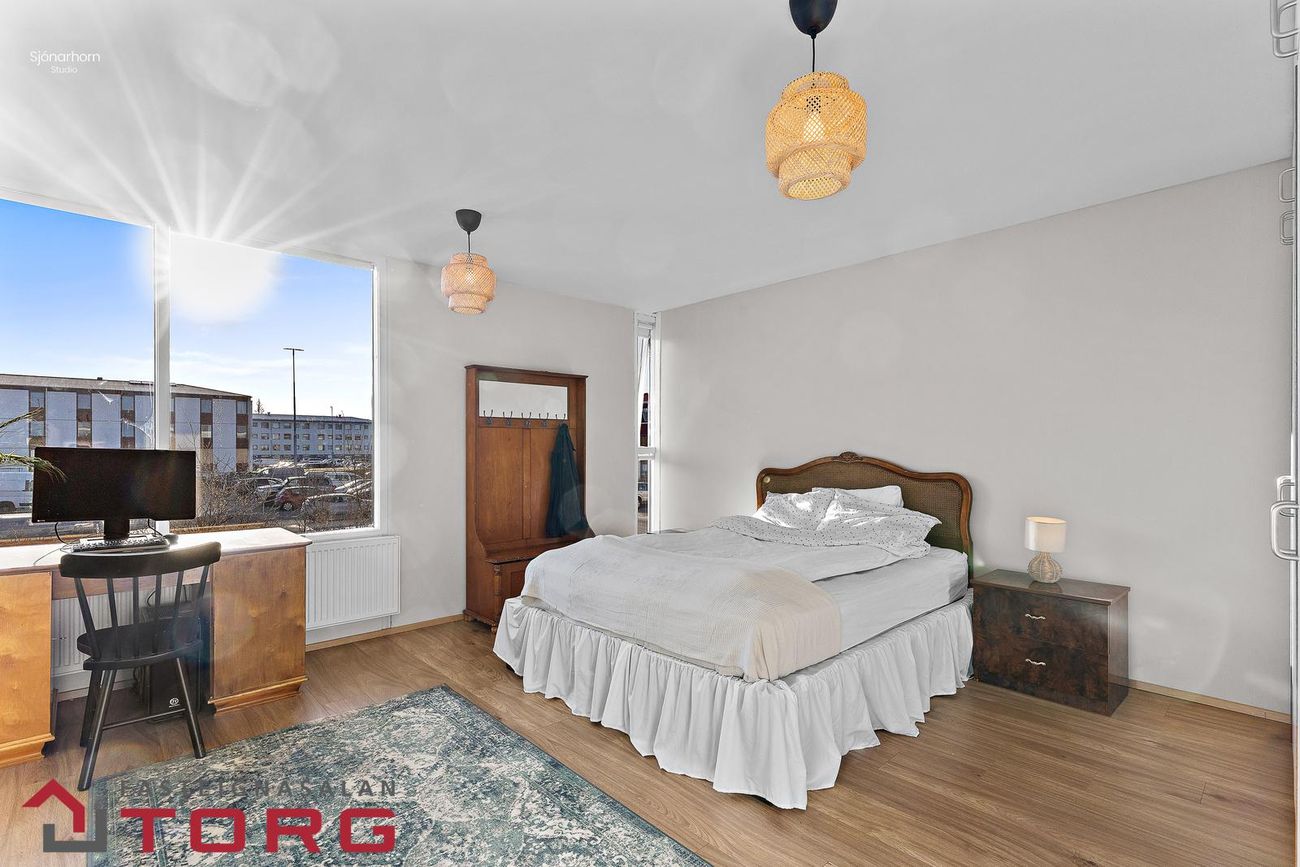 Svefnhebergi. Stórt svefnherbergi sem hæglega er hægt að skipta í tvennt.