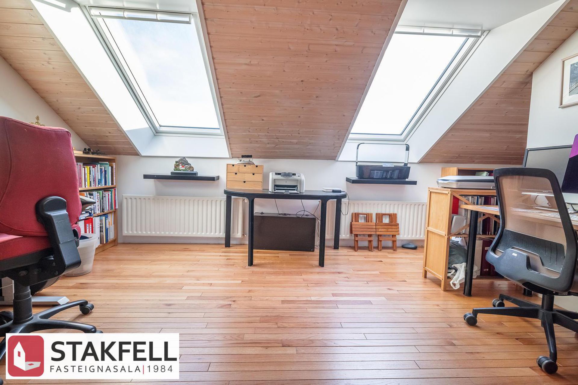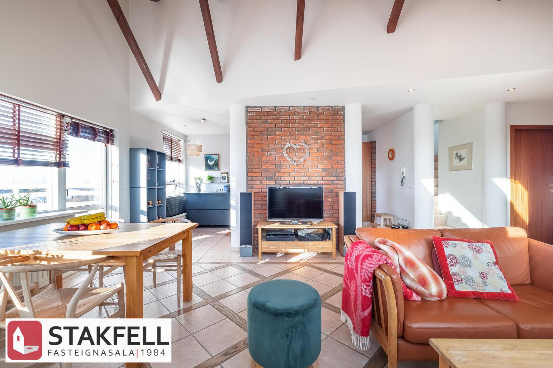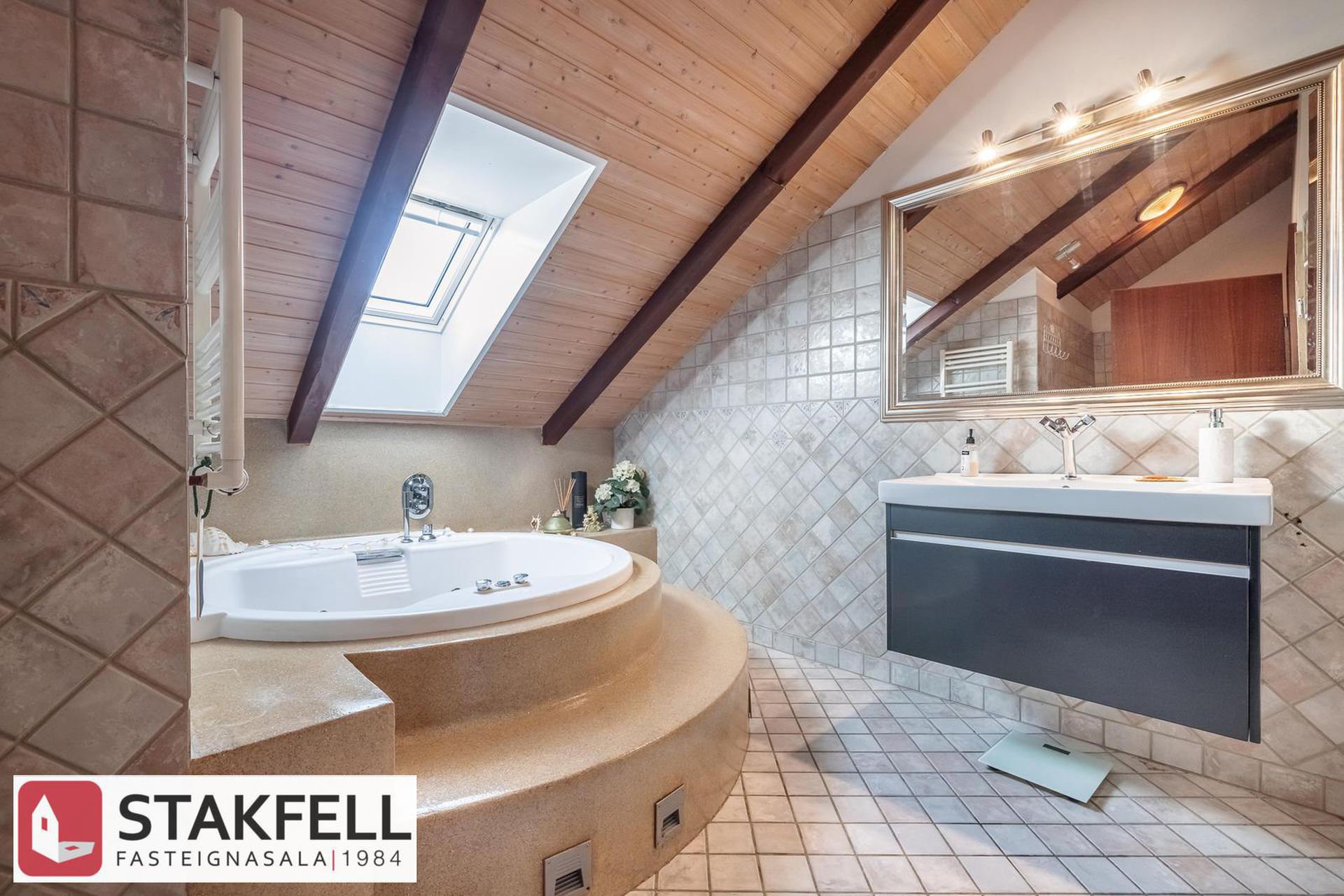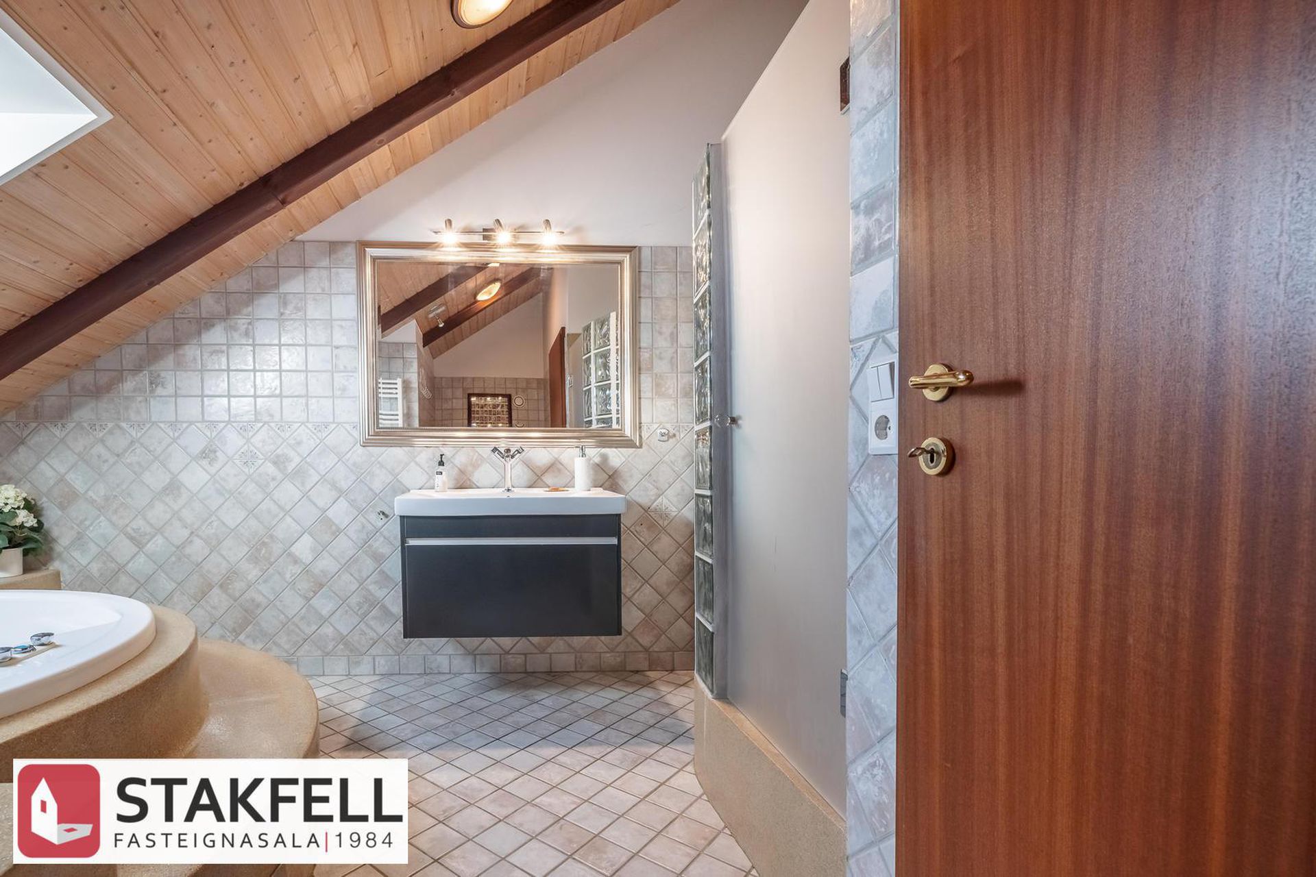 STAKFELL S: 535-1000 kynnir í einkasölu: Einstakalega fallega og vel skipulagða 4-5 herbergja útsýnis íbúð á 7. hæð (efsta hæð) við Gullsmára 8, 201 Kópavogi. Glæsilegt útsýni!Nánari upplýsingar gefa Erling Proppé S: 690-1300, og Hafþór Örn S: 699-4040, Nánari lýsing: Einstaklega falleg og björt eign á tveimur hæðum í sjö hæða lyftuhúsi á þessum vinsæla og eftirsótta stað í Smárahverfinu í Kópavogi. Mikil loft hæð er í stofu og hjónaberbergi og er hluti íbúðarinnar undir súð, því er nýtanlegur gólfflötur íbúðar stærri en fermertratalan segir til um. Íbúðin skiptist íNeðri hæð: Hol, tvö stór svefnherbergi, stofu, eldhús, baðhergi, þvottahús, tvennar svalir og geymslu sem er innan íbúðar. Efri hæð: Hol og rúmgott herbergi.Samkvæmt FMR er íbúðin 119,1fm og geymsla 12,7fm. Samtals: 131,8fm.Neðri hæðHol: Komið er í inní rúmgóðan flísalagðan gang sem tengir saman öll rými íbúðarinnar. gott skápapláss Eldhús: Flíslagt með fallegri innréttingu, gaseldavélStofa: Björt og rúmgóð stofa með flísum á gólfi, mikil lofthæð, útgengi á suðvestur svalir sem eru með glæsilegu útsýni. Lýsing í stofu frá Lumex.Svefnherbergi I: Stórt með gegnheilu parketi. Lýsing frá Lumex. Það er auðvelt að breyta því í tvö herbergi með því að setja upp vegg, eins og upphaflegar teikningar sýna.Hjónaherbergi: Rúmgott með gegnheilu parketi á gólfi og góðum skápum, mikil lofthæð, útgengi í norðaustur svalir.Baðherbergi: Flísalagt með hornbaðkari einnig lokaðri sturtu. Falleg innrétting og skápur. nýlega var hluti blöndunartækja endurnýjaður.Þvottahús: Snyrtilegt flísalagt þvottahús sem er innann íbúðar,tengi fyrir þvottavél og þurrkara.Geymsla: Gott geymsluloft innann íbúðar, 12,7fm.Efri hæð:Gengið er upp flísalagaðan stiga uppá á efri hæðina og komið í fallegt bjart hol sem er með gegnheilu parketi og þakglugga. Lýsing frá Lumex.Svefnherbergi II: Rúmgott svefnherbergi sem er parketlagt með gegnheilu parketi, fataskápur er í herberginu.Hjóla og Vagnageymsla: Er í sameign.Nýlegar framkvæmdir: Skipt var um alla þakglugga í íbúðinni og einnig gler í svalahurðinni sem er í stofunni.Allar nánari upplýsingar veitum við fúslega,Erling Proppé, Aðstoðarmaður Fasteignasala S:690-1300, Hafþór Örn, Aðstoðarmaður Fasteignasala S:699-4040, Þorlákur, löggiltur fasteignasali.Kostnaður kaupanda vegna kaupa: Stimpilgjald kaupsamnings einstaklinga er 0,8% og lögaðila 1,6% af fasteignamati eignar. Lántökugjald getur verið breytilegt eftir lánastofnunum, oftast 1%. Þinglýsingargjald er 2.000 fyrir hvert skjal. Þjónustu- og umsýslugjald til fasteignasölu skv. kauptilboði.