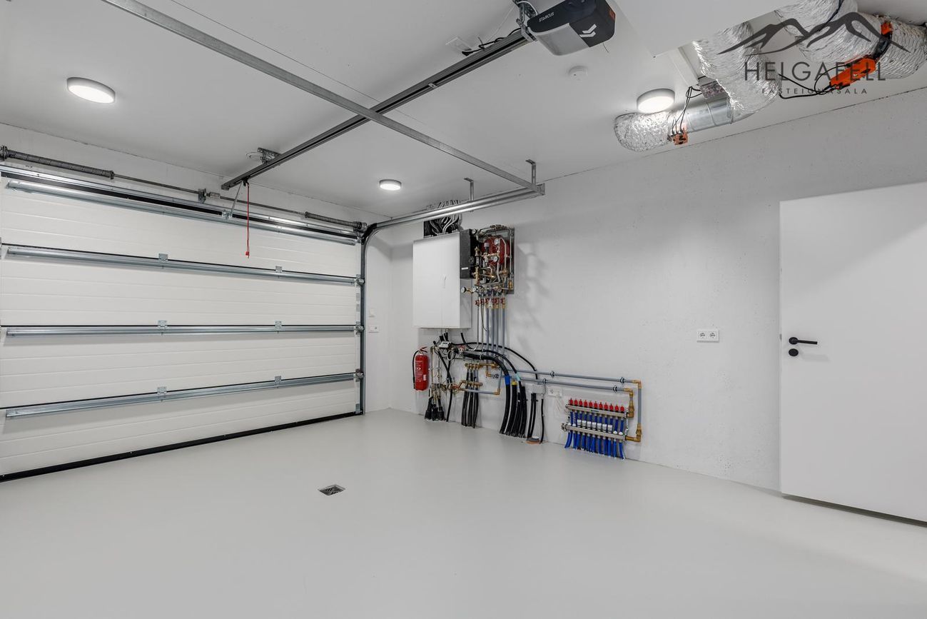 Bílskúr: Stærð 26,2 fm, rafdrifin opnun er á bílskúrshurð, innangengt í þvottahús, loftskipti kerfi, inntök veitna er í bílskúr, rafmagnstafla og gólfhitagrind, lögn fyrir rafhleðslustöð utan á bílskúr (rafhleðslustöð fylgir ekki með), málað gólf.