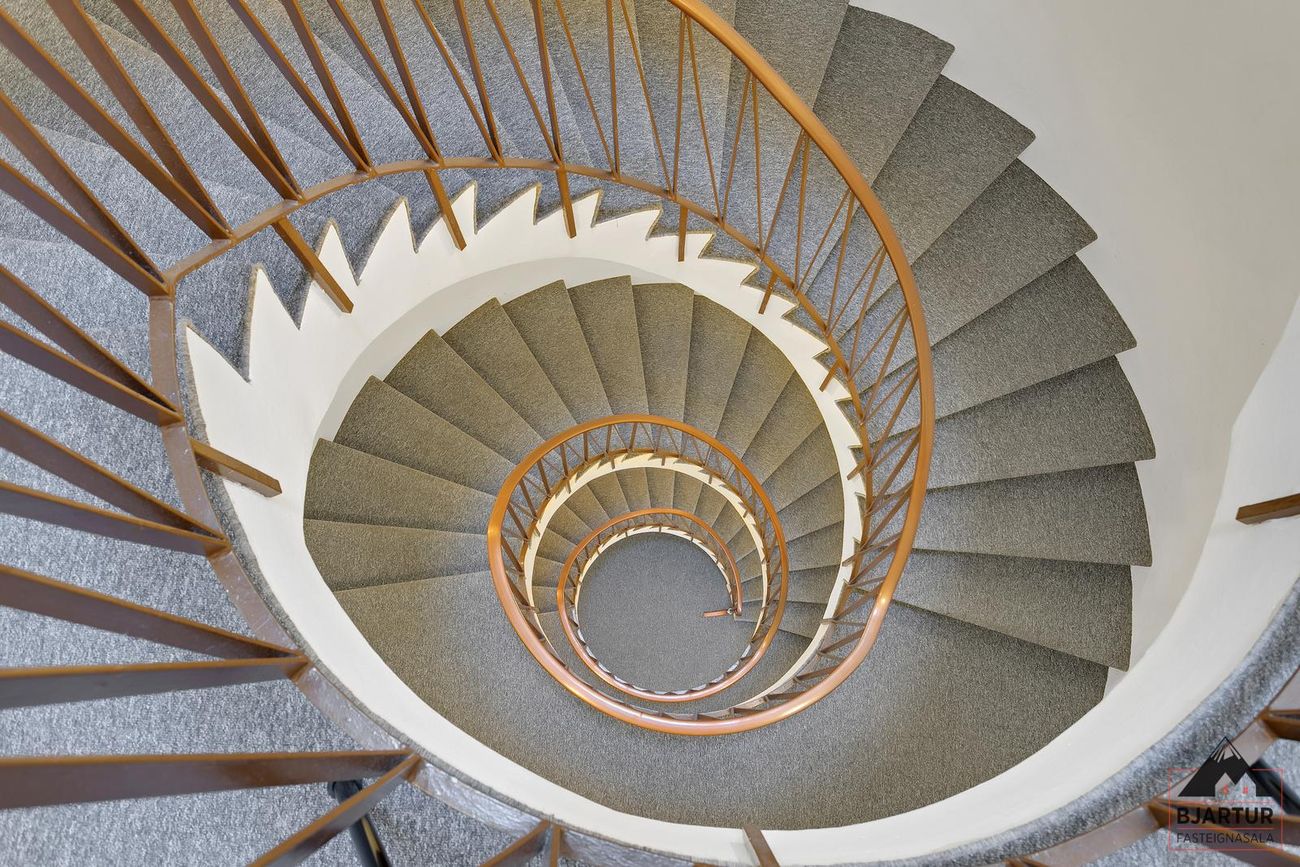 Íbúðin er á fjórðu hæð og stigagangurinn er hringlaga, algjör hönnunarperla.