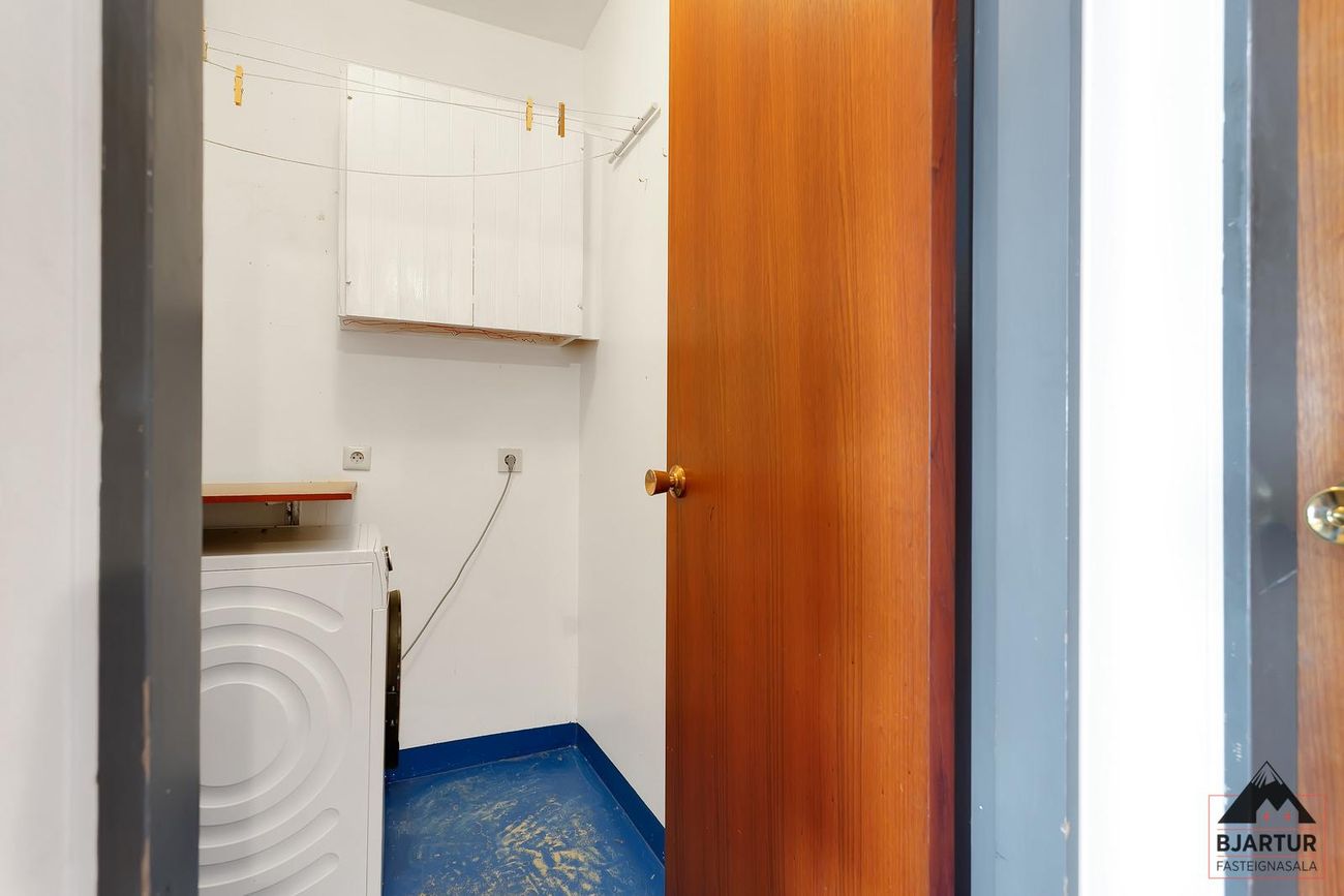 Skemmtilegur leikvöllur og fótboltavöllur fyrir aftan blokkina. Góðar samgöngur á svæðinu. Kringlan, Skeifan og Laugardalur eru í göngufæri. Nánari lýsing Inngangur, komið er inn í hol með stórum innbyggðum skáp.