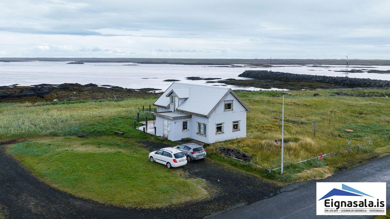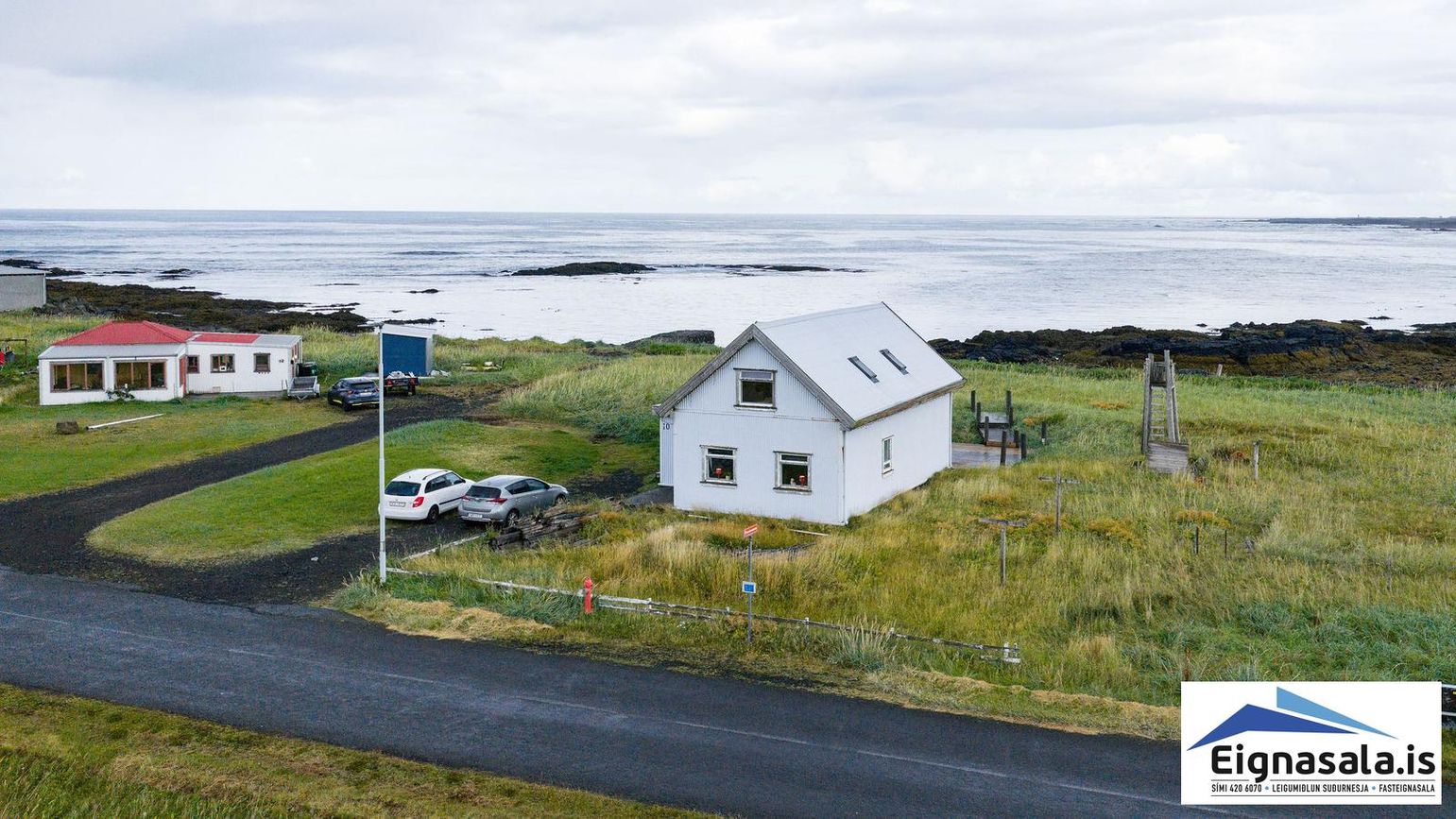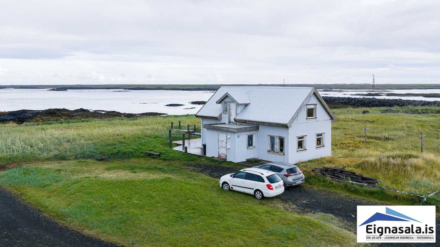Tveggja hæða einbýlishús með 73m2 á neðri hæð og 38,2m2 í risi. Útisvæði með palli og fjöruaðgengi.