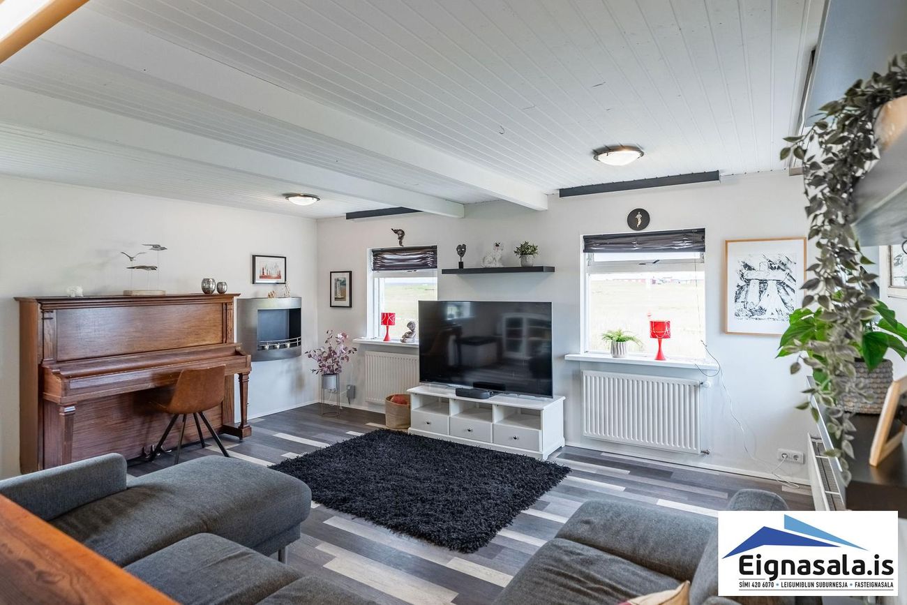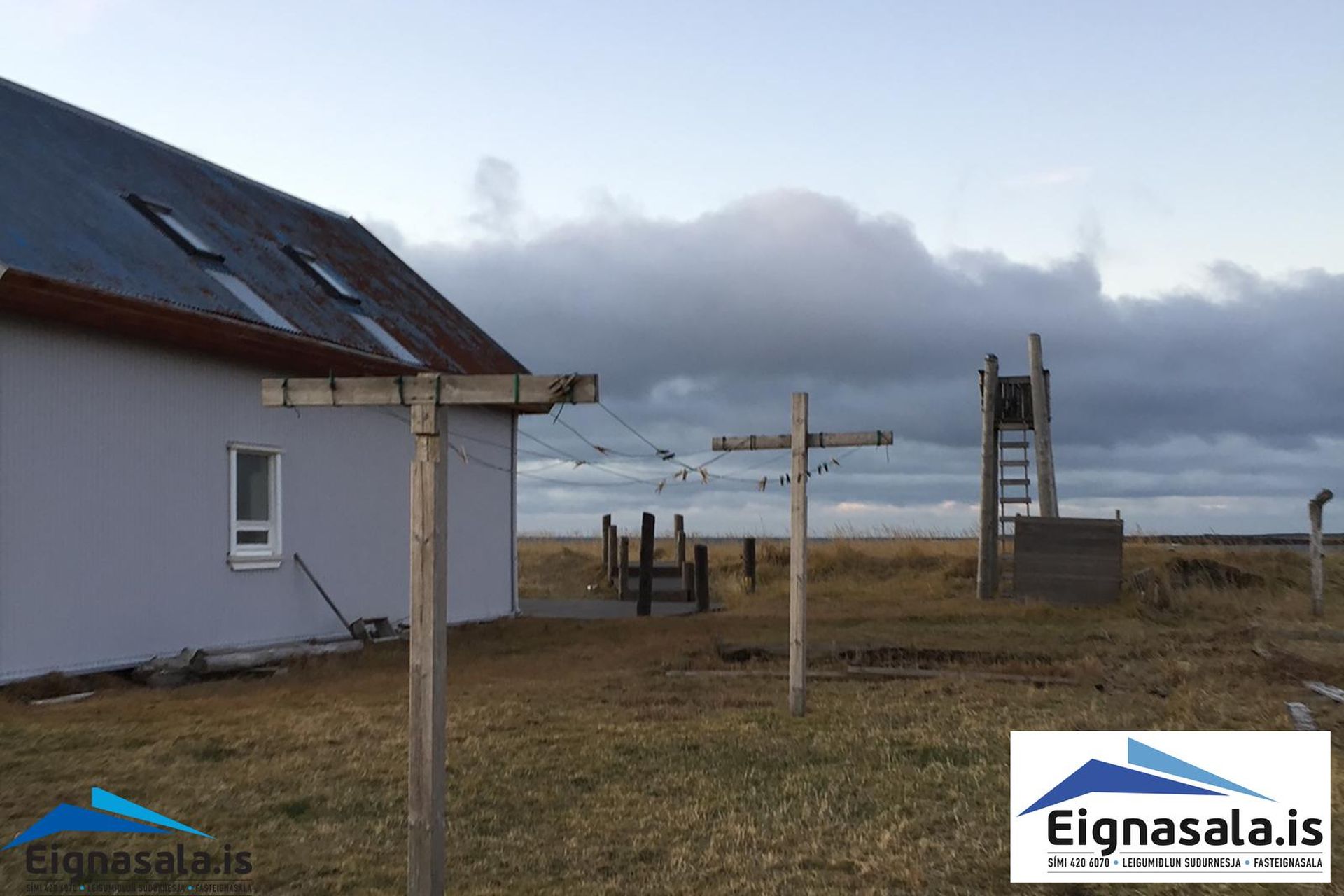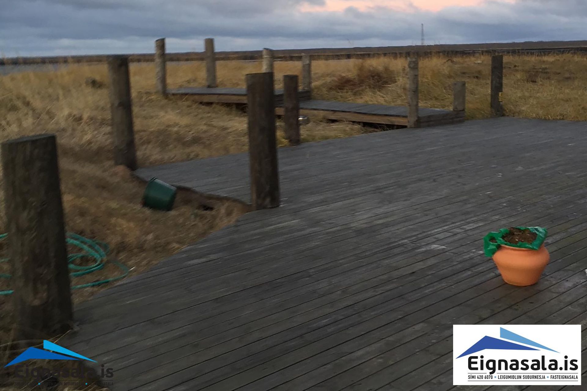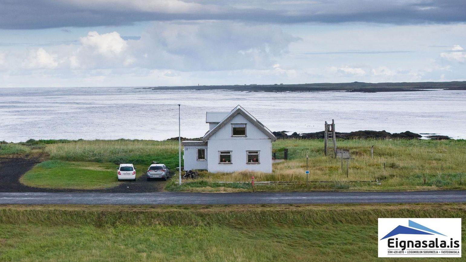 Tveggja hæða einbýlishús með 73m2 á neðri hæð og 38,2m2 í risi. Útisvæði með palli og fjöruaðgengi.
