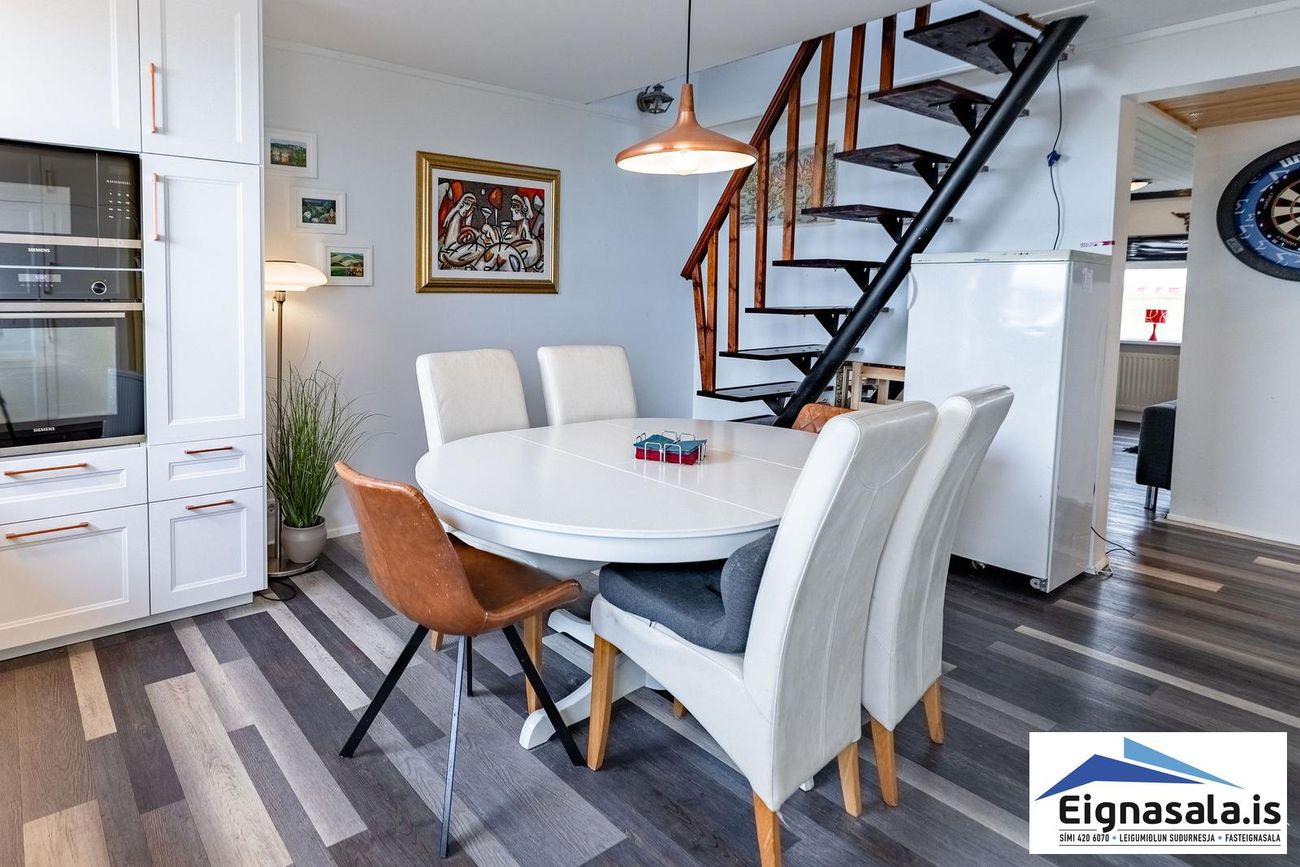 Skráð stærð 73m2 á neðri hæð með harðparketi.