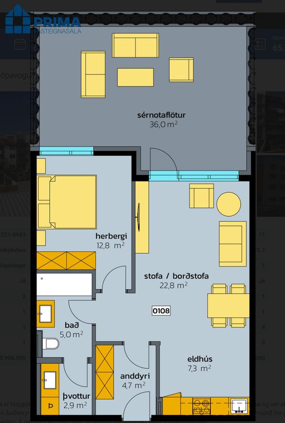| 3 | 108,70 m² | 52.900.000 kr. 18. febrúar 2021 | - - |