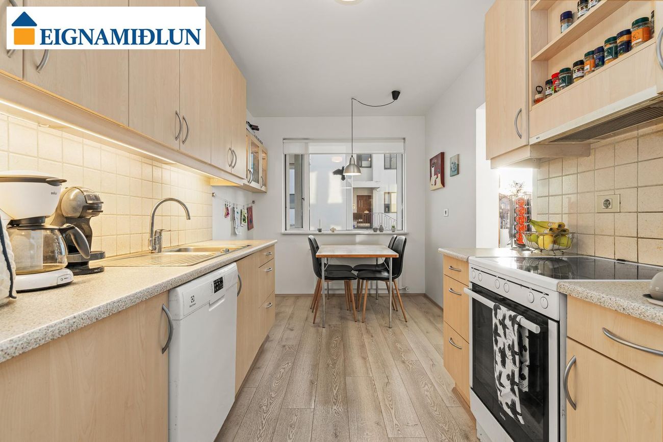 154,3 fm íbúð með 5,1 fm geymslu. Skiptist í forstofu/hol, 4 svefnherbergi, 2 stofur, eldhús, baðherbergi, gestasnyrtingu og sérþvottahús. Svalir til suðurs og vesturs.