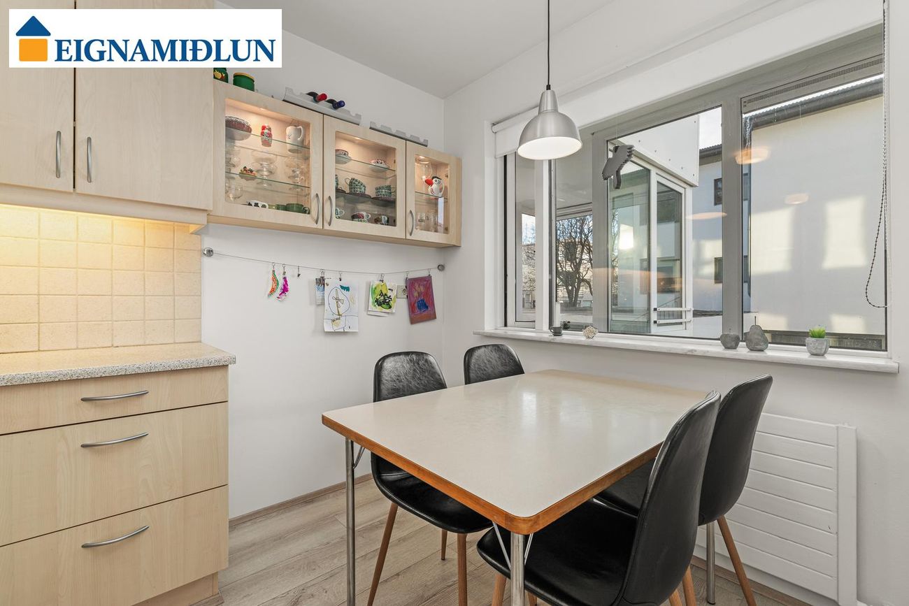 Tvennar svalir (8,5 fm suðursvalir yfirbyggðar og 5,2 fm vestursvalir).