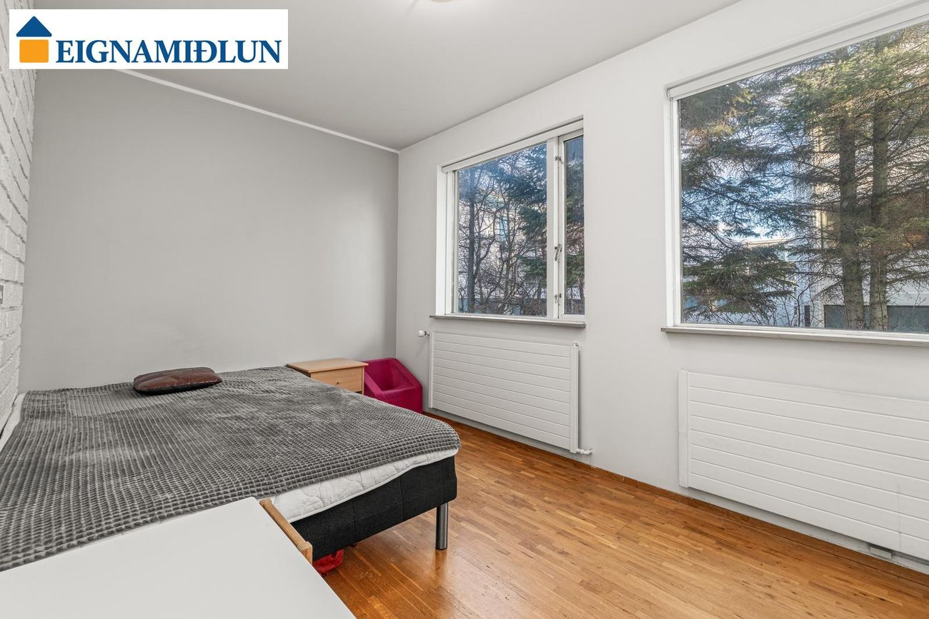 Fjögur svefnherbergi, þar á meðal rúmgott hjónaherbergi með fataskápum og útgöngu að suðursvölum.