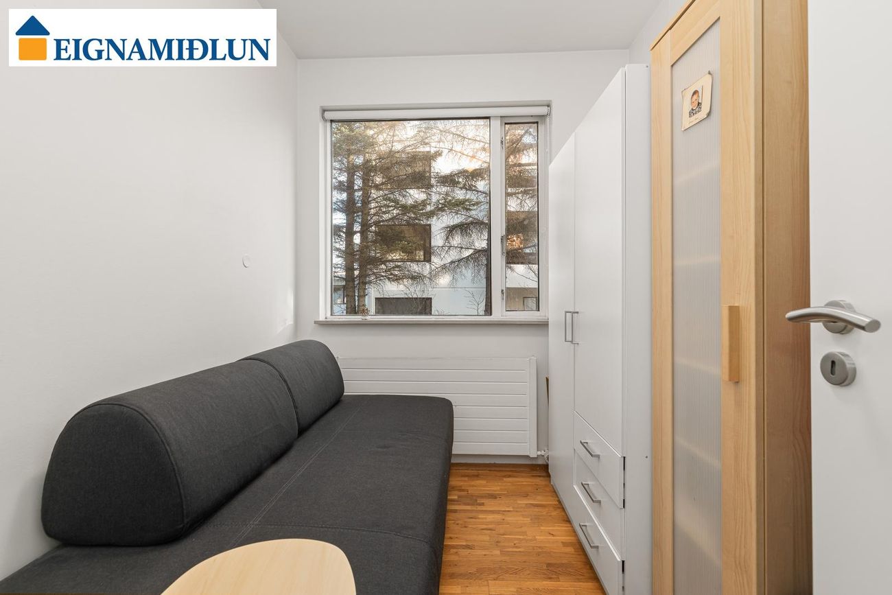 HERBERGI I: Innaf holi parketlagt og úr herbergi er gengið út á góðar svalir í vestur.