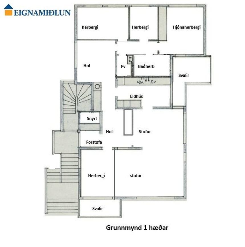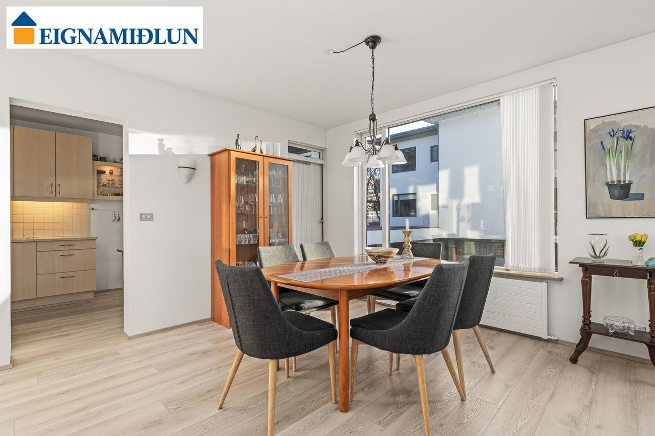 Eignin skiptist í: Forstofu/hol, 4 svefnherbergi, 2 stofur, eldhús, sérþvottahús, baðherbergi og gestasnyrtingu.
