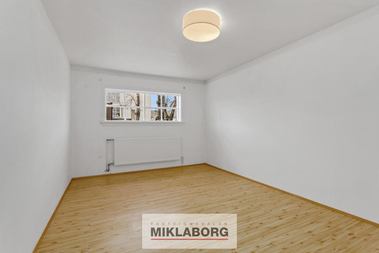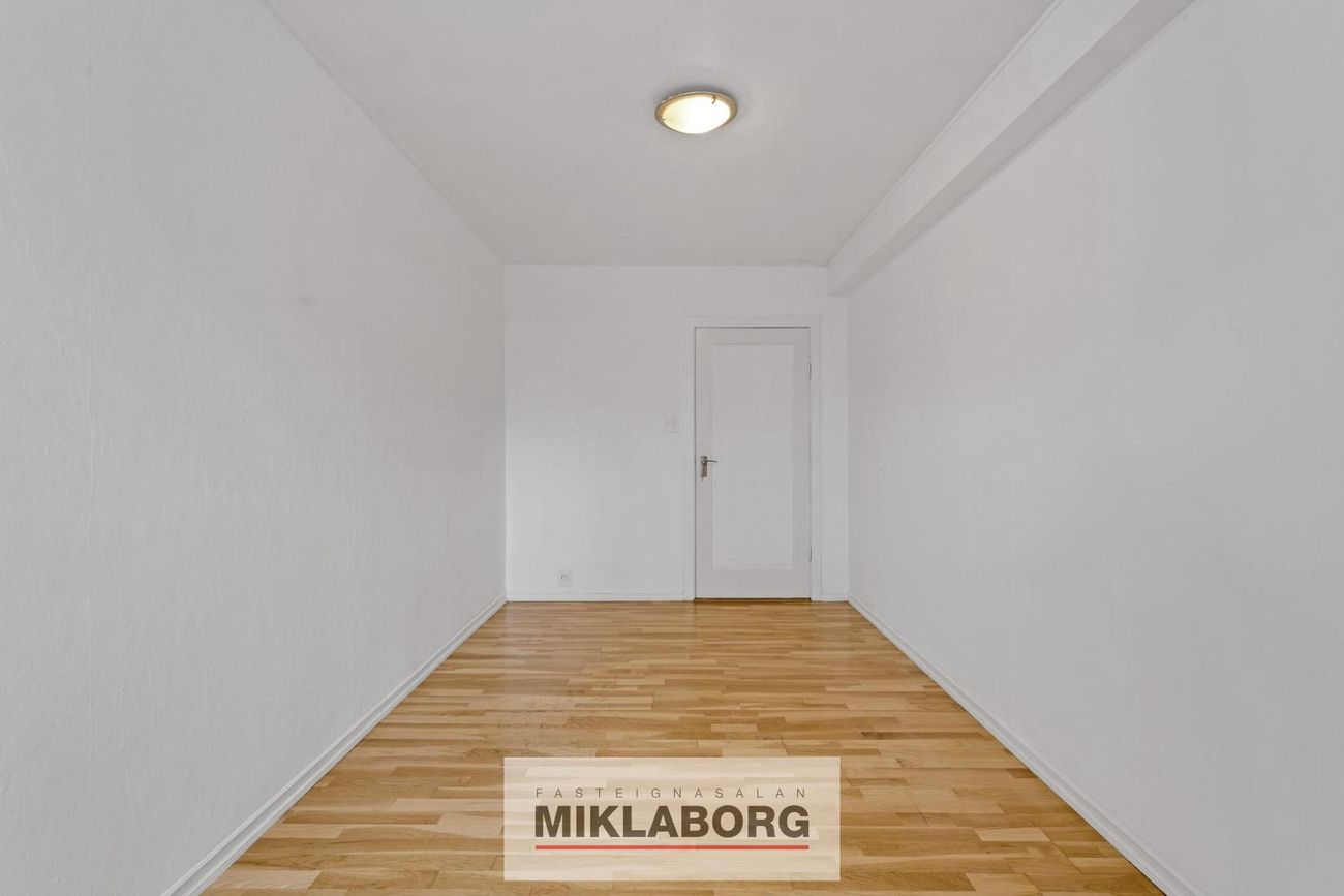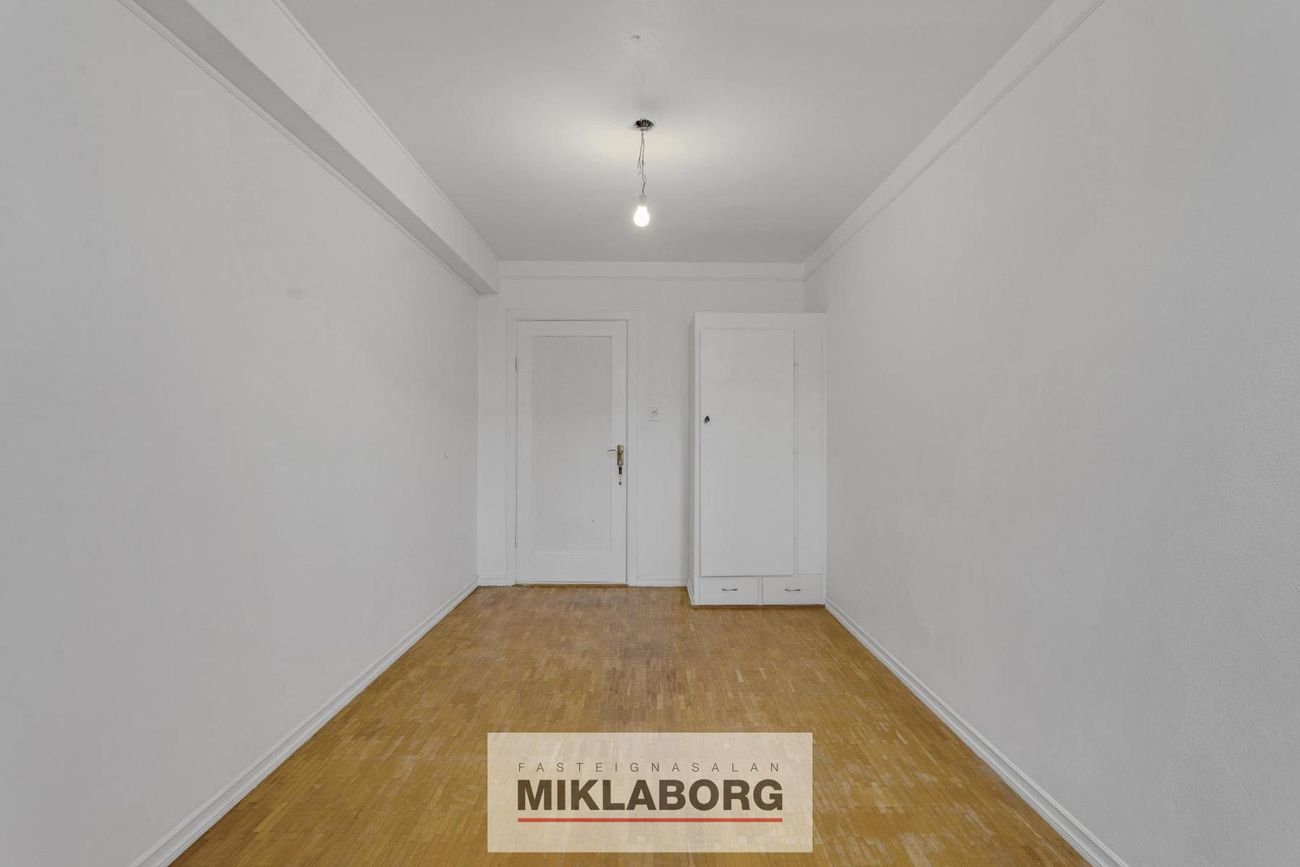 Þrjú rumgóð herbergi með parketgólf. Léttir fataskápar í hjónaherbergi og öðru herbergi.
