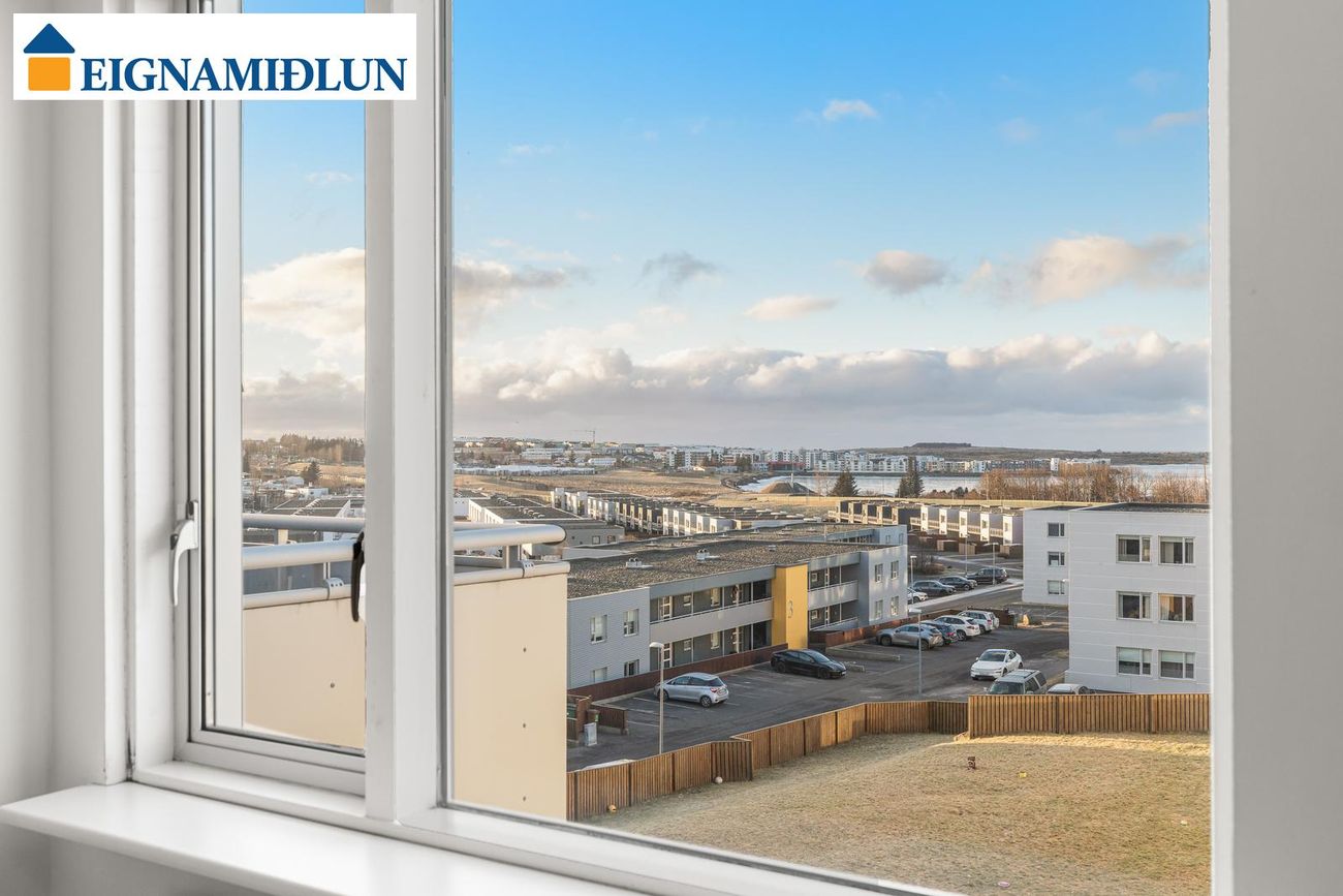 Eignin skiptist í forstofu, eldhús og stofu/borðstofu í alrými, tvö rúmgóð svefnherbergi, baðherbergi og þvottahús. Stofa og eldhús sem gengur í gegnum íbúðina. Svalur til vesturs með glæsilegu útsýni.