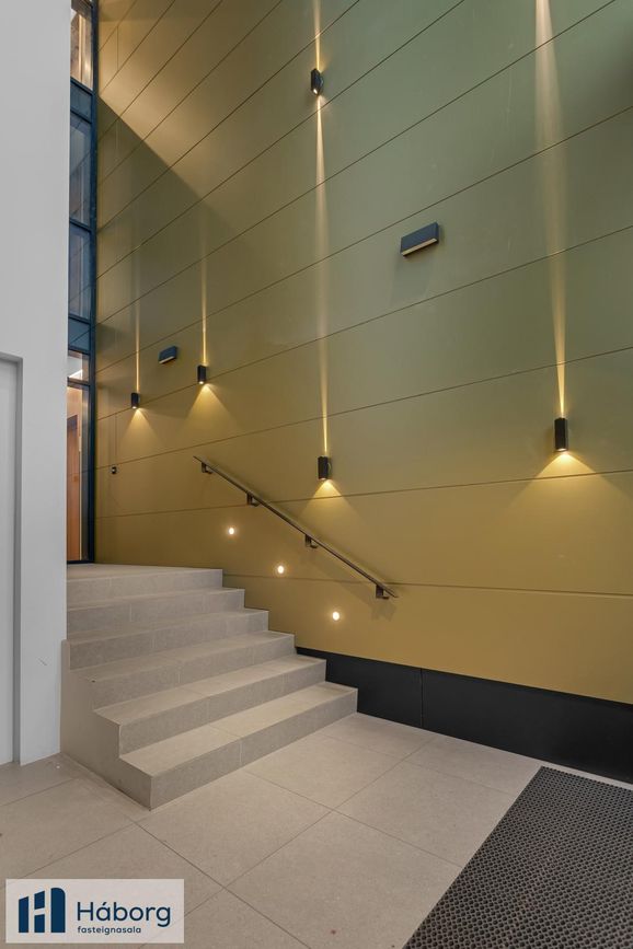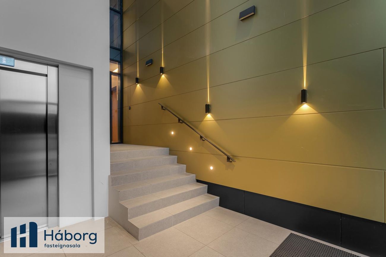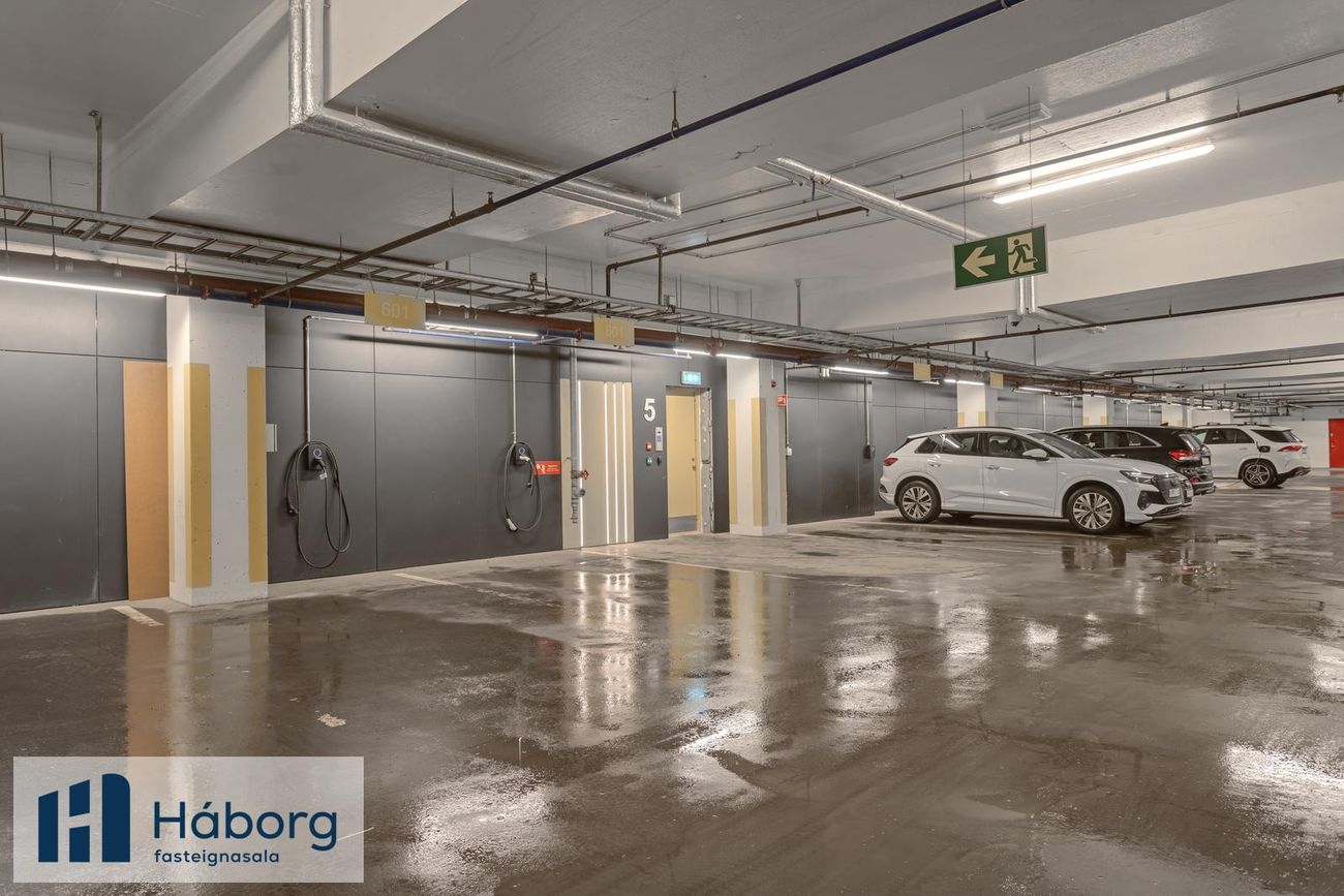 Allar innréttingar eru glæsilegar spónlagðar, stílhreinar með gripi en ekki höldum. Hurðir eru gerettalausar og sérlega fallegar. Íbúðinni fylgir hlutdeild í Y6-sameign sumra sem er bílgeymslurými í kjallara. Það tengist bílgeymslurýmum undir aðliggjandi lóðum og sér sameiginlegt rekstarfélag um rekstur bílageymslunnar. Íbúar geta lagt í bílageymslu gegn hóflegu rekstargjald sem er nú umkr 9000 á mánuði.