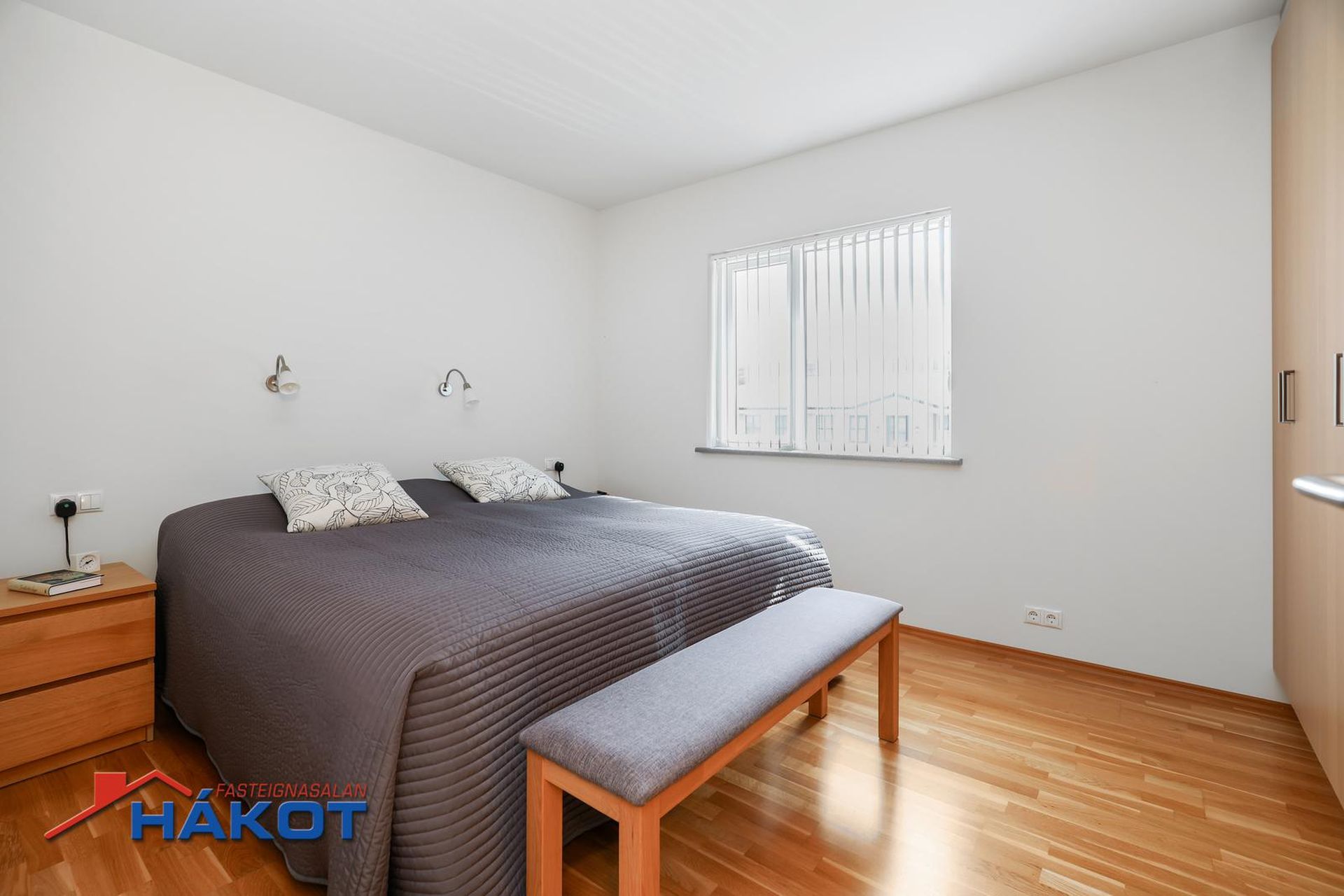 Fjögur svefnherbergi: Öll með parketi á gólfum. Þrjú herbergjanna eru með fataskápum.