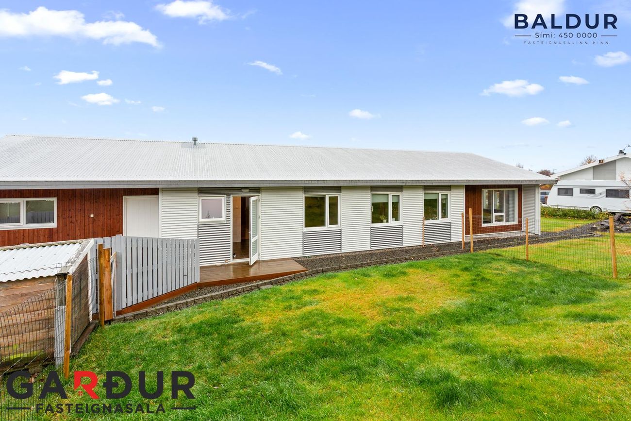 Um er að ræða rúmgóða og vel skipulagt hús og skjólsælt útisvæði – kjörið fyrir fjölskyldufólk sem vill rólegt og fjölskylduvænt umhverfi í náttúrulegu og fallegu umhverfi. Skóli er í aðeins 6 kílómetra fjarlægð.