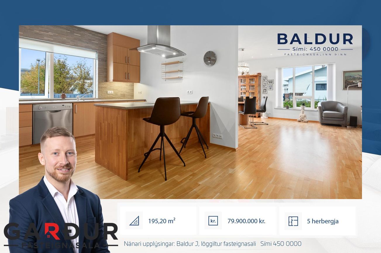 Baldur fasteignasali – Sími 450-0000 kynnir: Í einkasölu einstaklega rúmgott og vel skipulagt