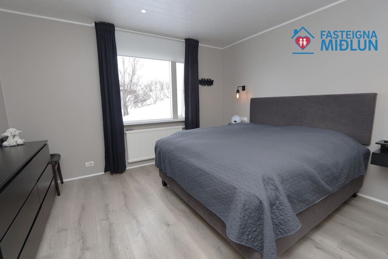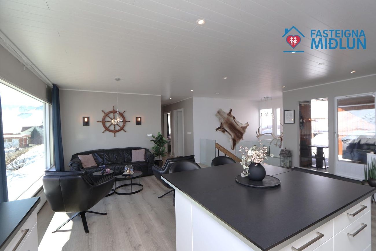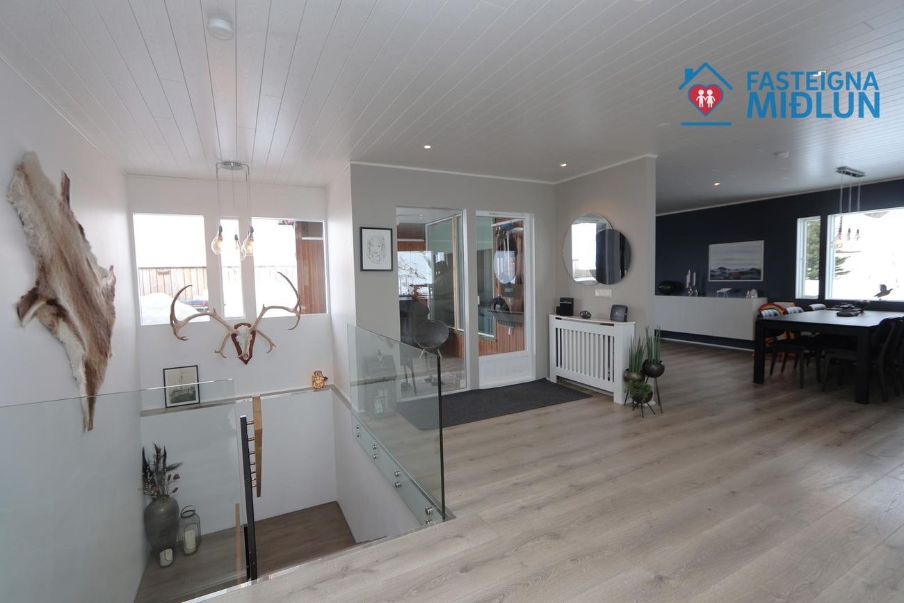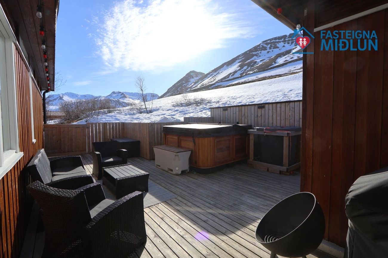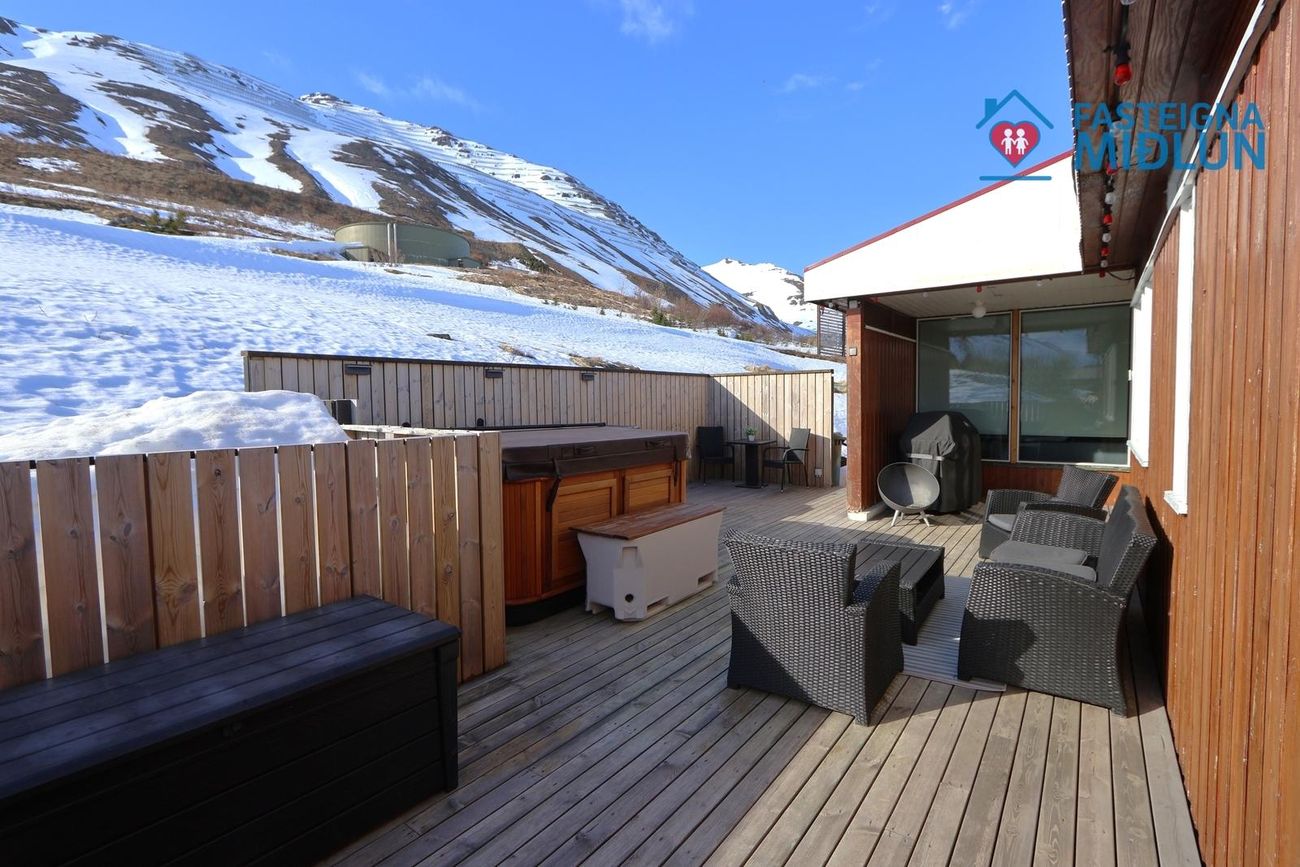 Nánari upplýsingar veitir Arndís Erla Jónsdóttir Löggiltur fasteignasali, í síma 6907282, tölvupóstur arndis@fasteignamidlun.is.Um er að ræða mikið endurnýjað einbýlishús í hæðum Siglufjarðar með frábæru útsýni. Eignin samanstendur af forstofu, eldhúsi, samliggjandi stofu og borðstofu, 5 svefnherbergjum, baðherbergi, gestasalerni, þvottahúsi, geymslu og bílskúr. Stór timburpallur er bak við eignina með skjólveggjum. Steypt bílaplan er með snjóbræðslu. Eignin stendur í enda botnlangagötu og efst í byggð Siglufjarðar.