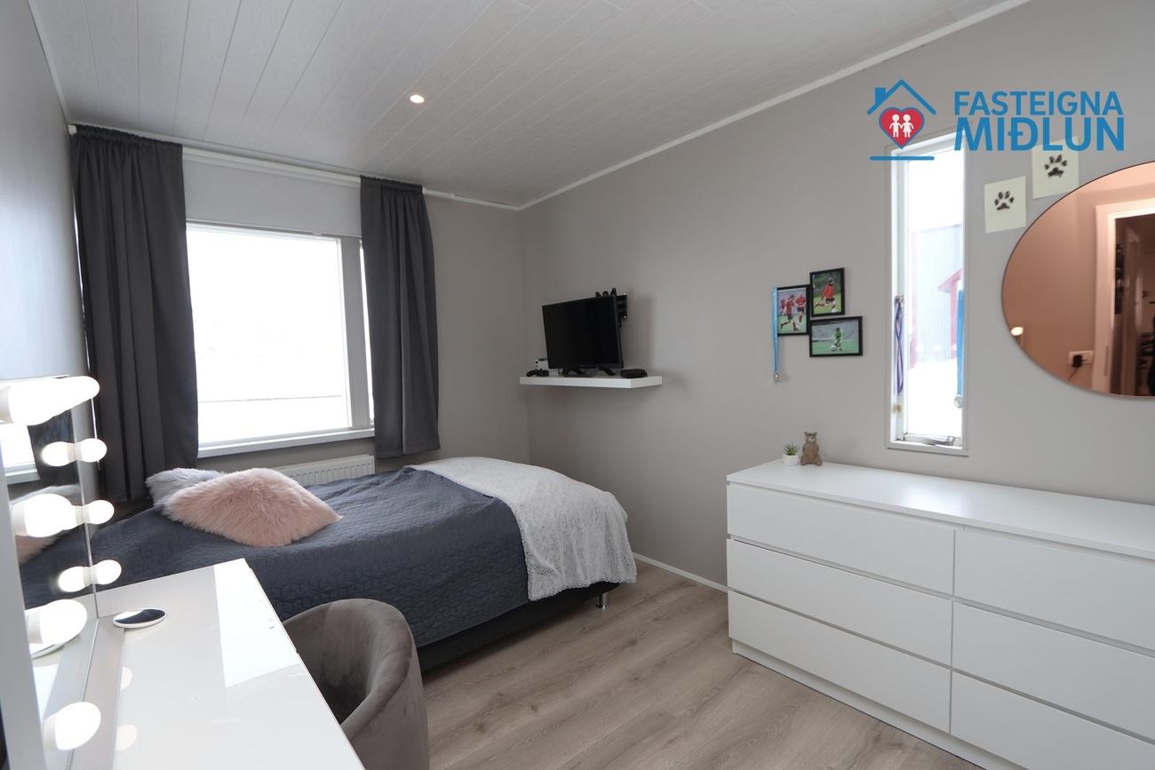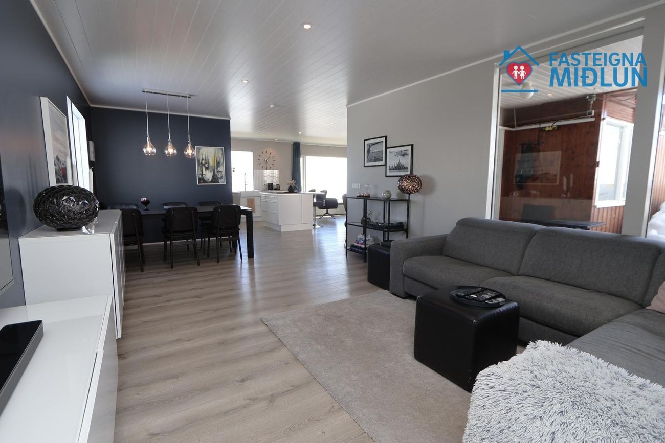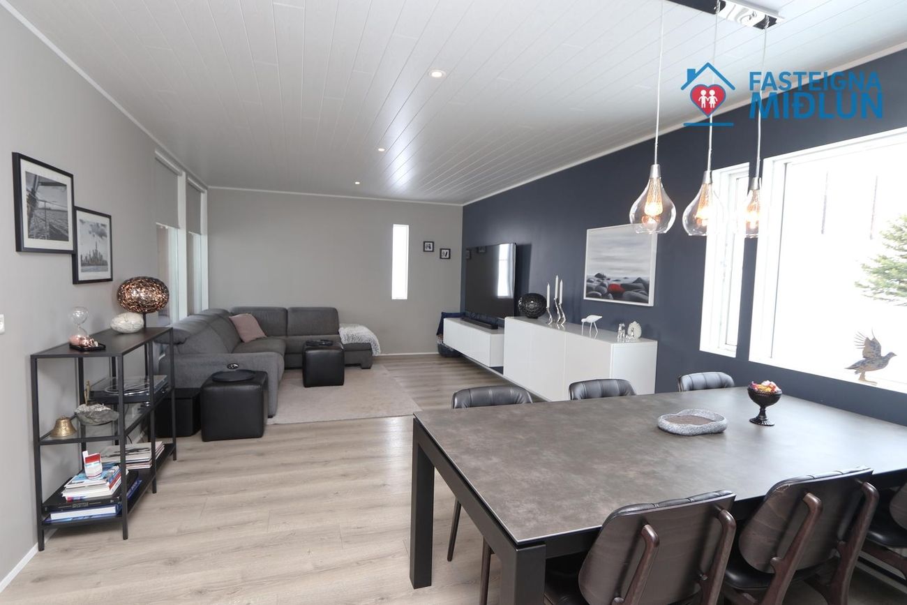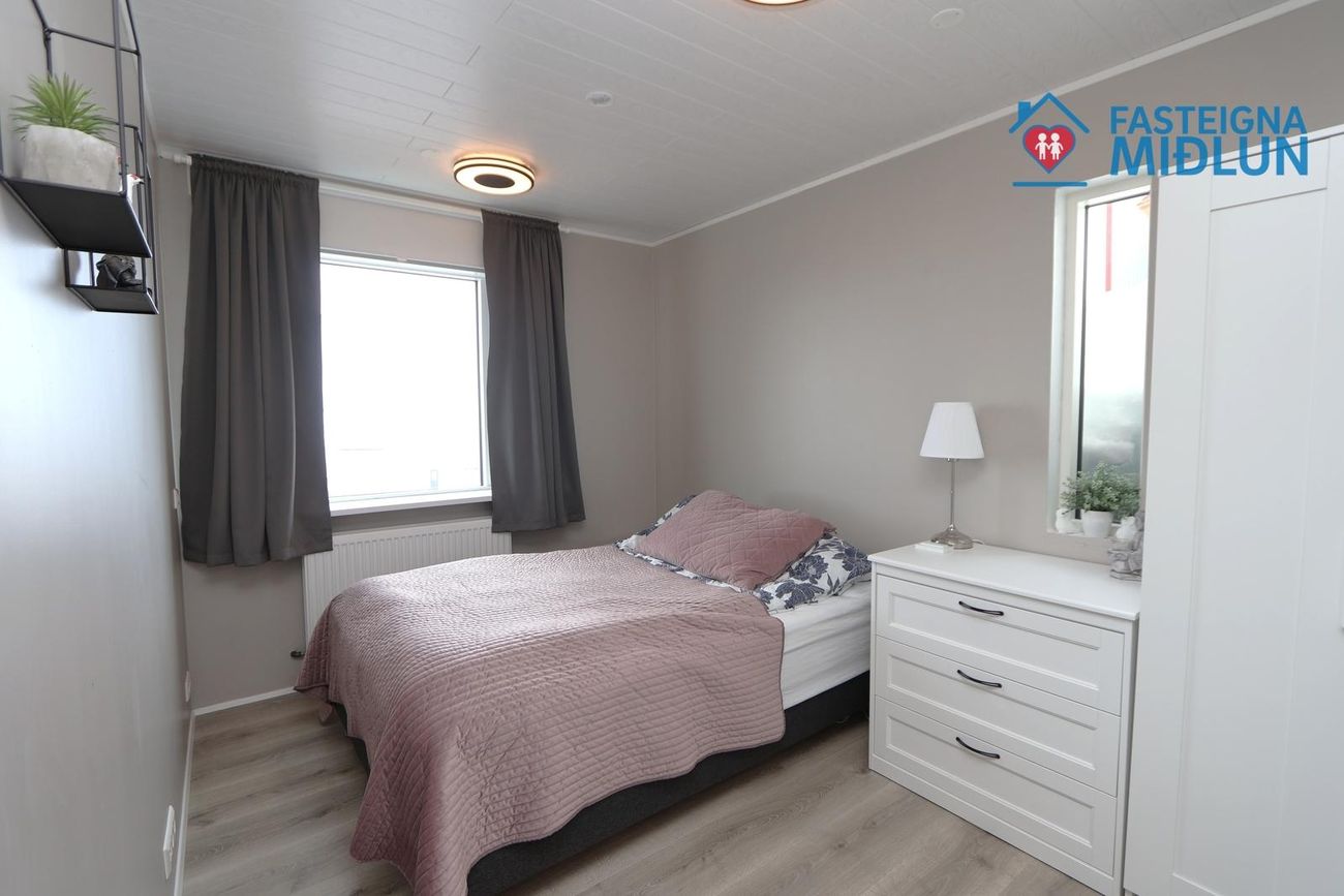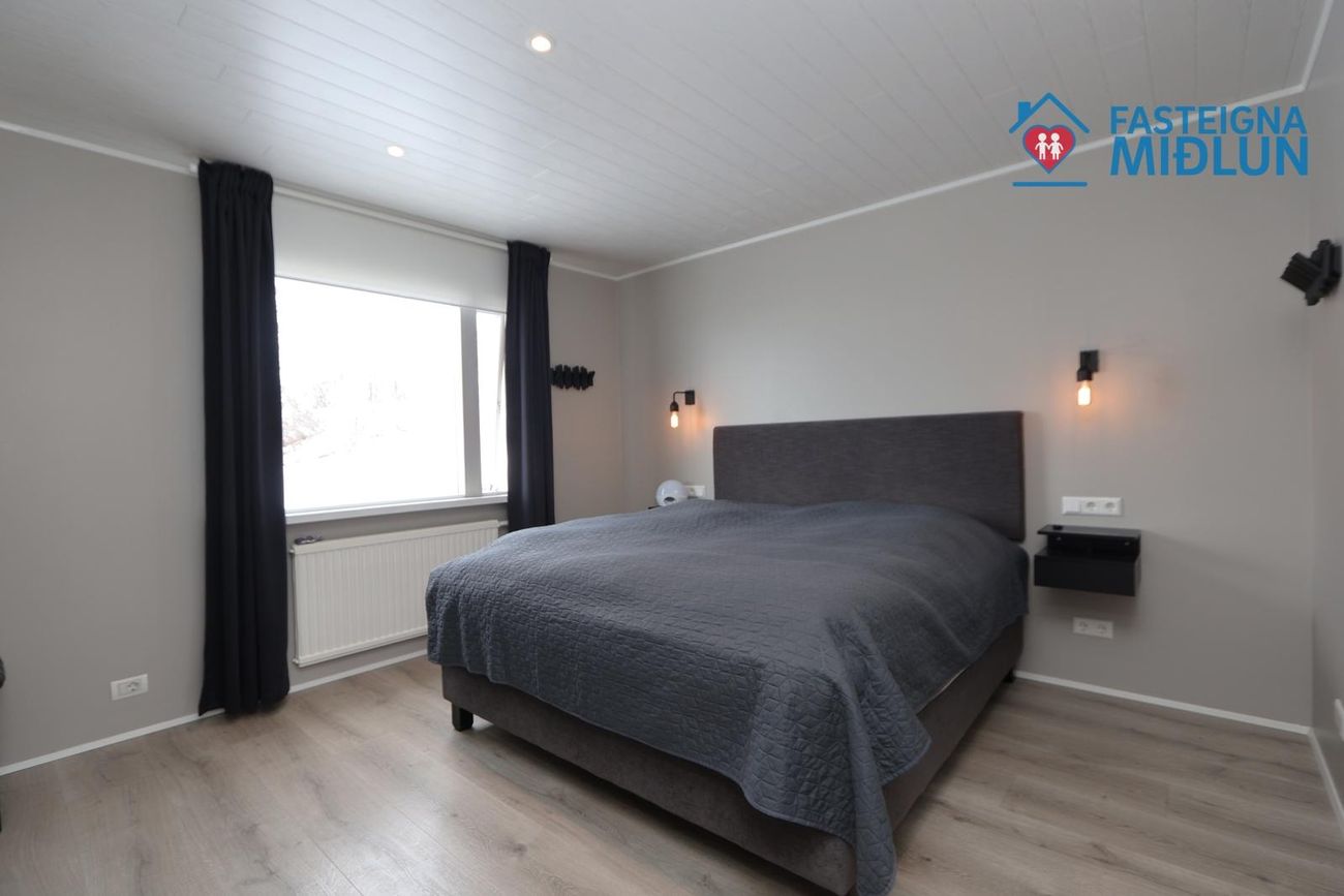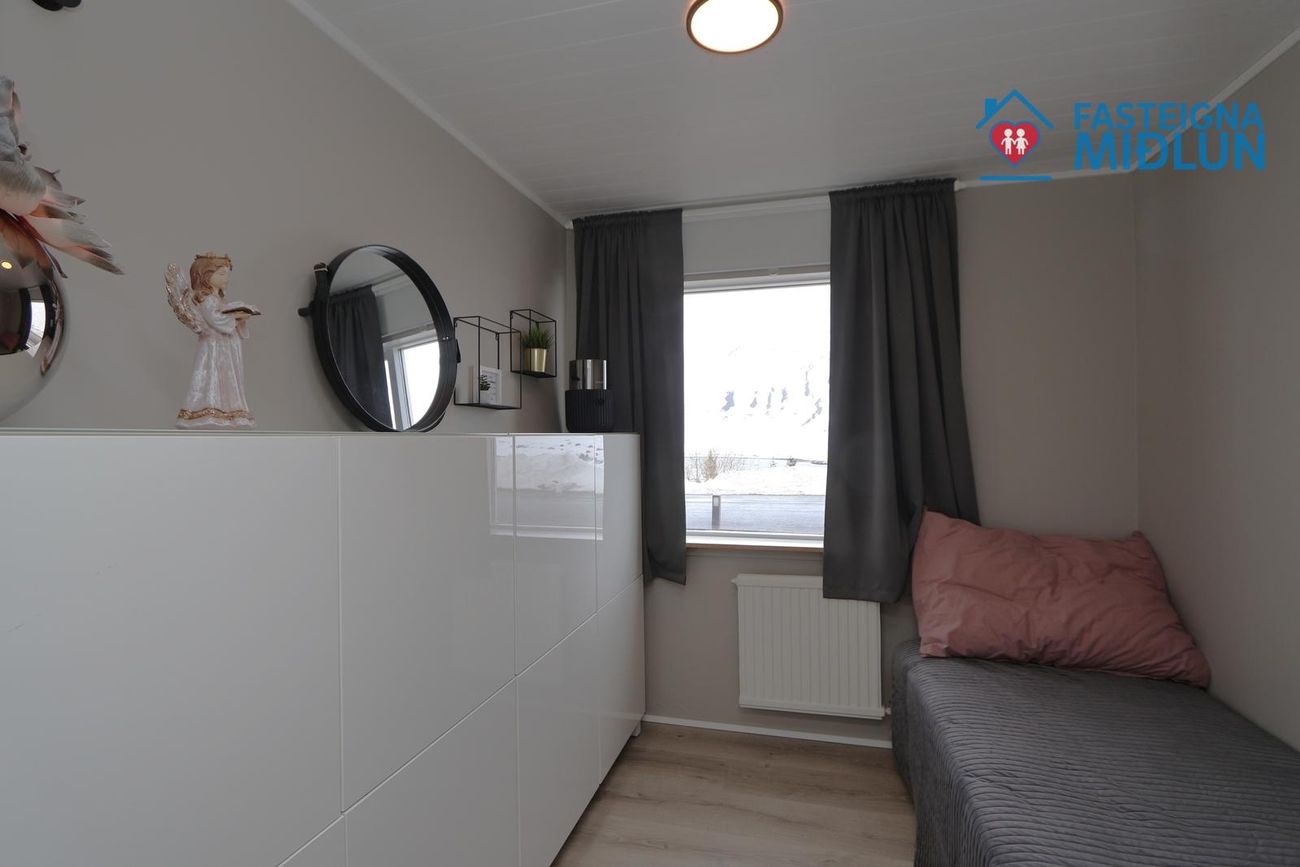 Nánari upplýsingar veitir Arndís Erla Jónsdóttir Löggiltur fasteignasali, í síma 6907282, tölvupóstur arndis@fasteignamidlun.is.Um er að ræða mikið endurnýjað einbýlishús í hæðum Siglufjarðar með frábæru útsýni. Eignin samanstendur af forstofu, eldhúsi, samliggjandi stofu og borðstofu, 5 svefnherbergjum, baðherbergi, gestasalerni, þvottahúsi, geymslu og bílskúr. Stór timburpallur er bak við eignina með skjólveggjum. Steypt bílaplan er með snjóbræðslu. Eignin stendur í enda botnlangagötu og efst í byggð Siglufjarðar.