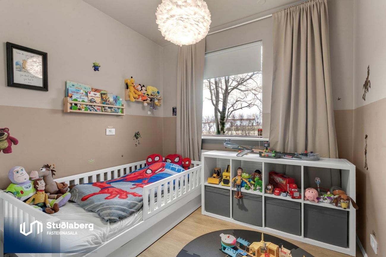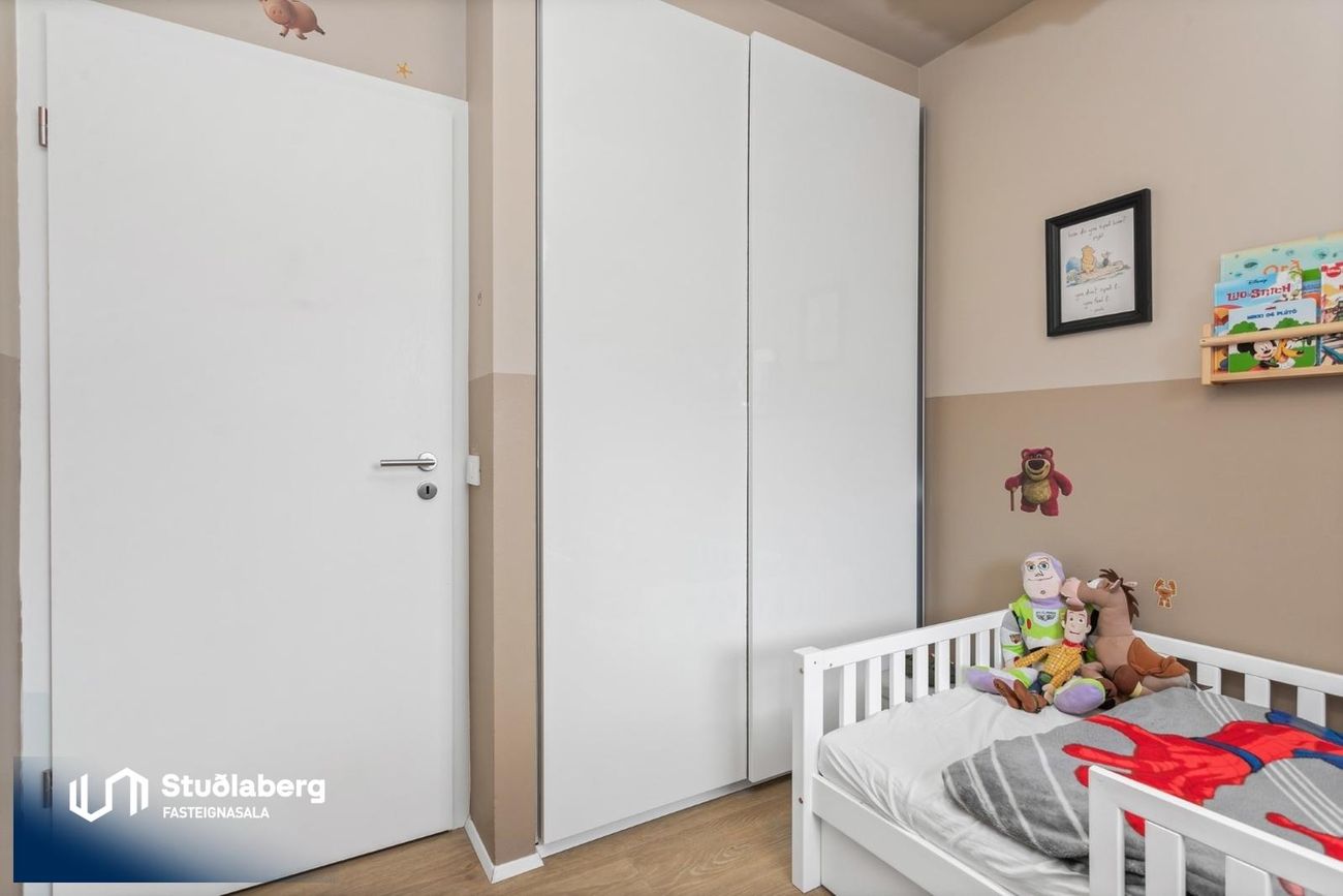 Parketgólf, skápar í hjónaherbergi og barnaherbergjum.