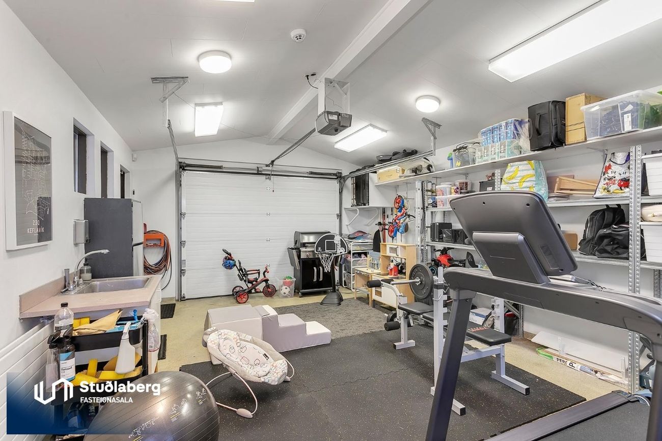 42,6fm bílskúr með epoxy gólfi og hurðaopnara.