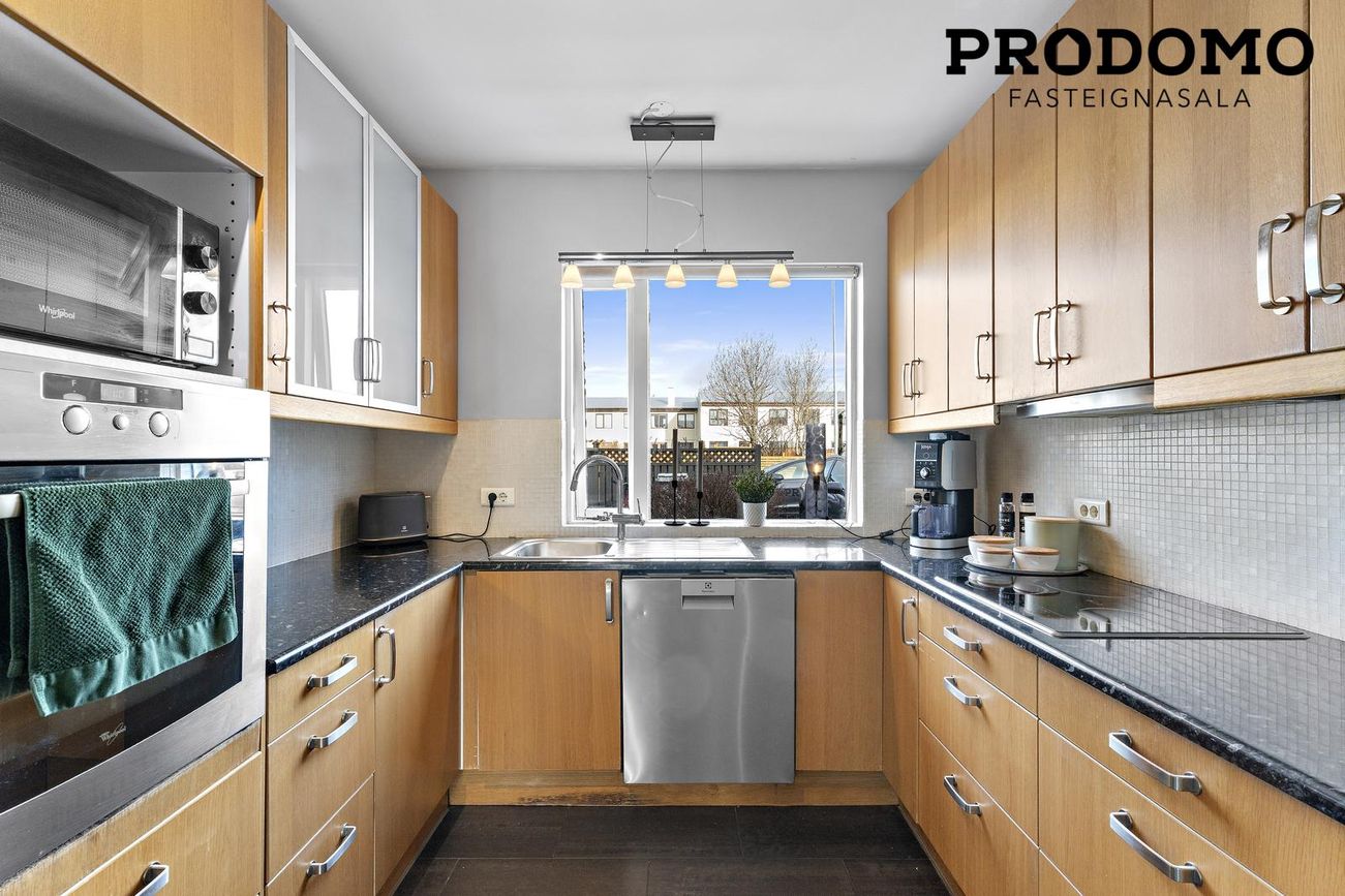 PRODOMO fasteignasala kynnir í einkasölu raðhús á tveimur hæðum með fimm svefnherbergjum ásamt bílskúr. Verönd og pottur bakatil.