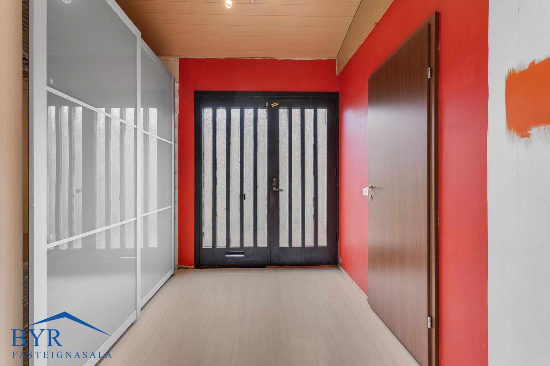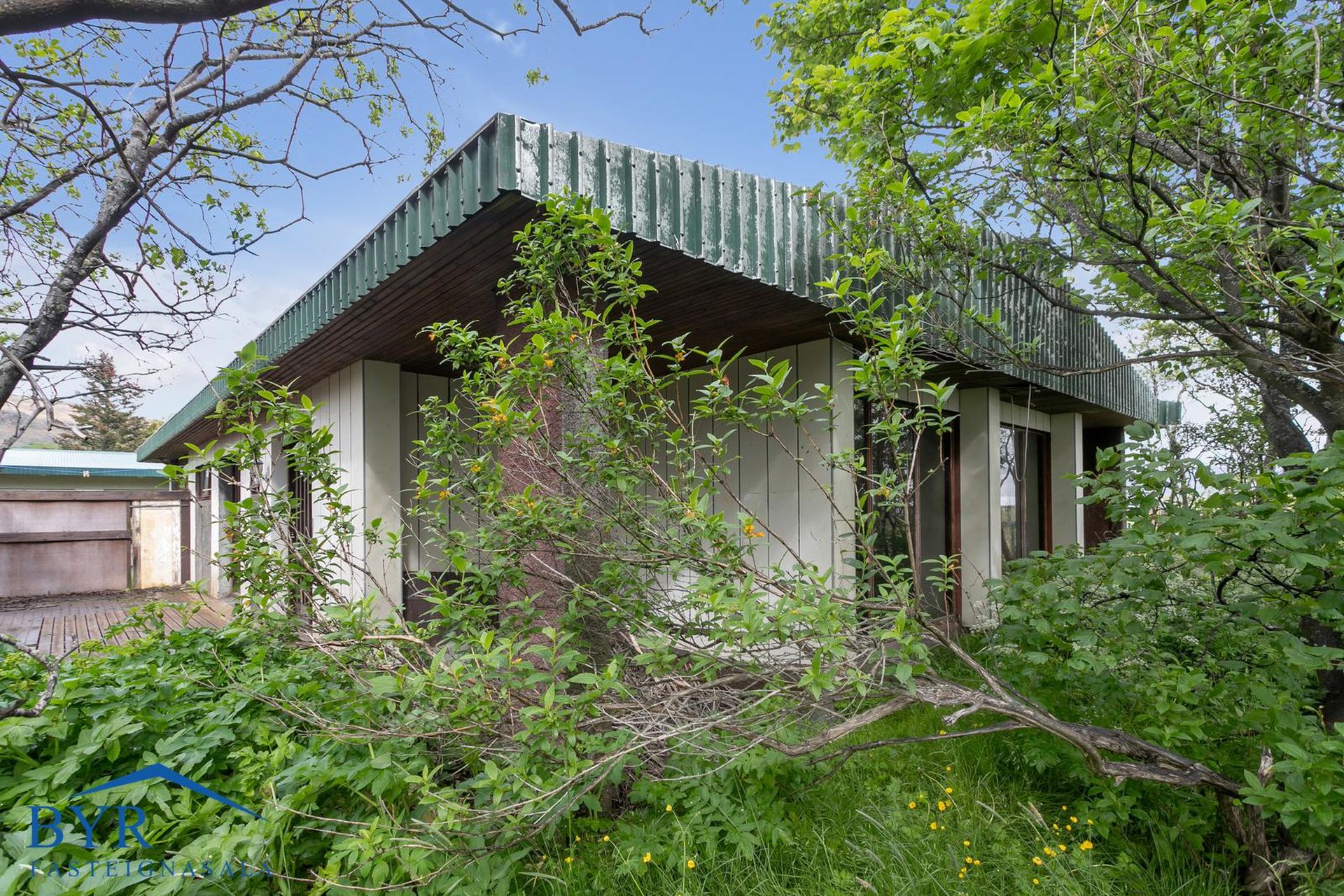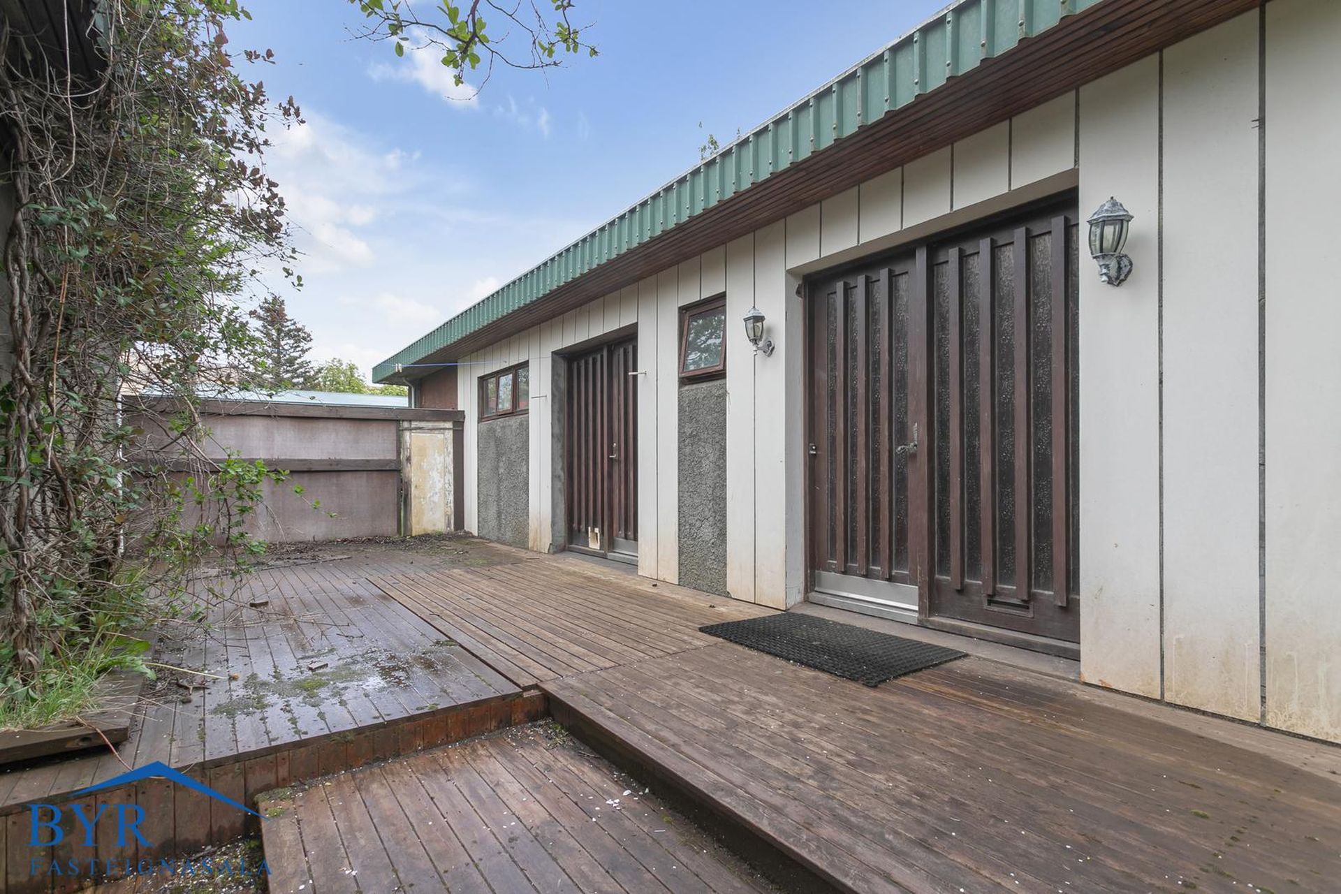 Parketgólf, álklæðning á útveggjum og steyptar stéttir.