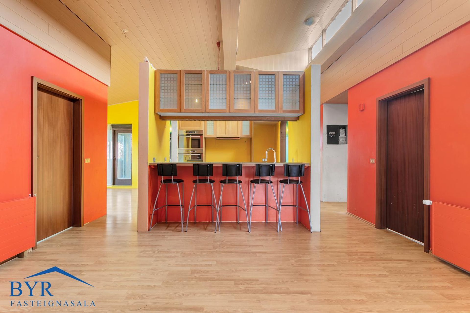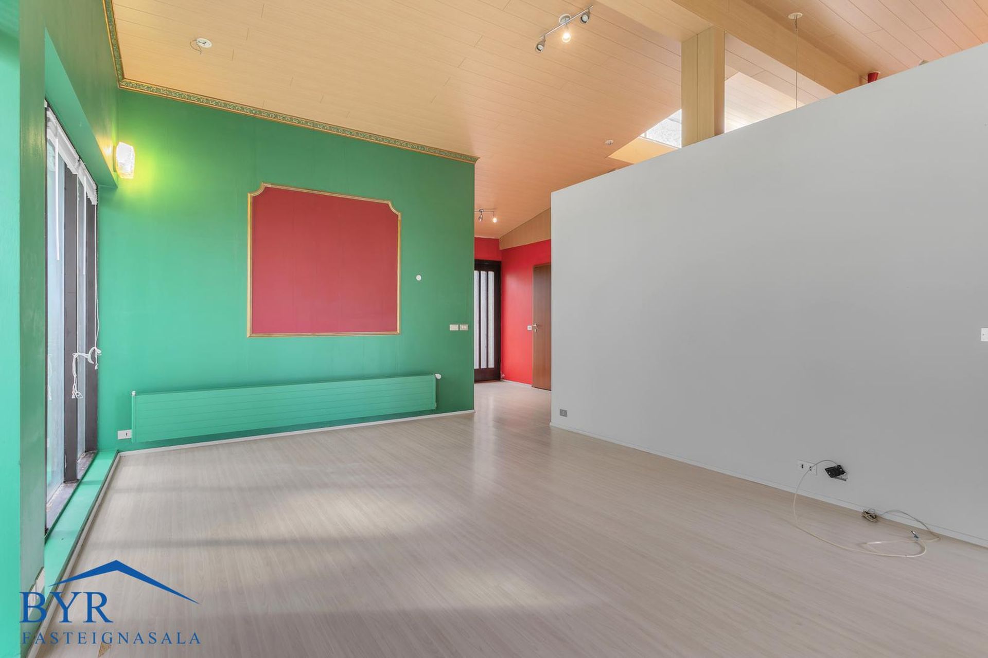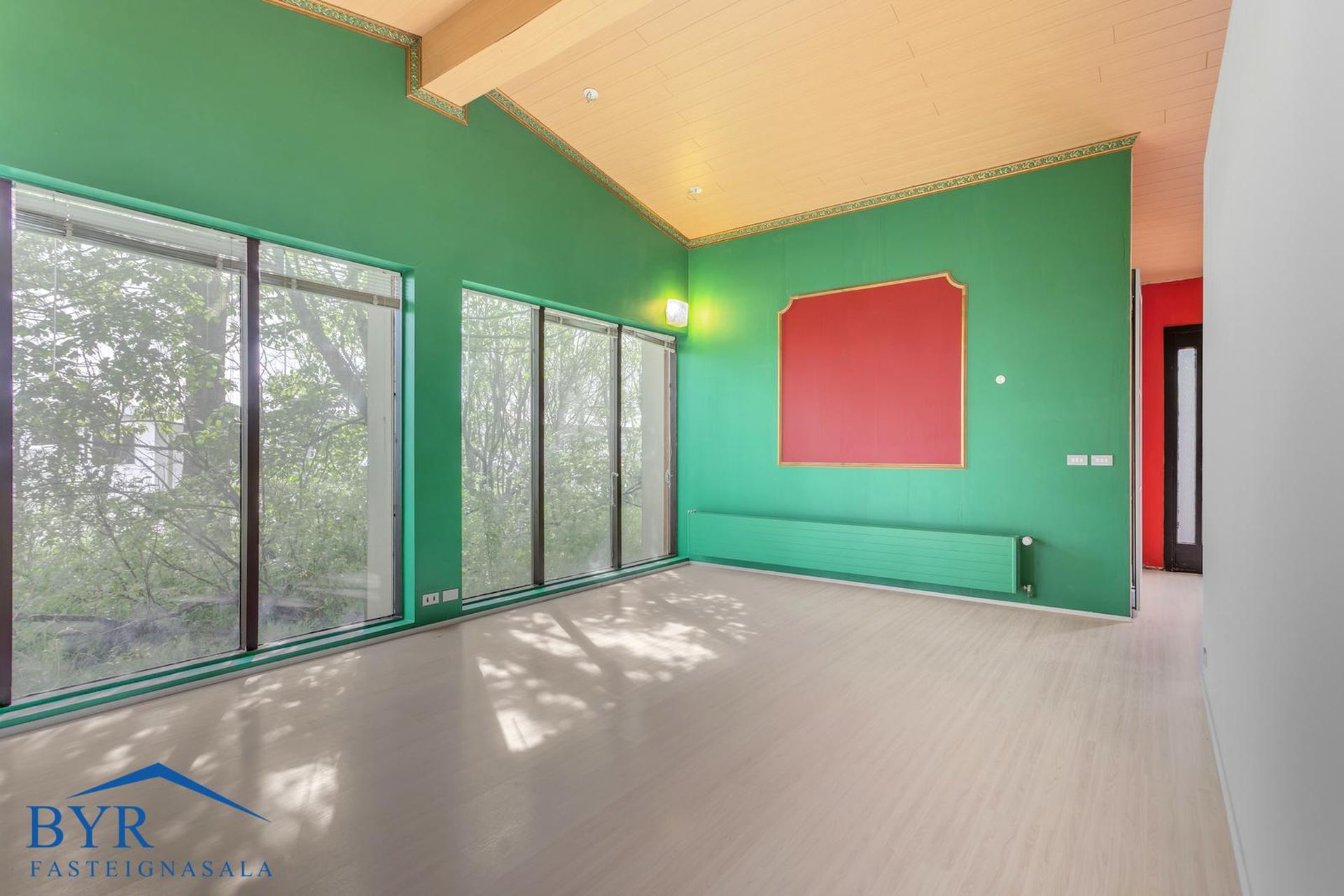 Parketgólf, álklæðning á útveggjum og steyptar stéttir.