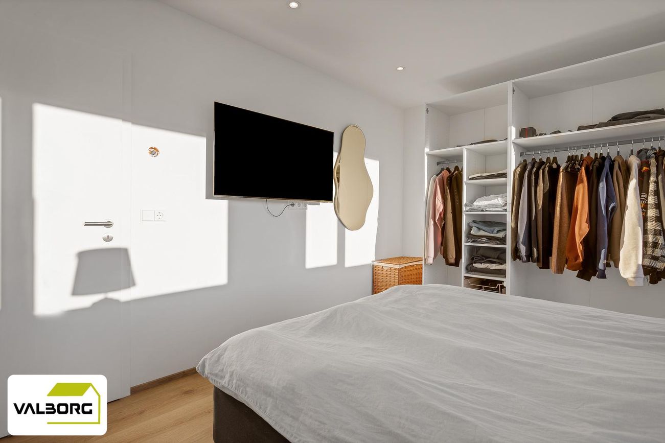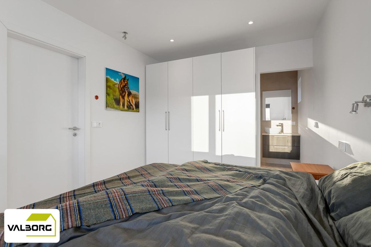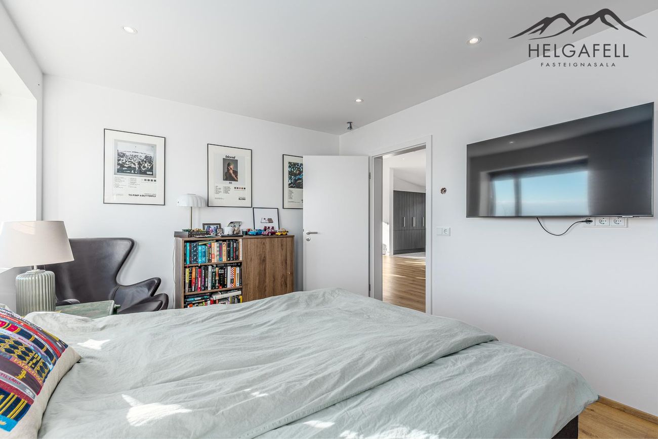 Þrjú svefnherbergi með parketgólfi og fataskápapláss, hjónaherbergi með innra baðherbergi.