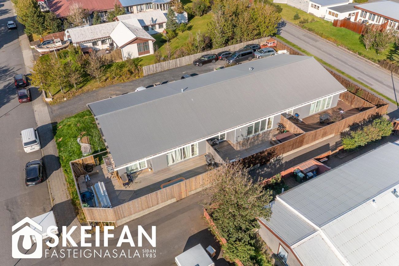 Innbyggður bílskúr um 25 fm með steingólfi.