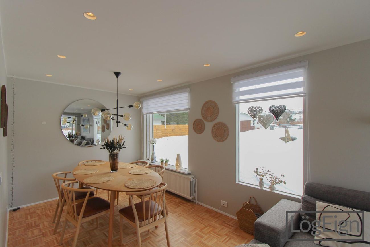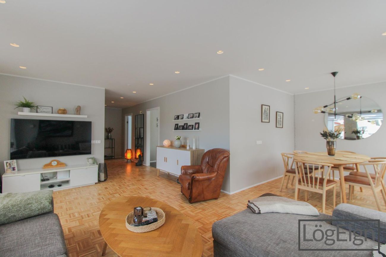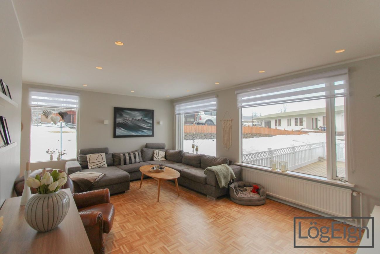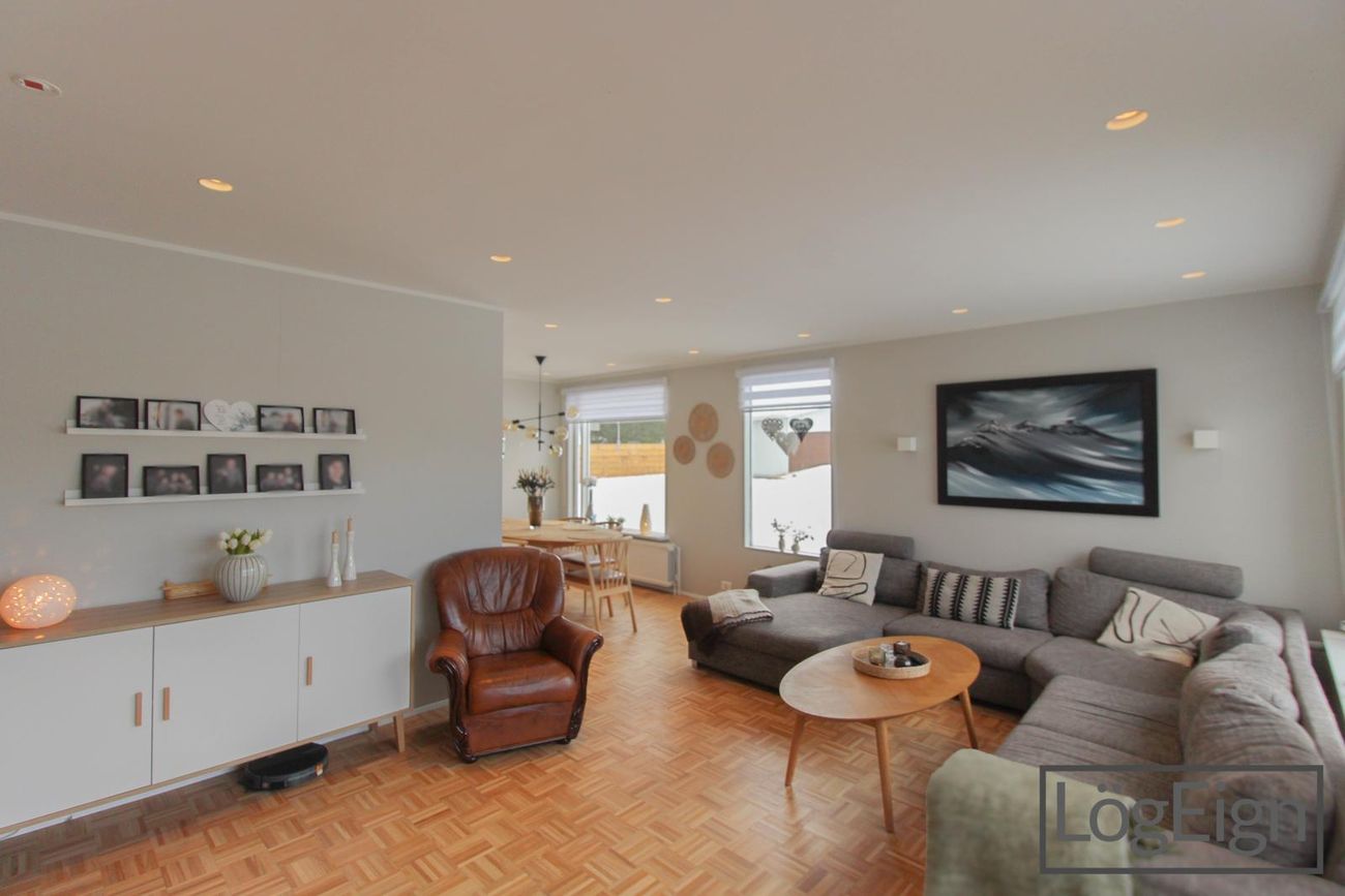Annað: Loftin í stofunni voru tekinn niður og sett innfelld lýsing árið 2019 ásamt því að parketið var pússað upp og borið á það.