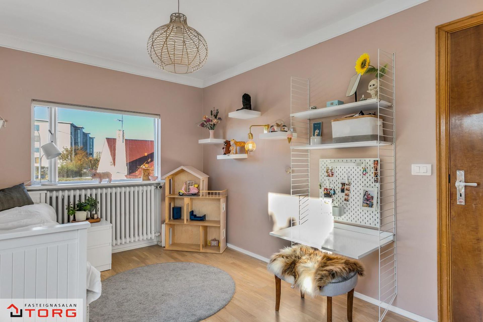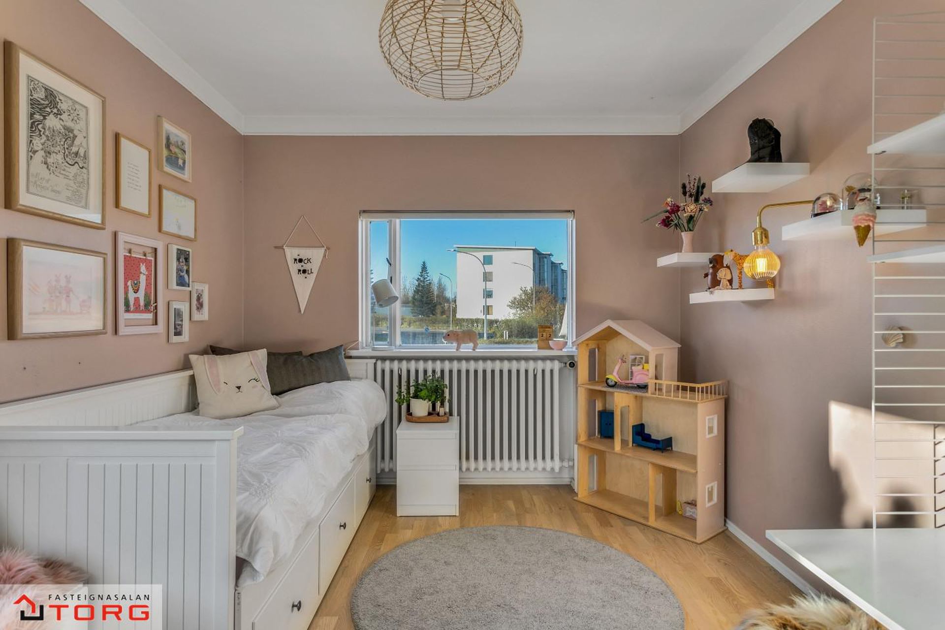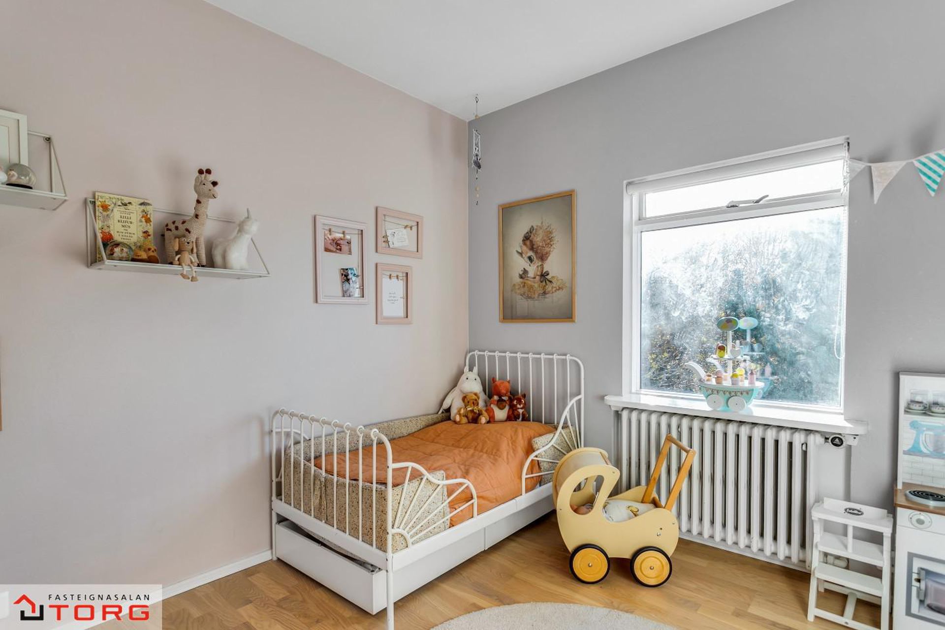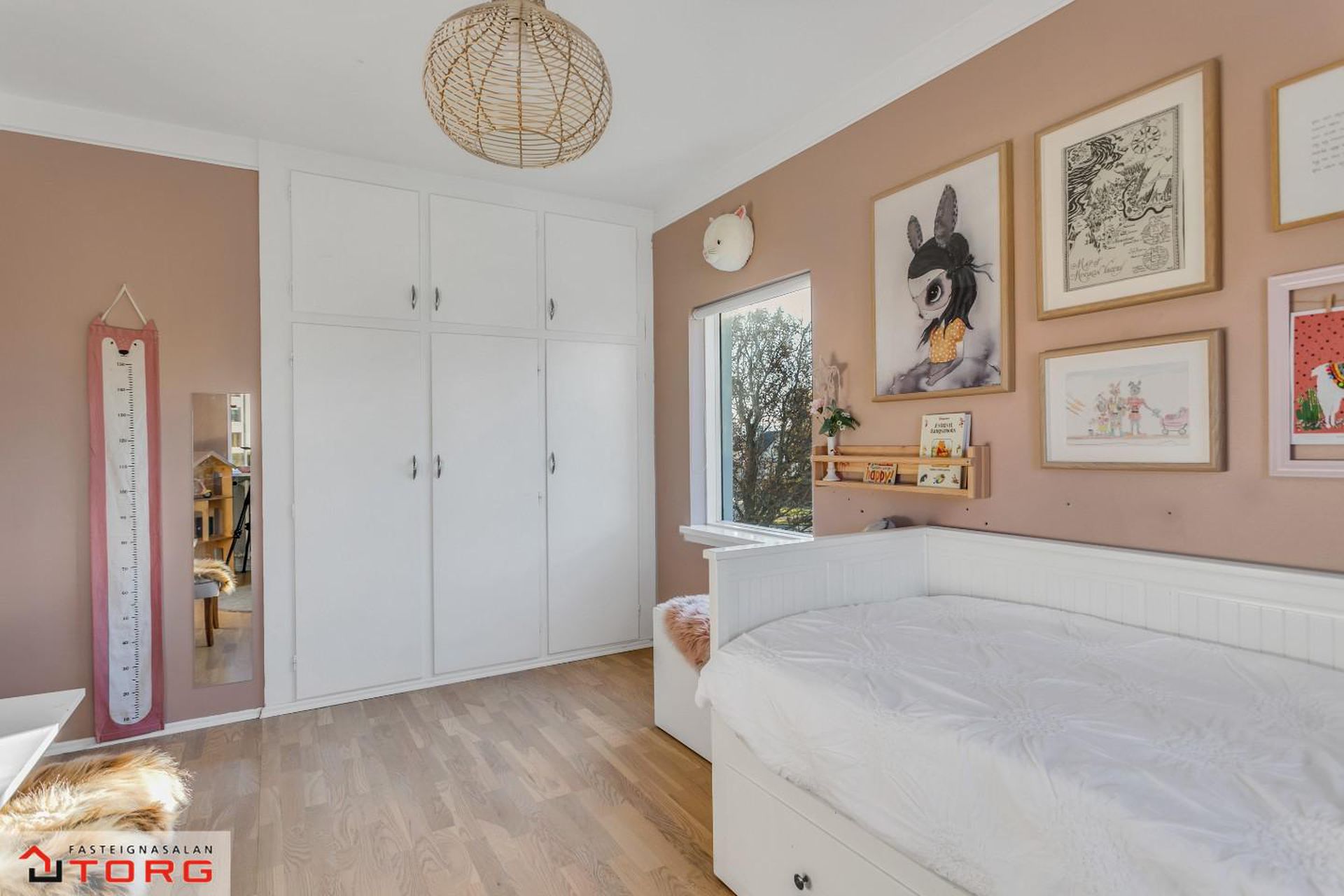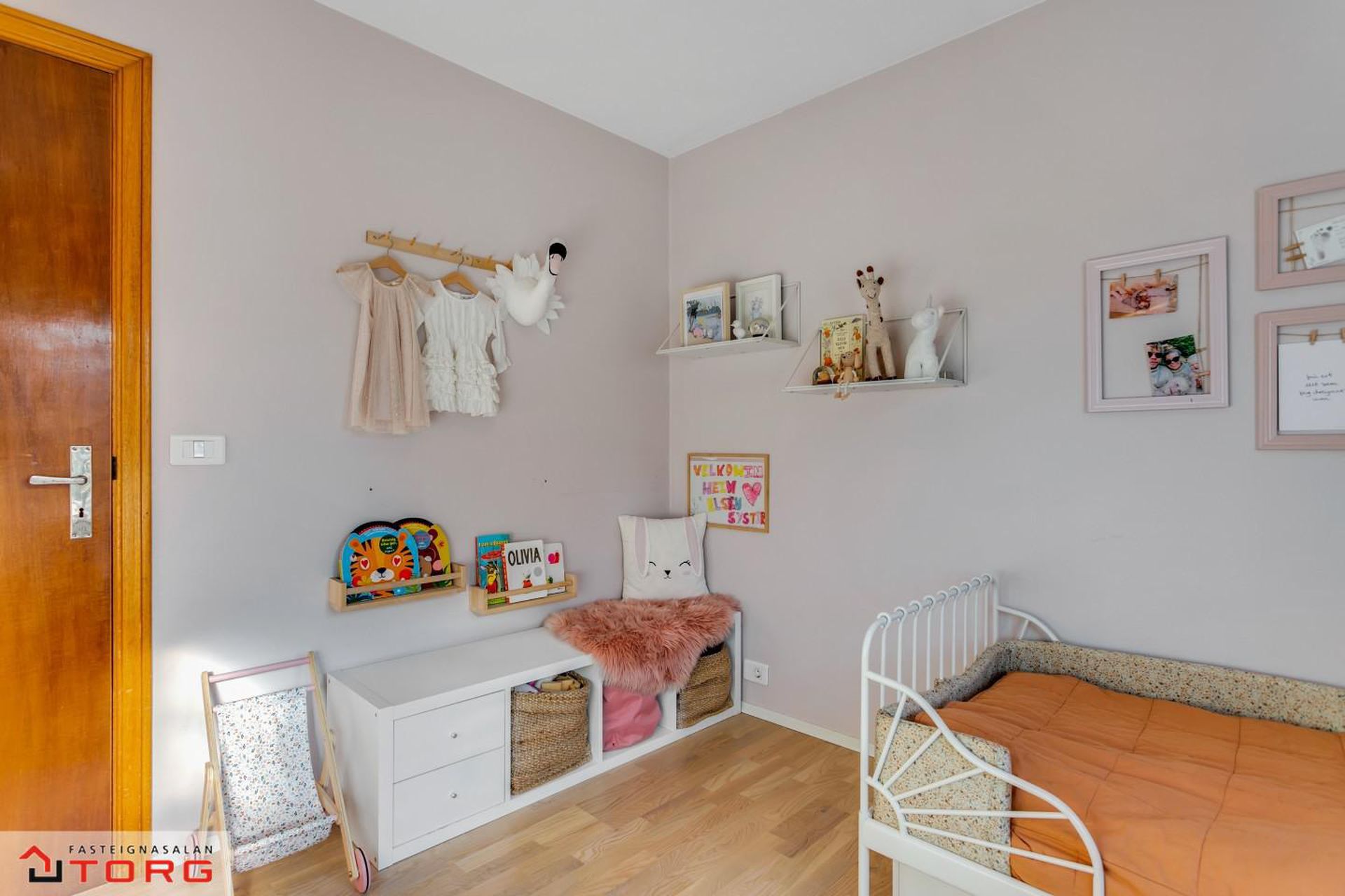 Barnaherbergi - Með fataskáp og harðparketi á gólfi.